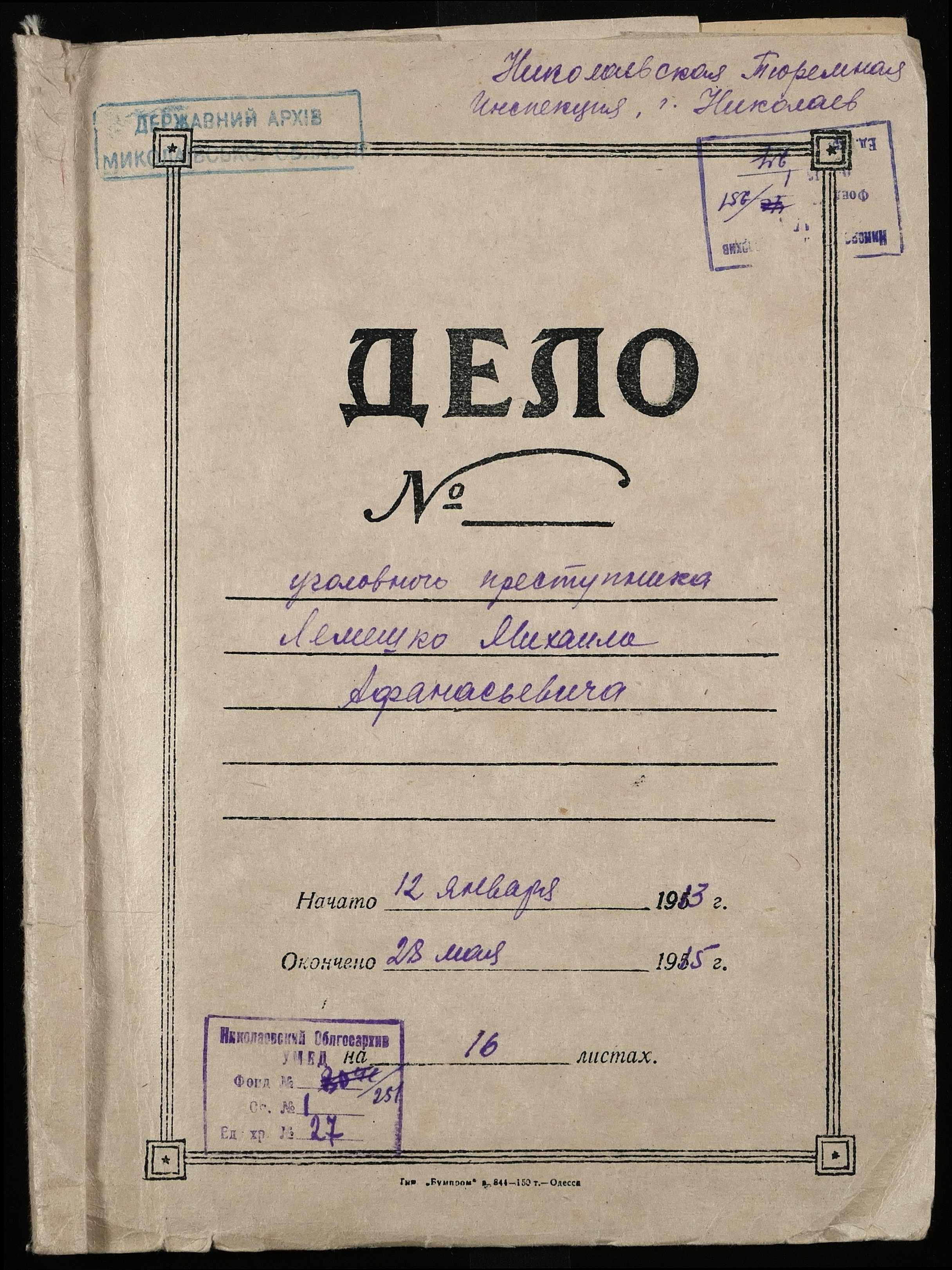 ◦ ◦ Фонд № 251 “Миколаївська тюремна інспекція”