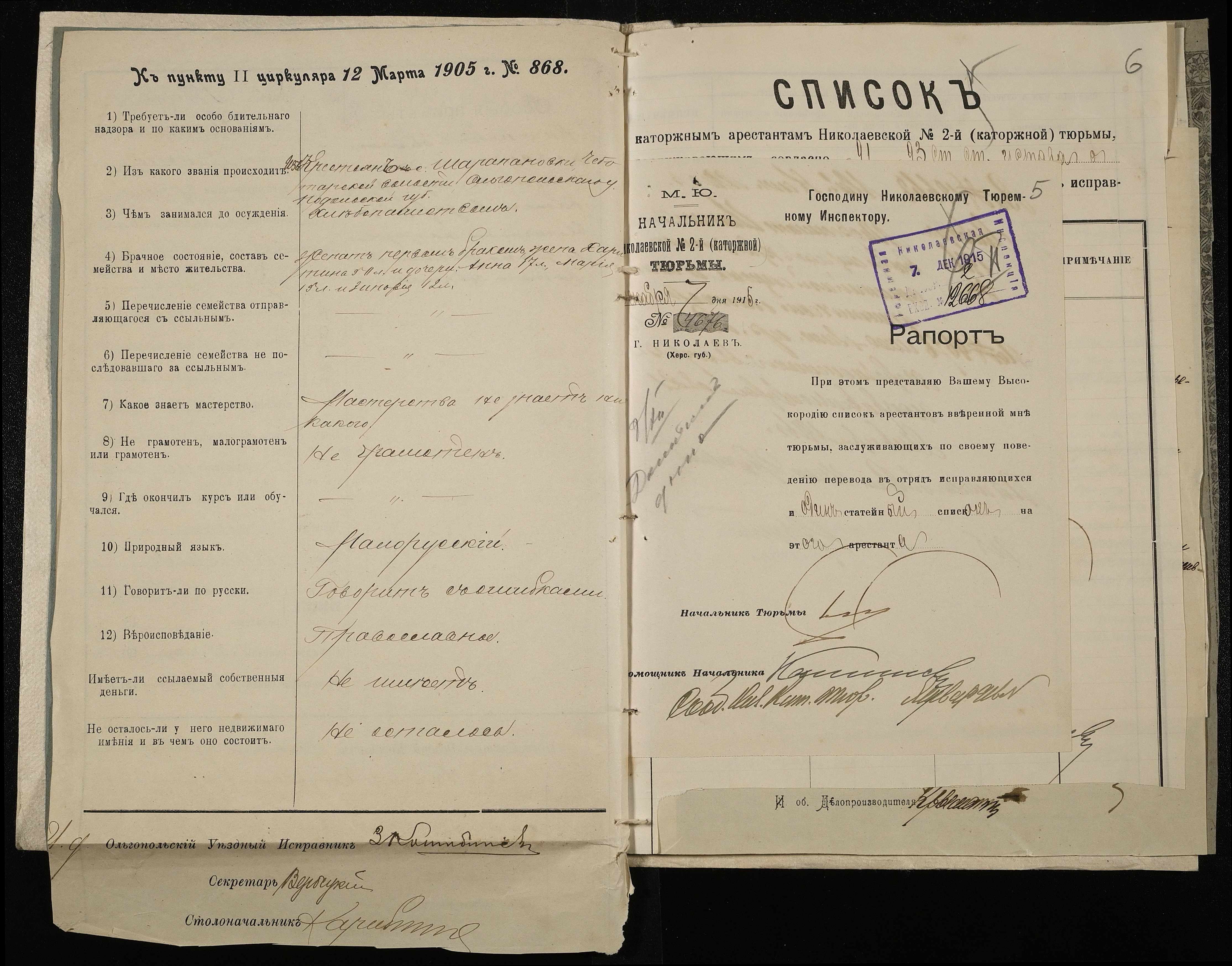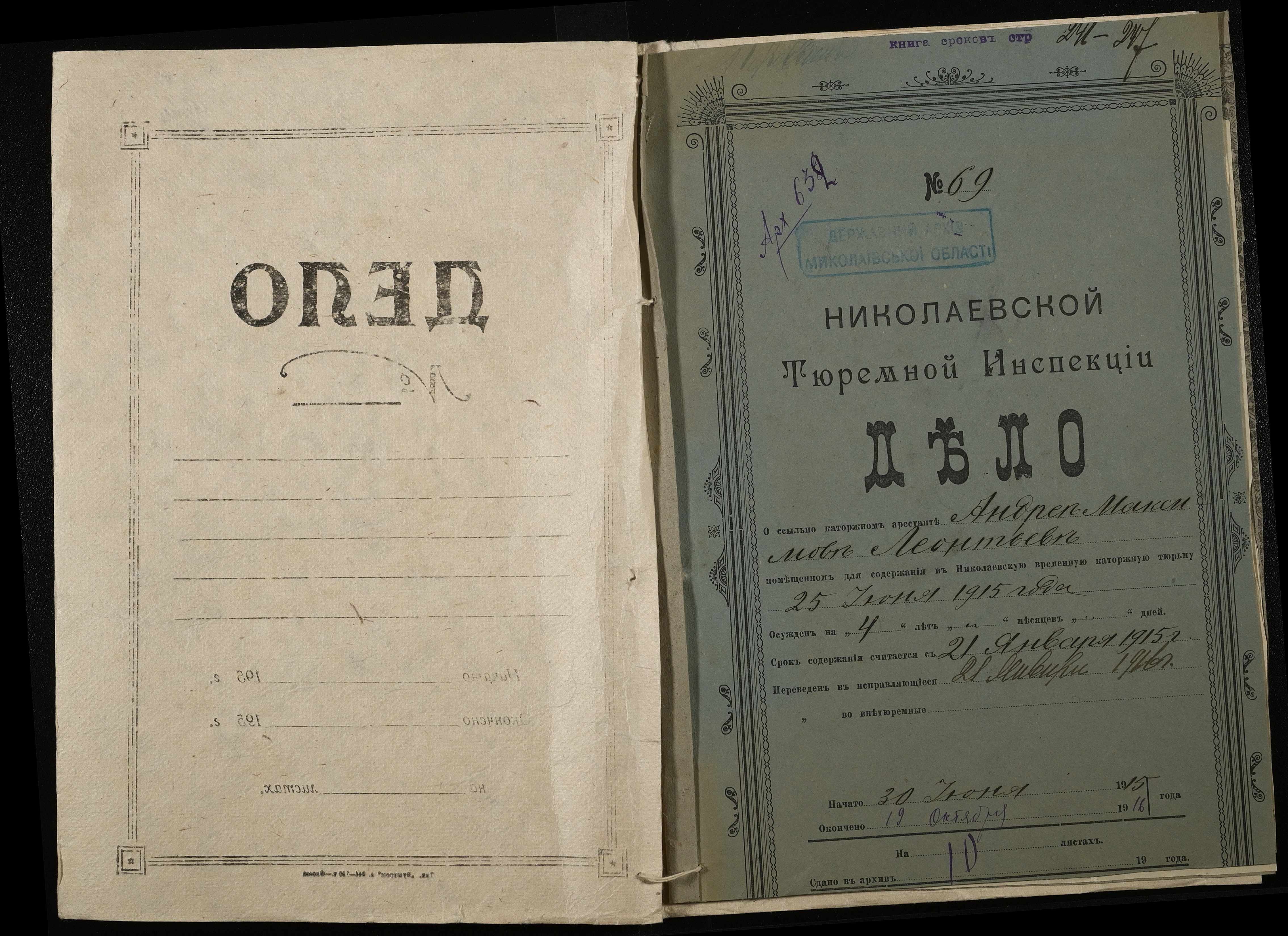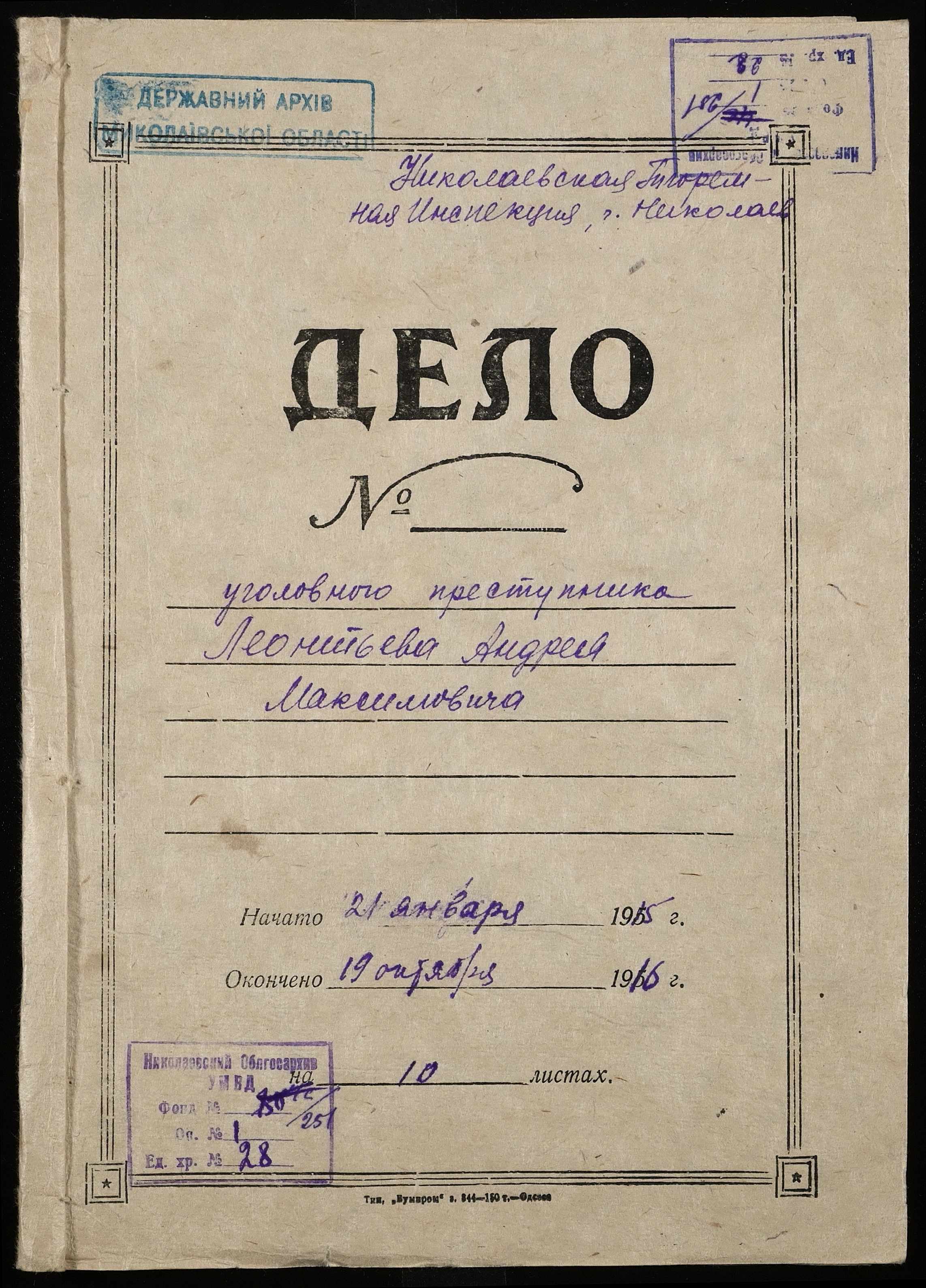 ◦ ◦ Фонд № 251 “Миколаївська тюремна інспекція”