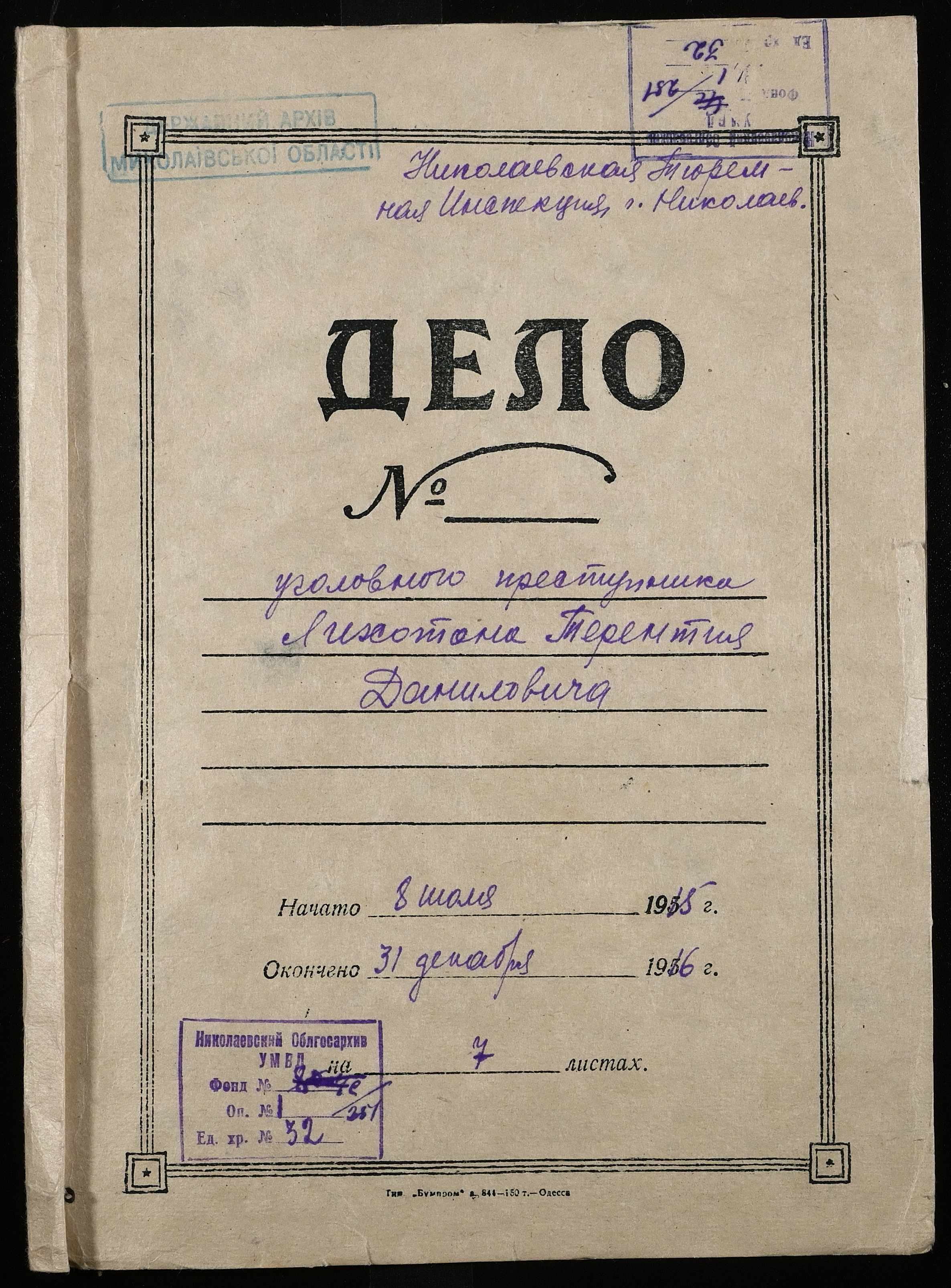 ◦ ◦ Фонд № 251 “Миколаївська тюремна інспекція”