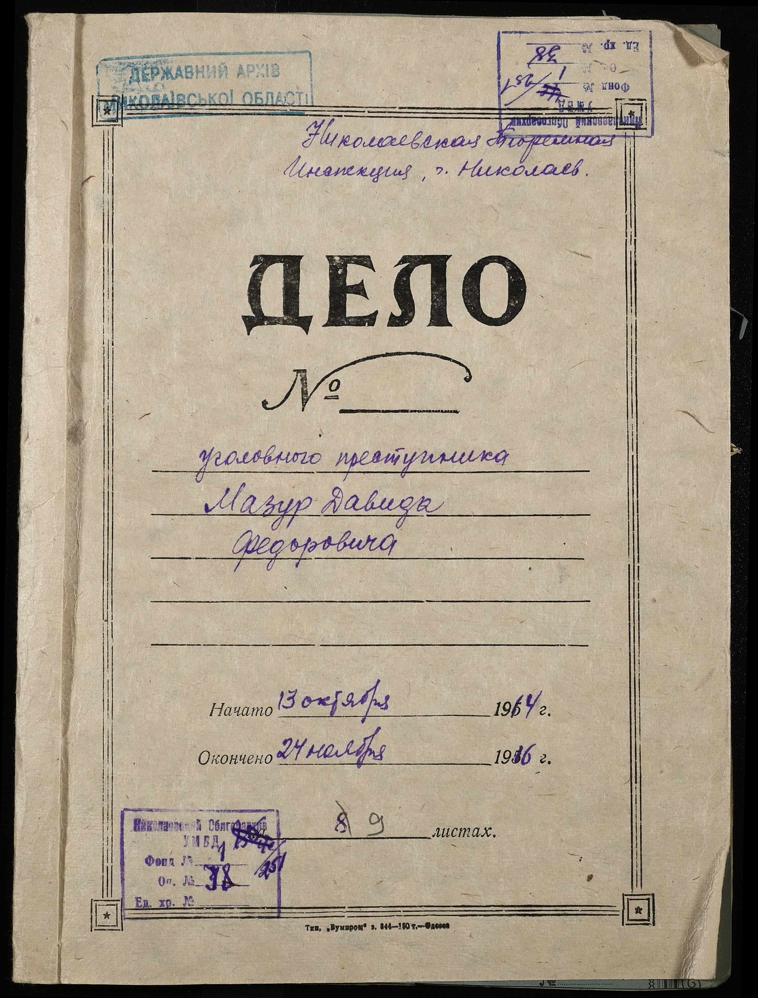 ◦ ◦ Фонд № 251 “Миколаївська тюремна інспекція”