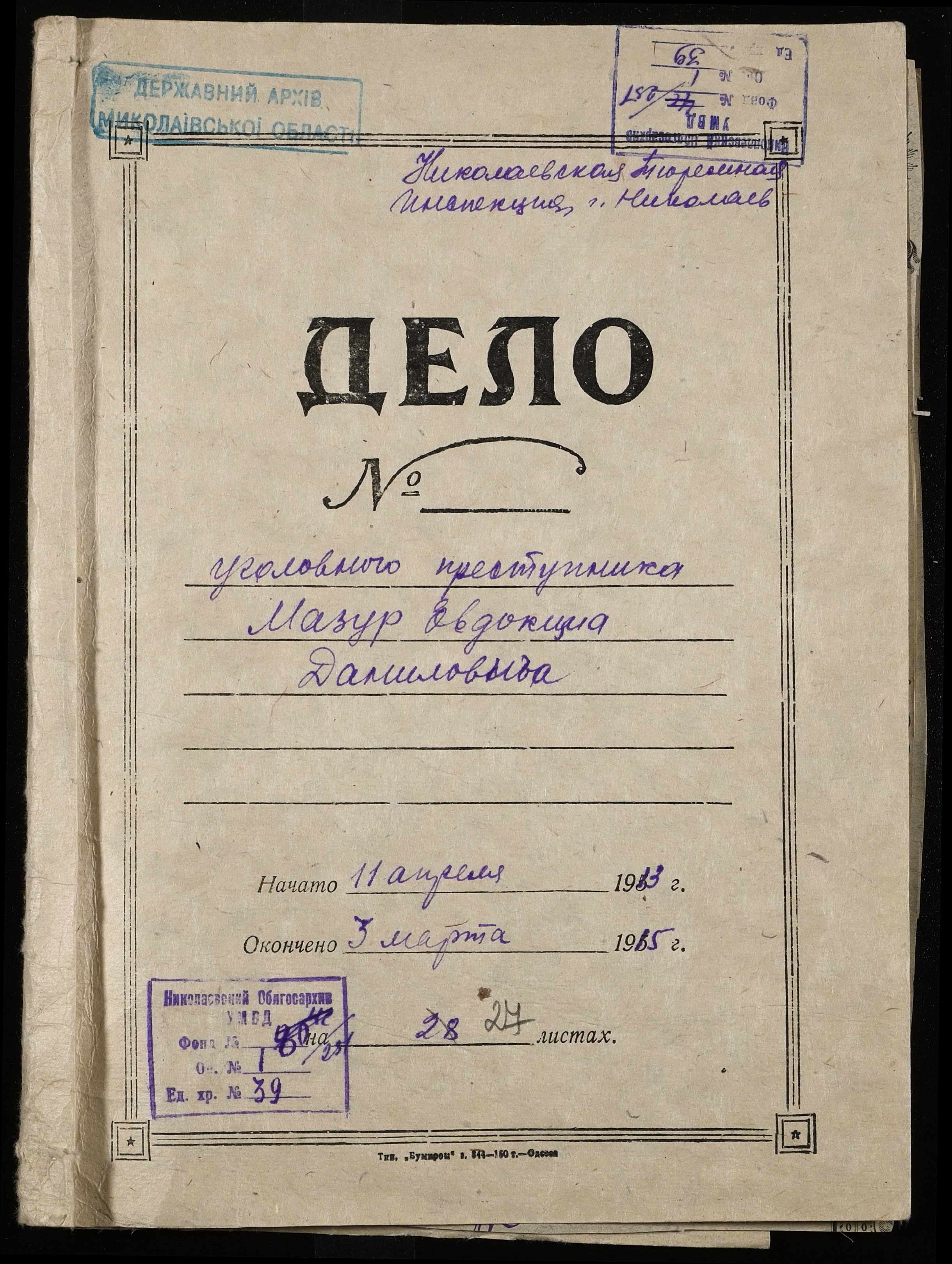 • • • • Справа № 39 Мазур Є.Д.