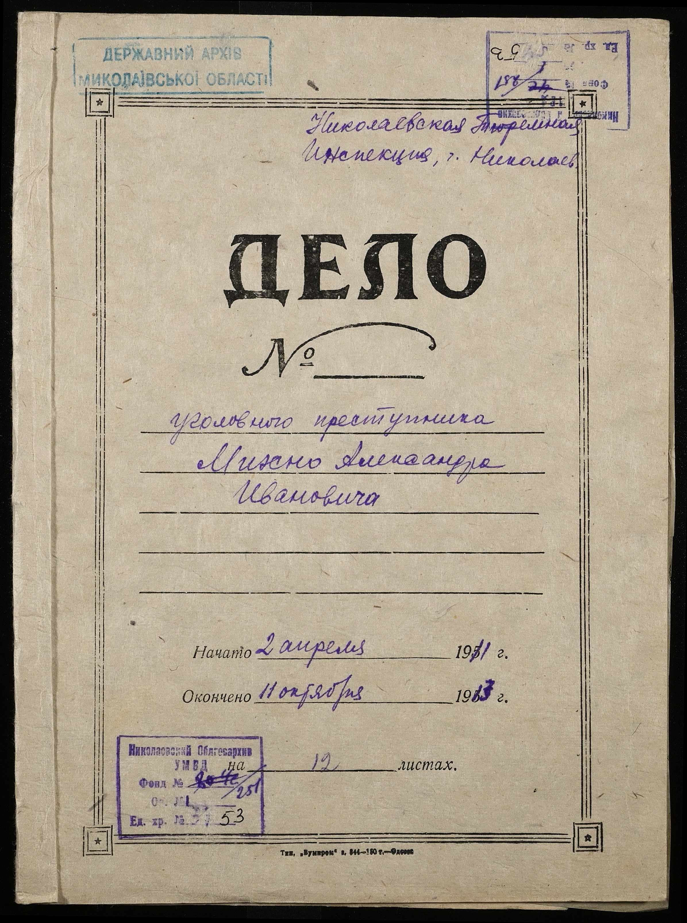 ◦ ◦ Фонд № 251 “Миколаївська тюремна інспекція”