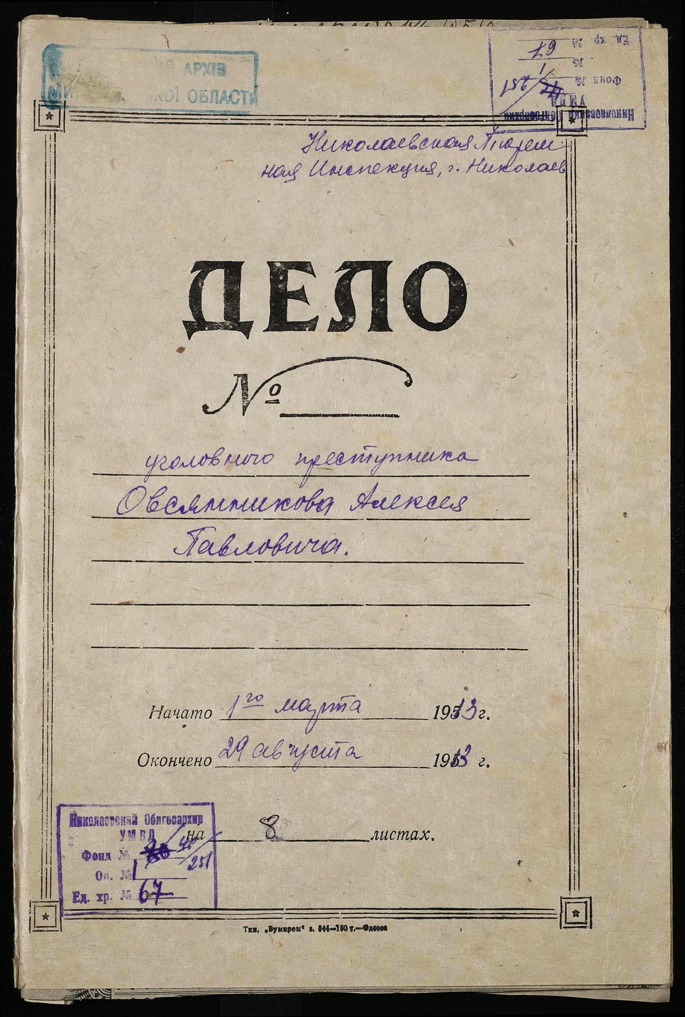 ◦ ◦ Фонд № 251 “Миколаївська тюремна інспекція”