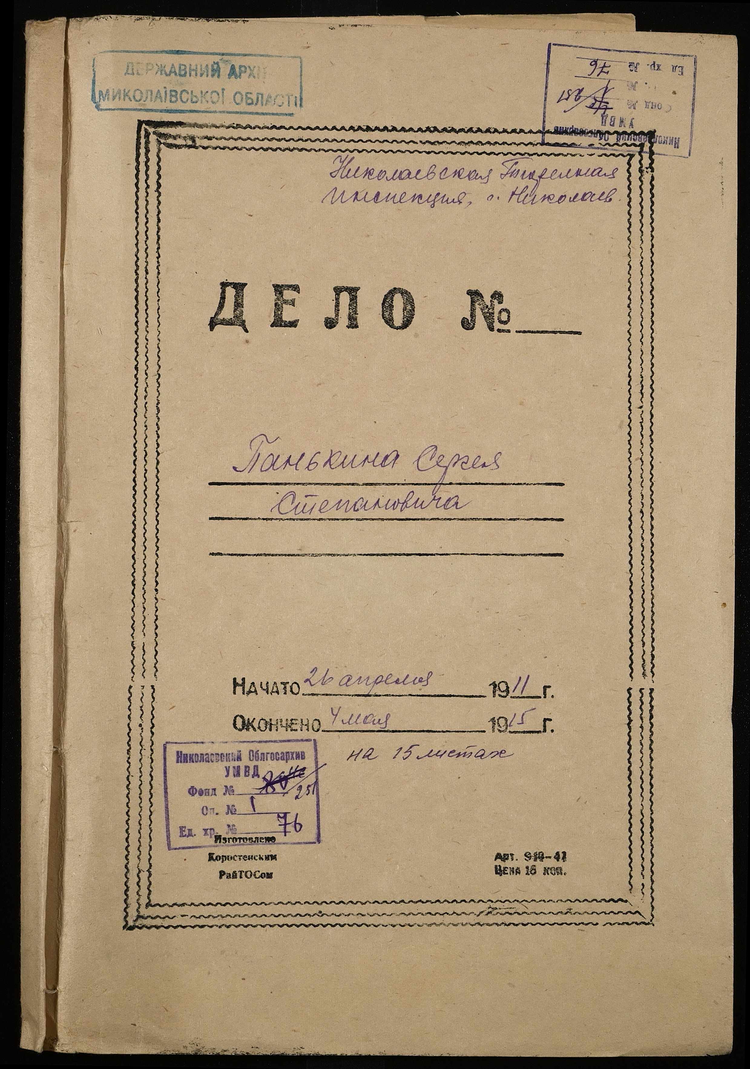 ◦ ◦ Фонд № 251 “Миколаївська тюремна інспекція”