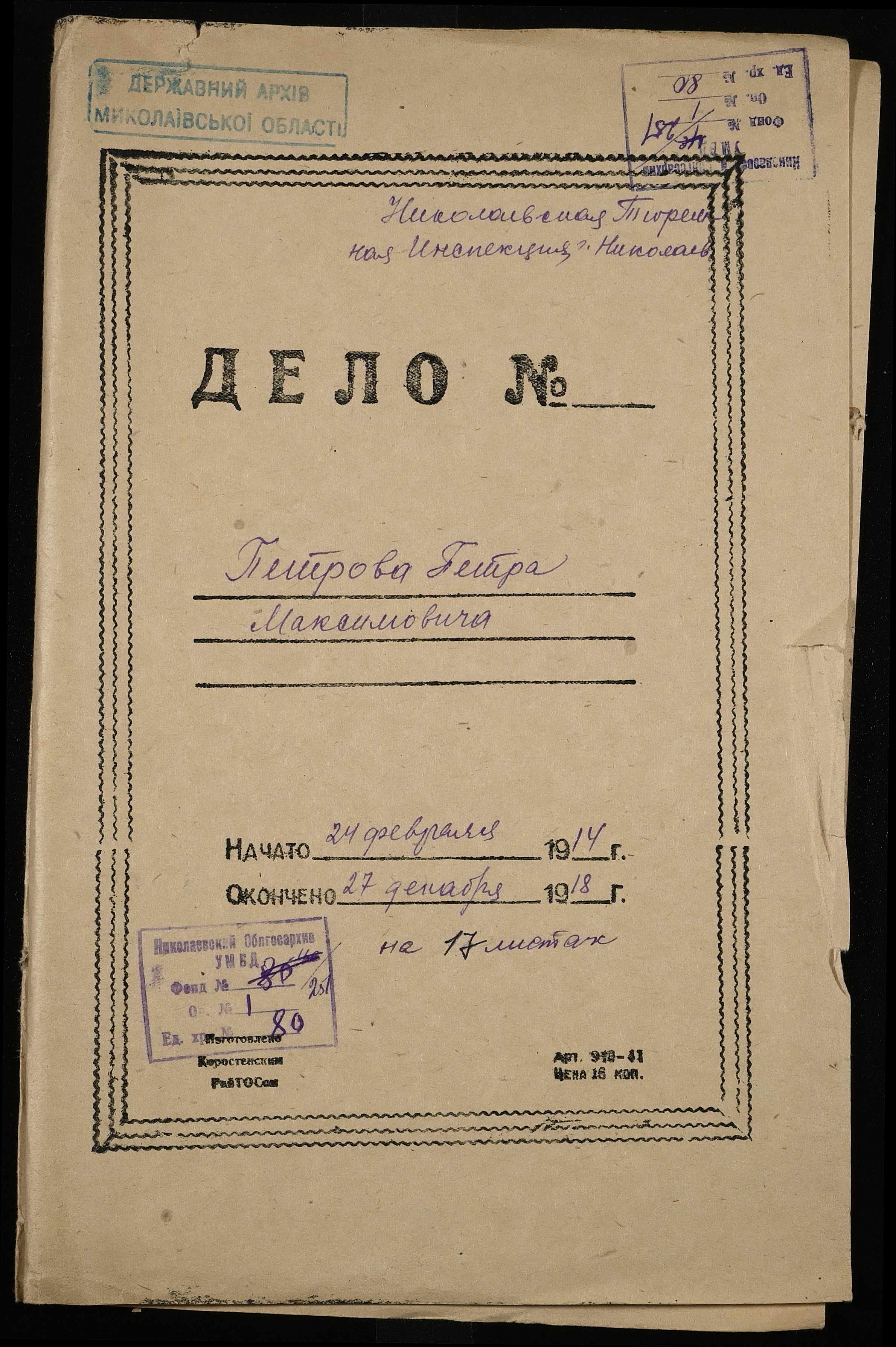 • • • • Справа № 80 Петров П.М.