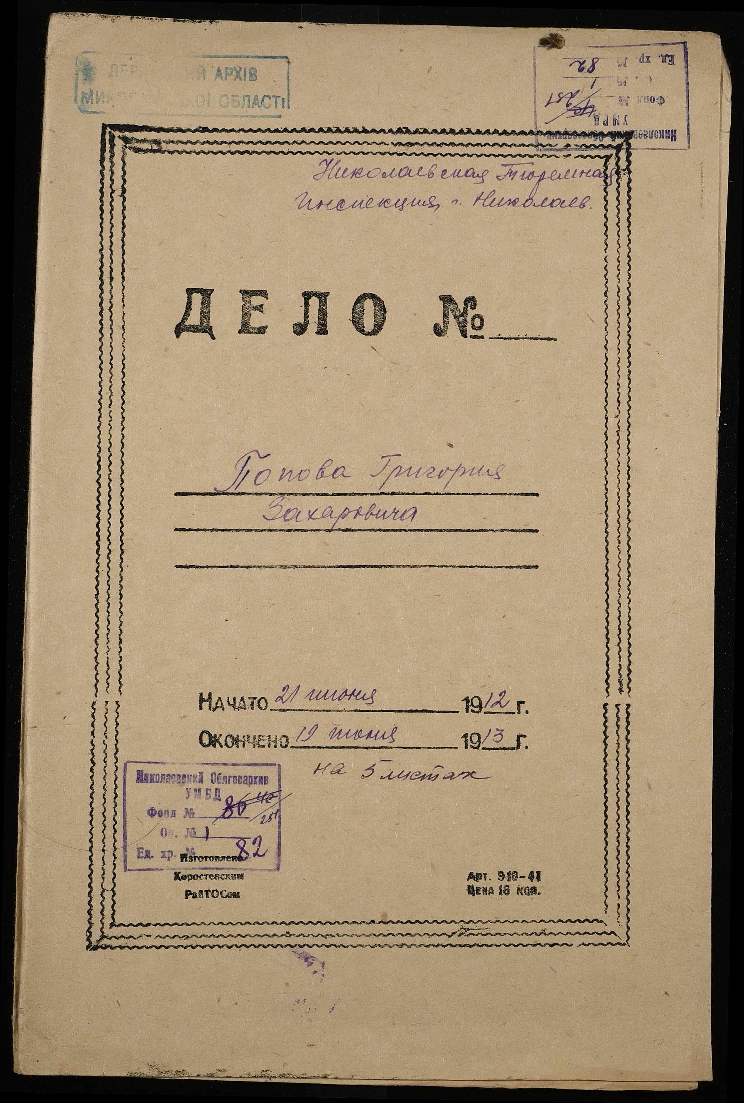 • • • • Справа № 82 Попов Г.З.