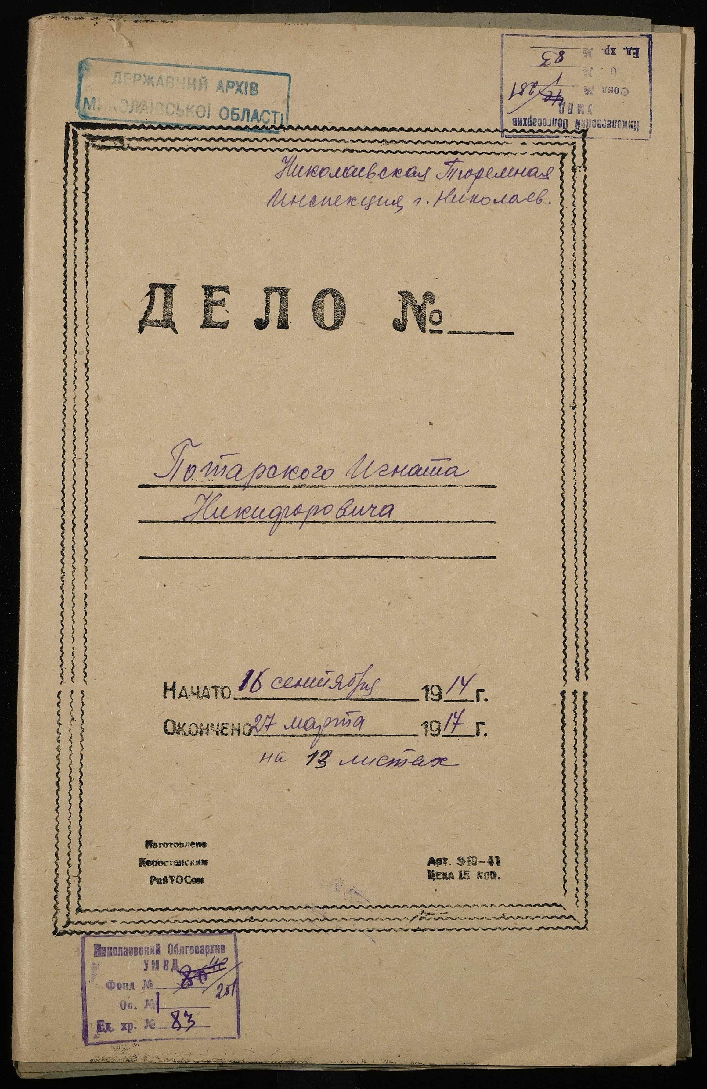 • • • • Справа № 83 Потарський І.Н.