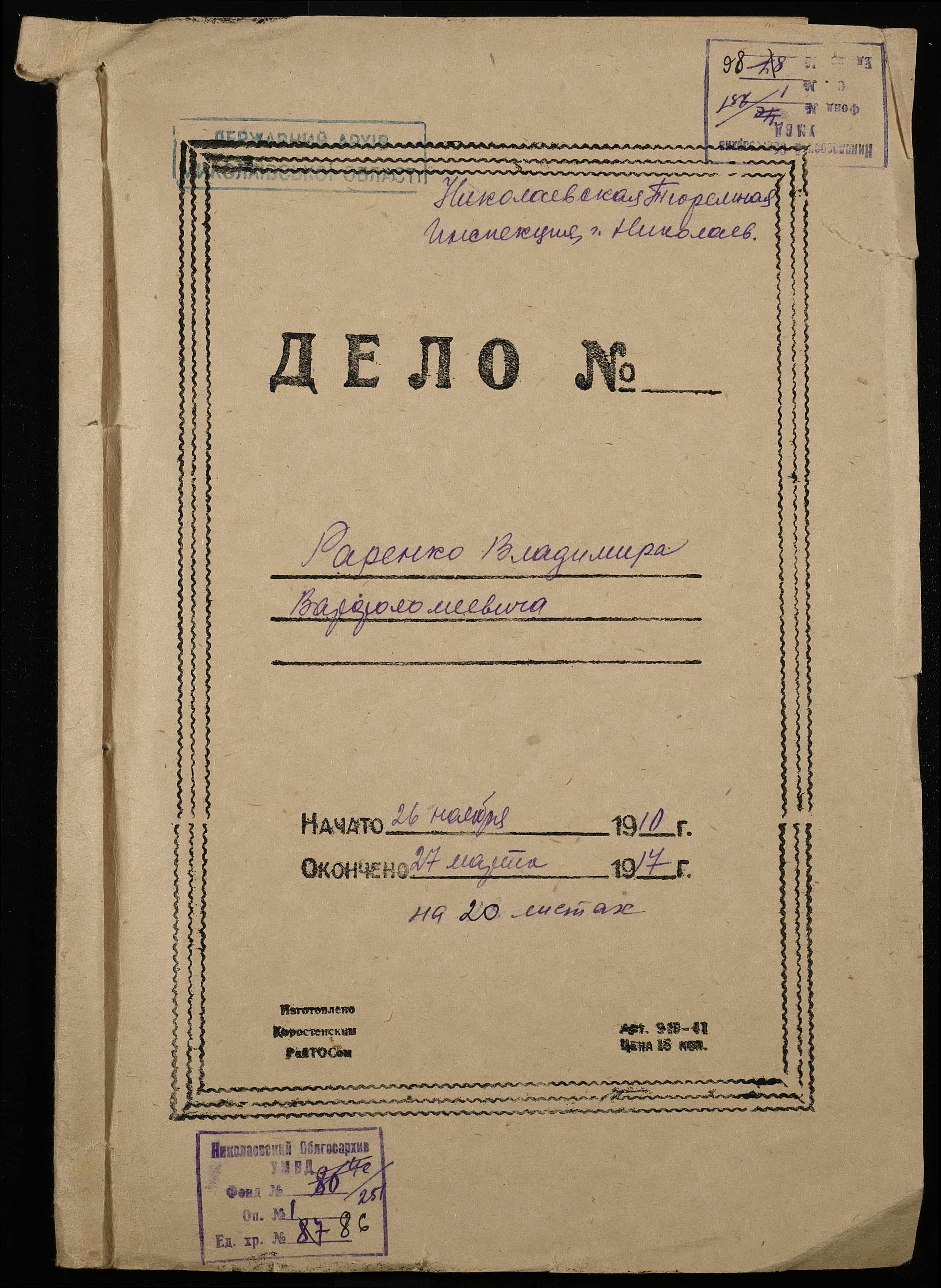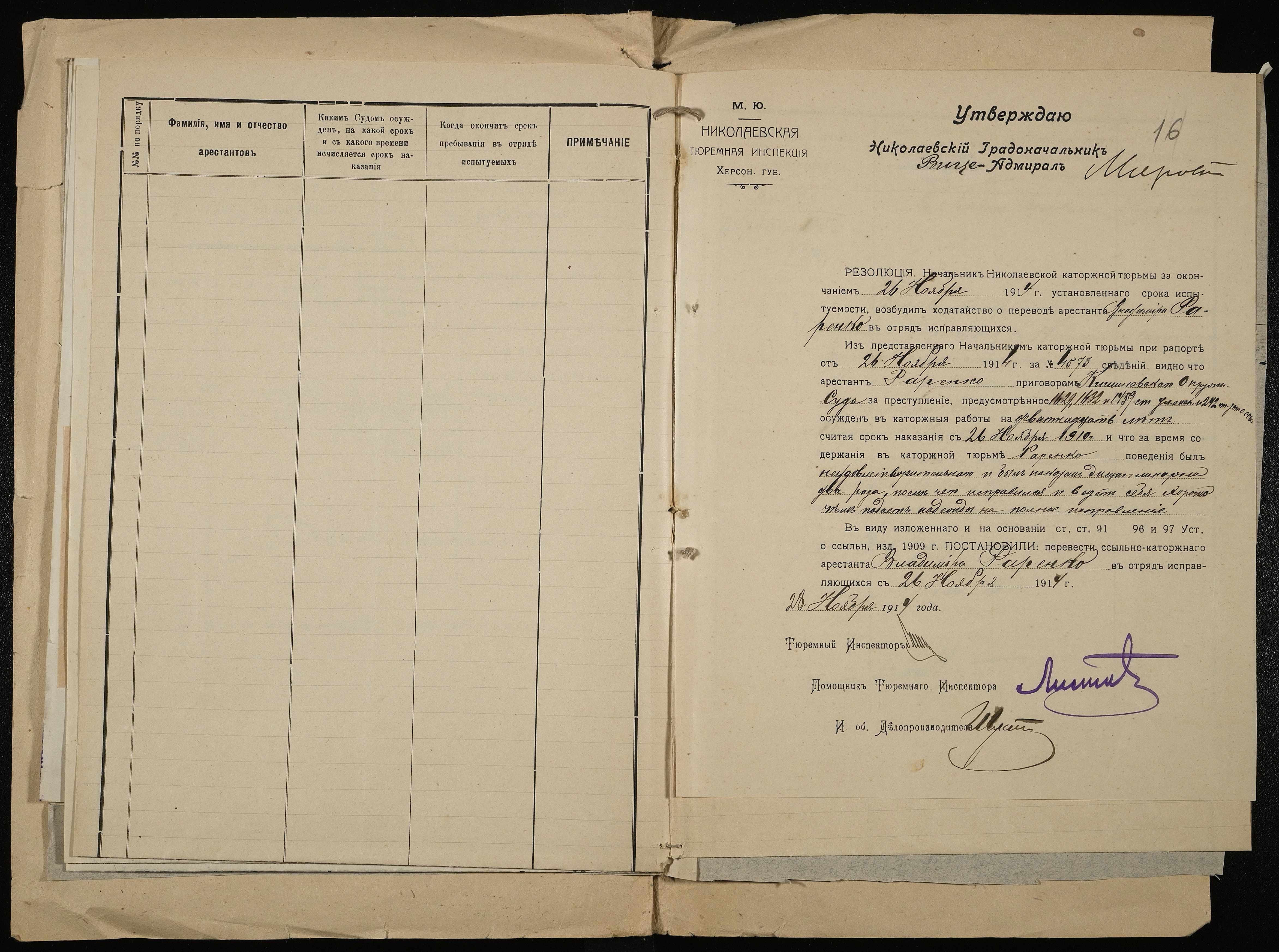 ◦ ◦ Фонд № 251 “Миколаївська тюремна інспекція”
