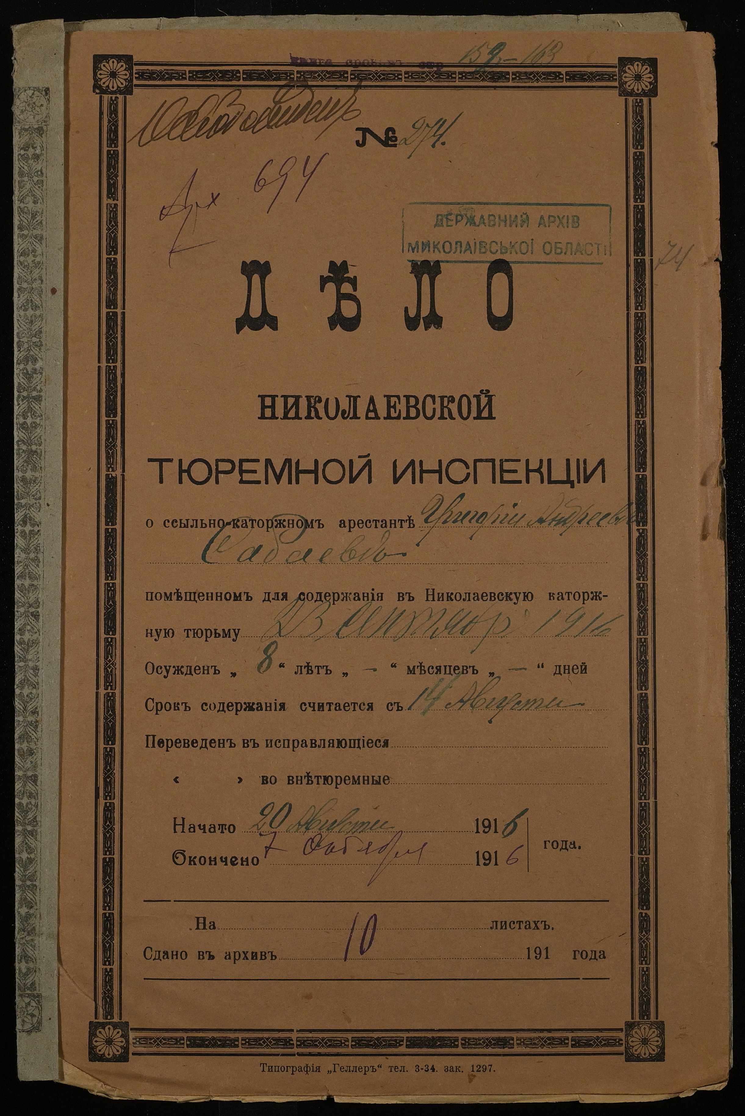 ◦ ◦ Фонд № 251 “Миколаївська тюремна інспекція”