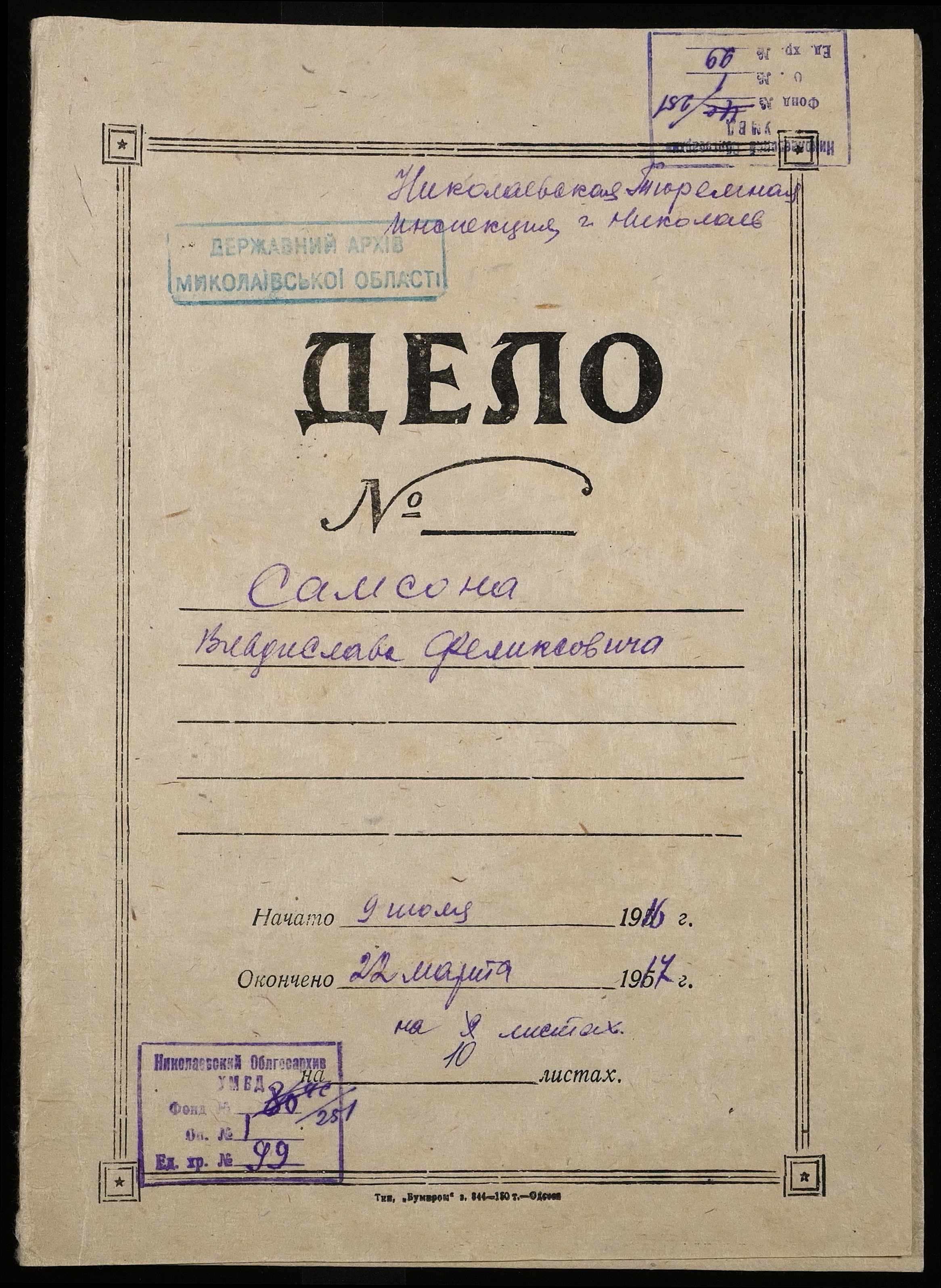 • • • • Справа № 99 Самсон В.Ф.