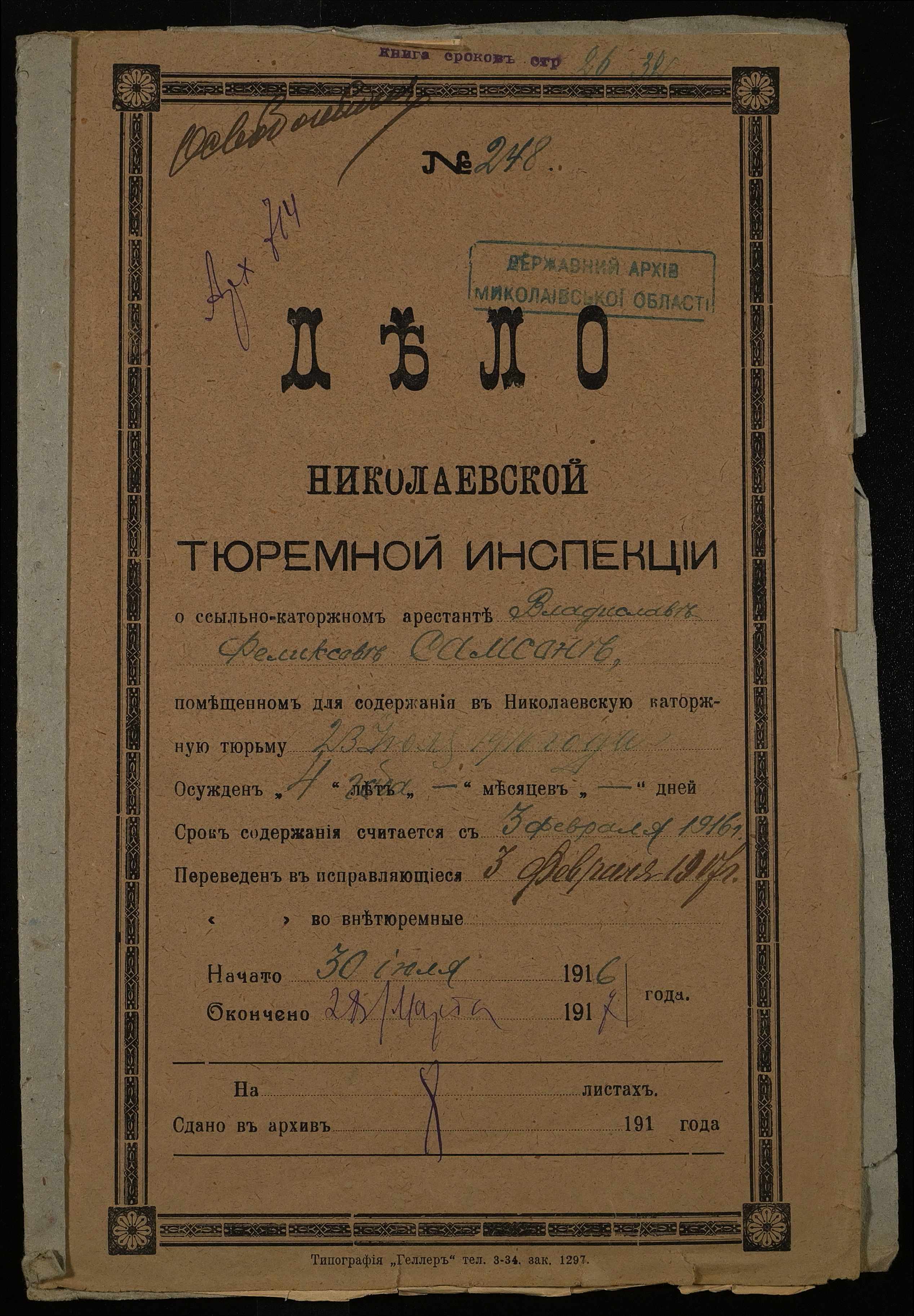 ◦ ◦ Фонд № 251 “Миколаївська тюремна інспекція”