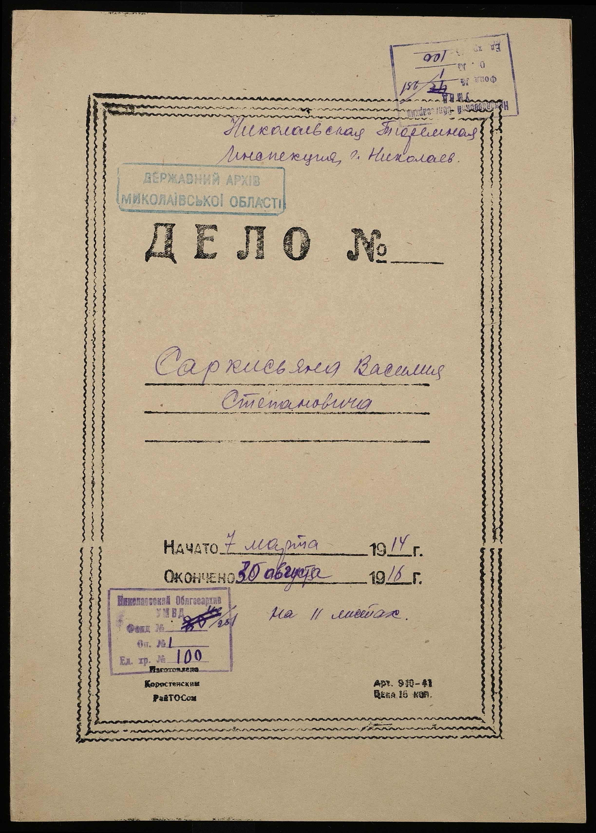 • • • • Справа № 100 Саркис’янц В.С.