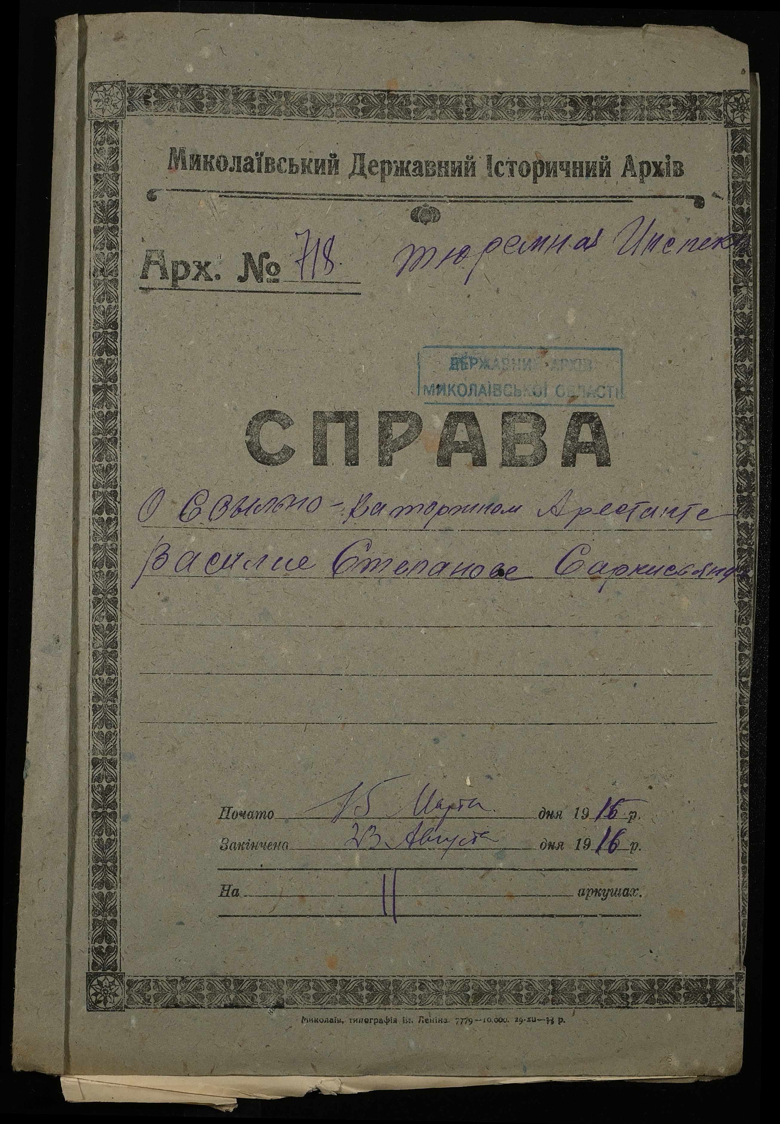 ◦ ◦ Фонд № 251 “Миколаївська тюремна інспекція”