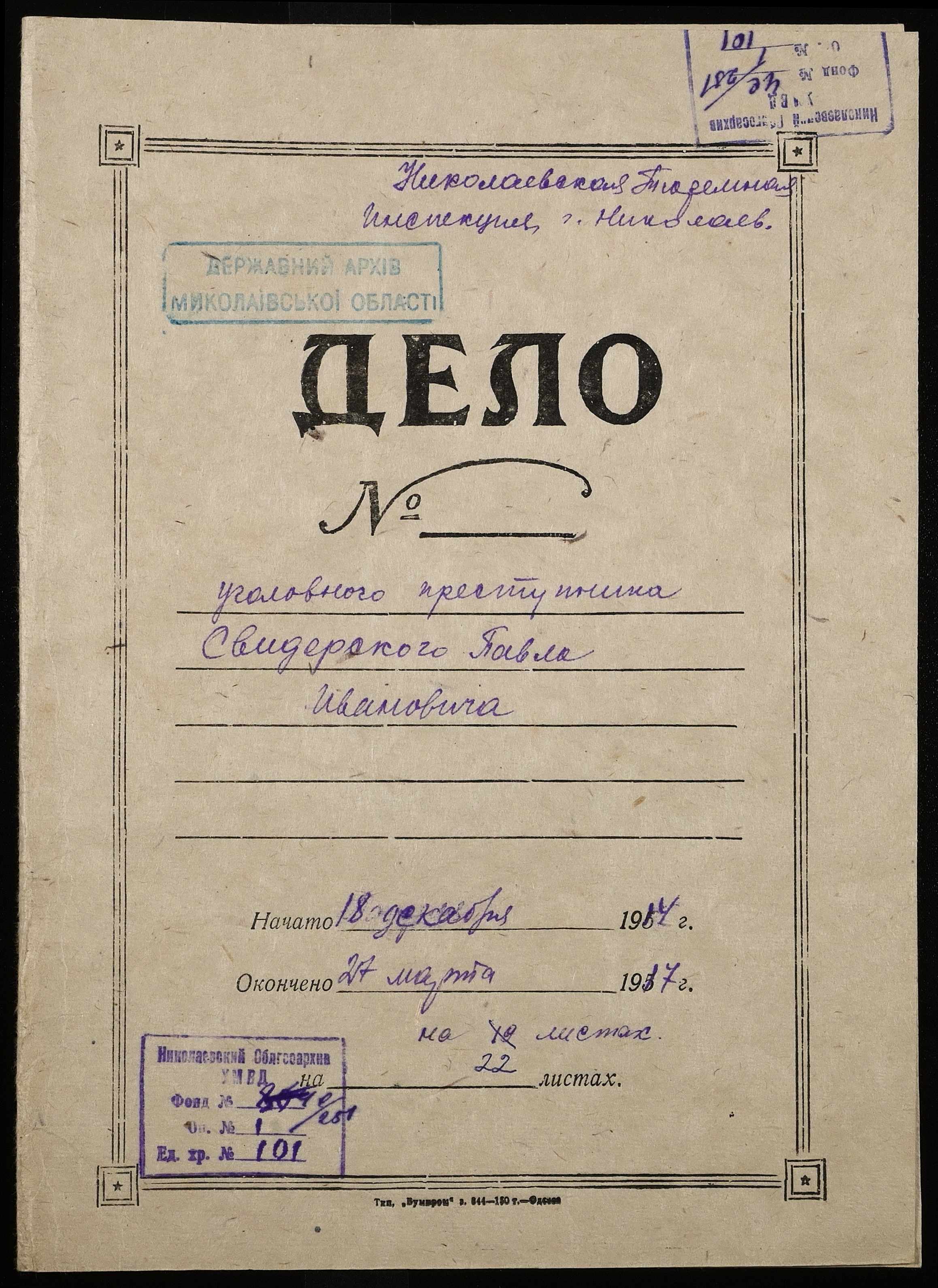 • • • • Справа № 101 Свідерський П.І.