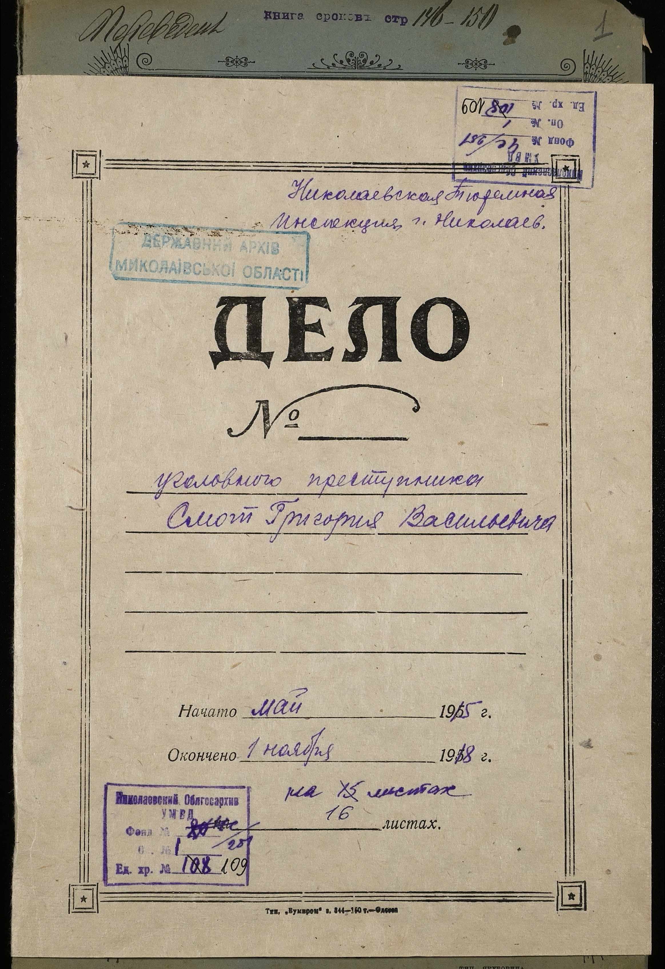 ◦ ◦ Фонд № 251 “Миколаївська тюремна інспекція”