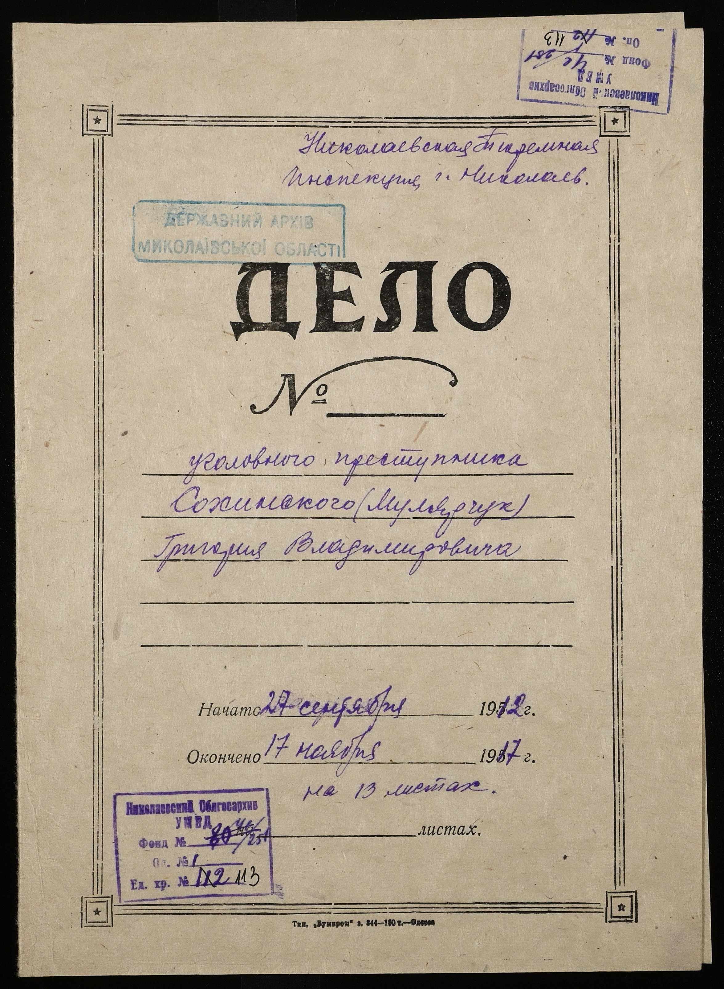 • • • • Справа № 113 Сохінський Г.В. (він же Мулярчук)