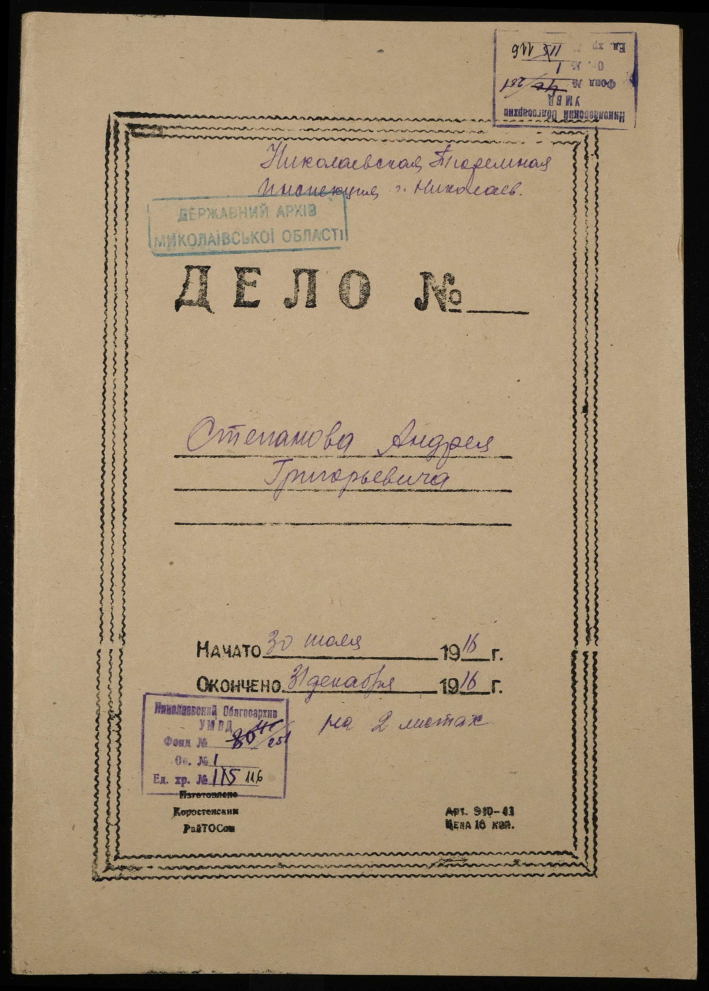• • • • Справа № 116 Степанов А.Г.