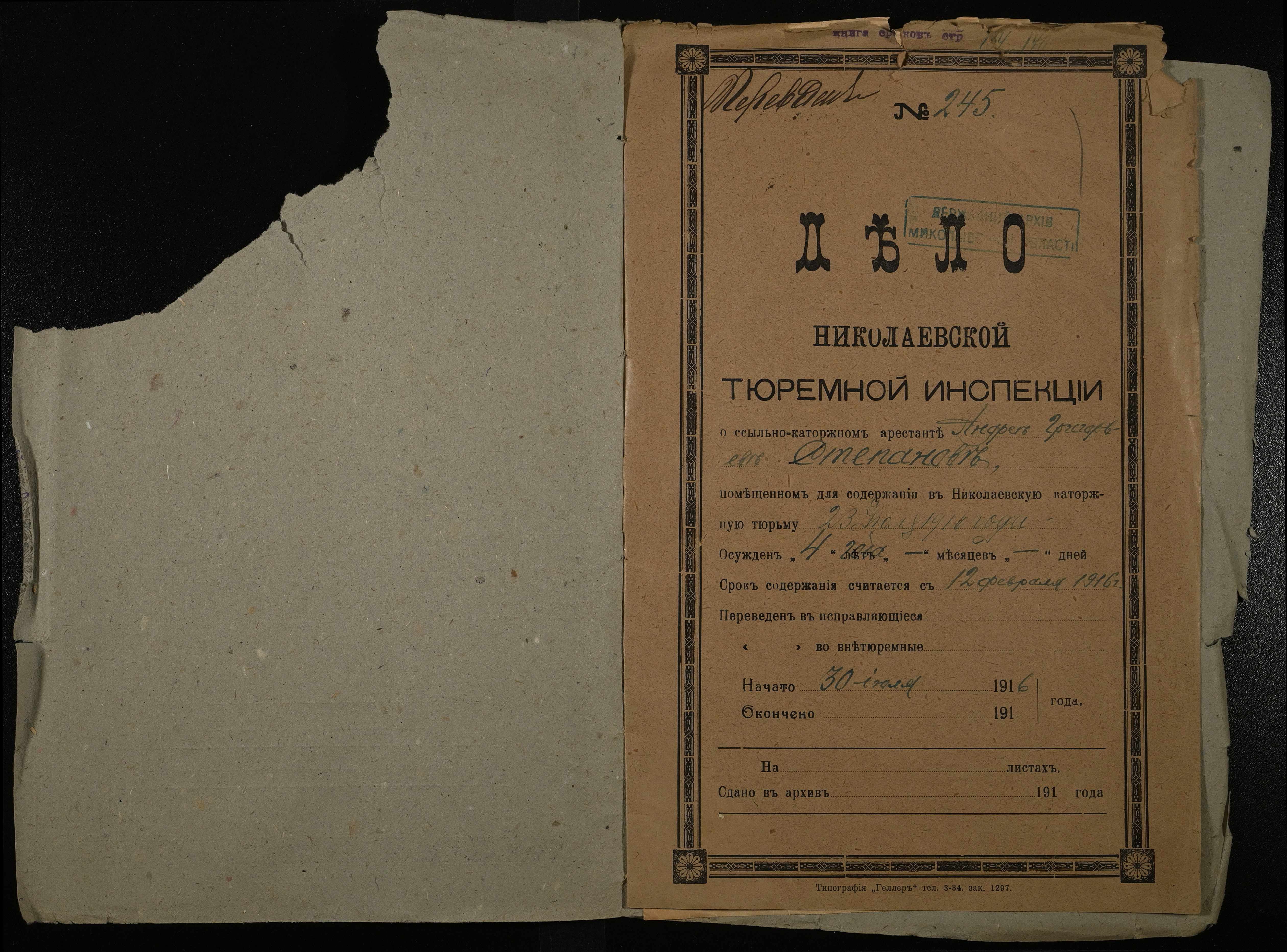 ◦ ◦ Фонд № 251 “Миколаївська тюремна інспекція”