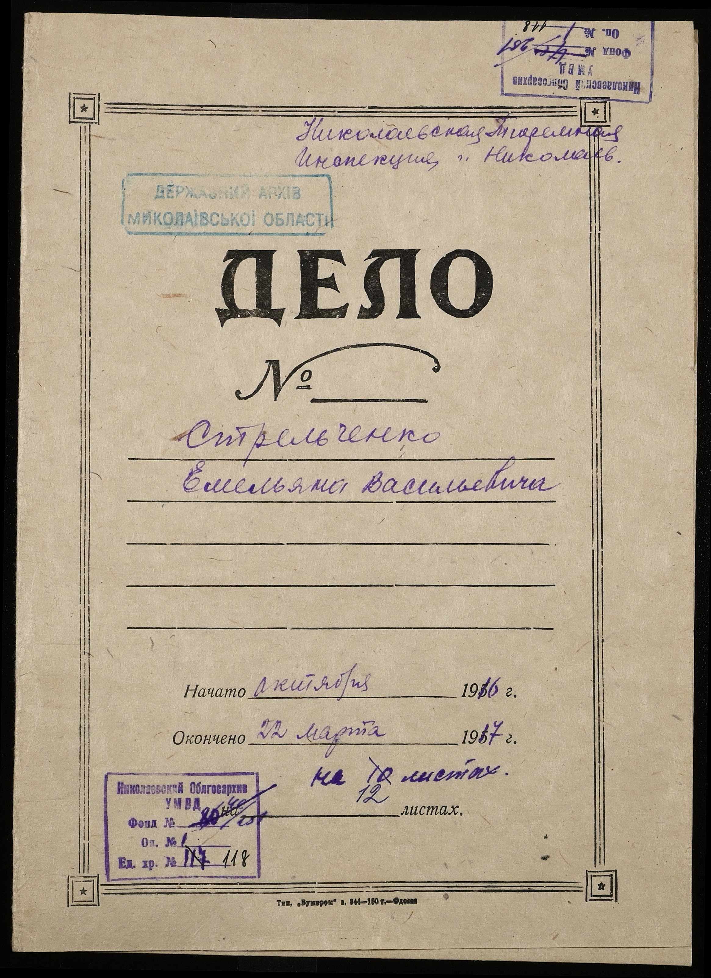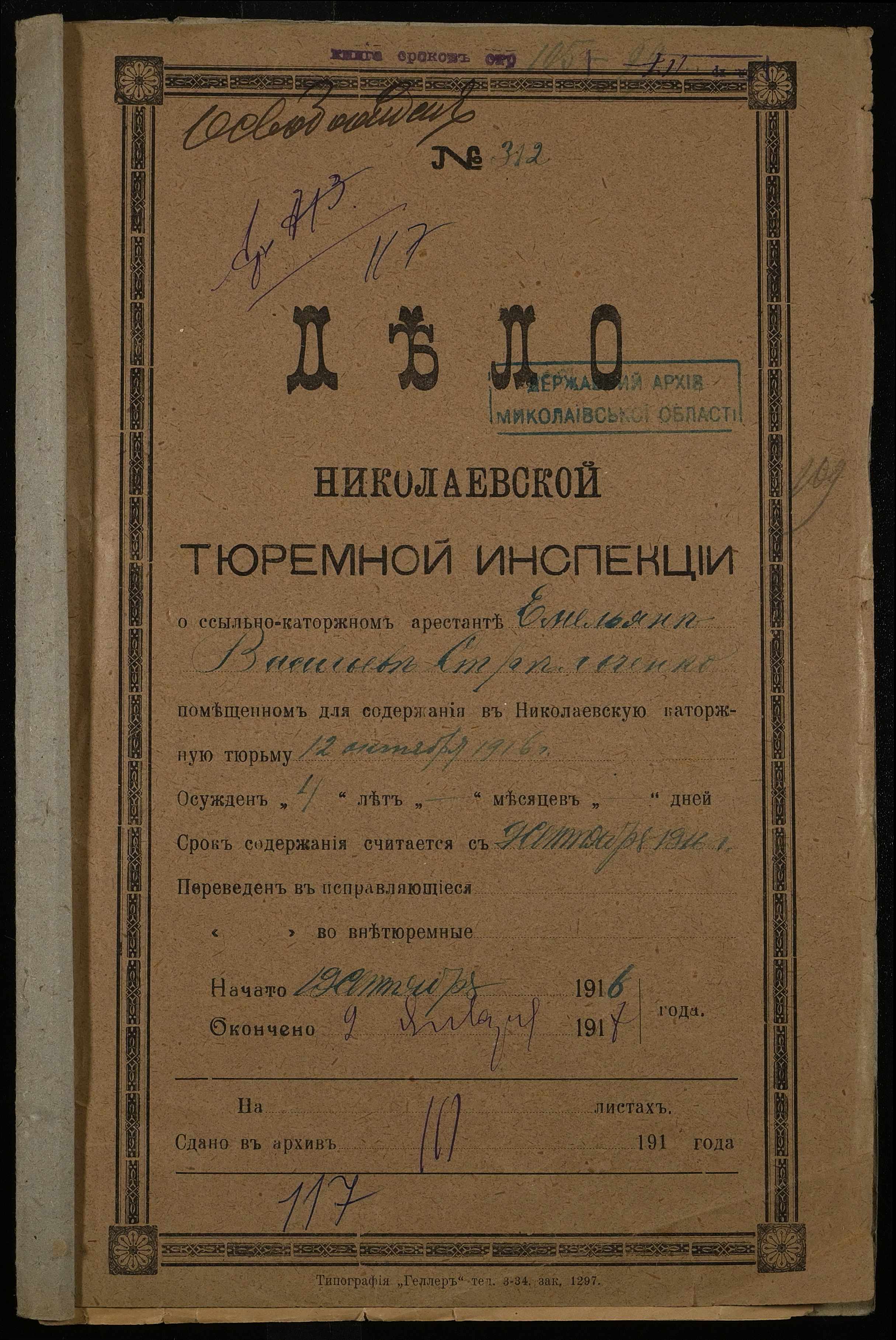 ◦ ◦ Фонд № 251 “Миколаївська тюремна інспекція”