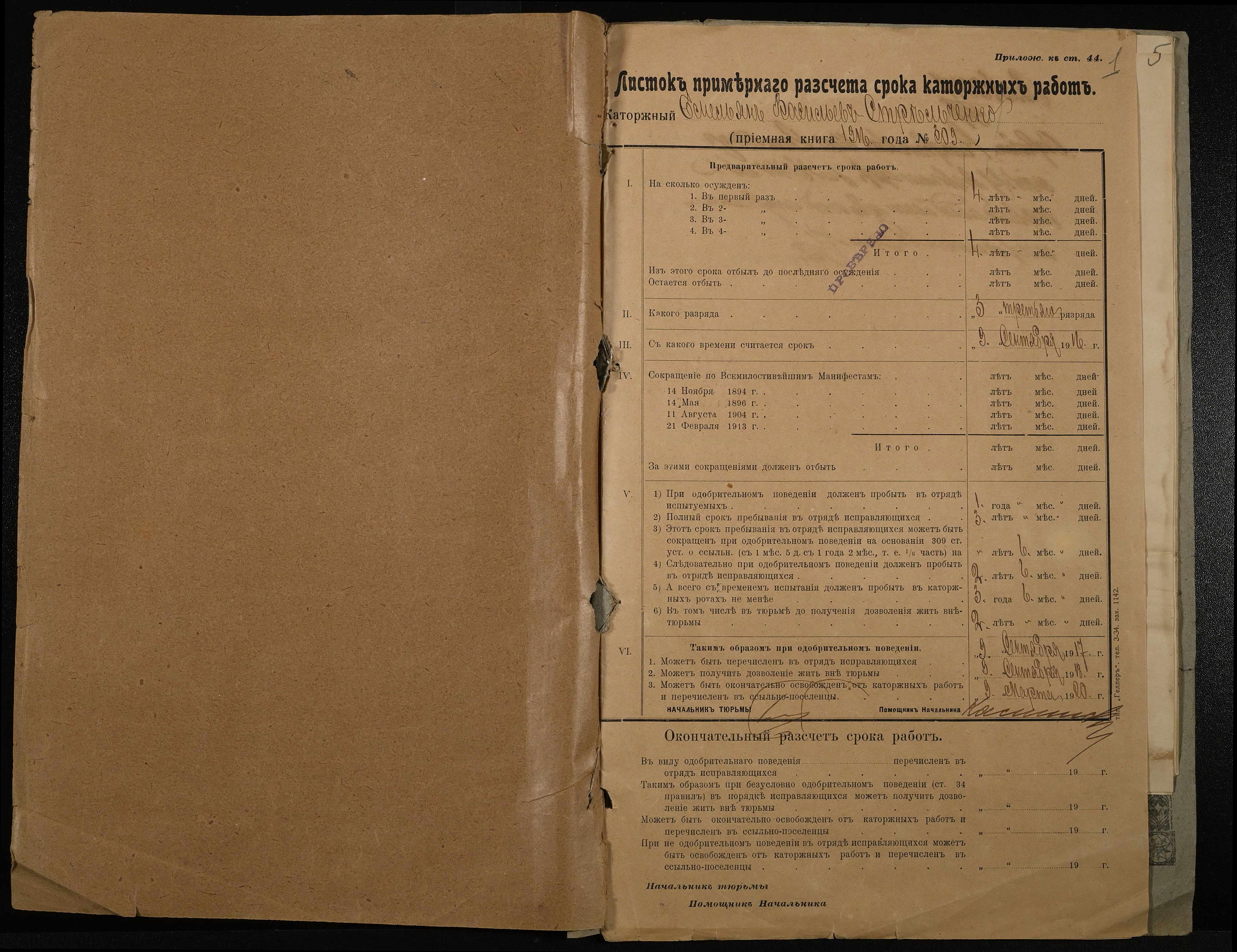 ◦ ◦ ◦ Опис № 1 справ постійного зберігання за 1879, 1883, 1903-1919, 1922, 1927 роки