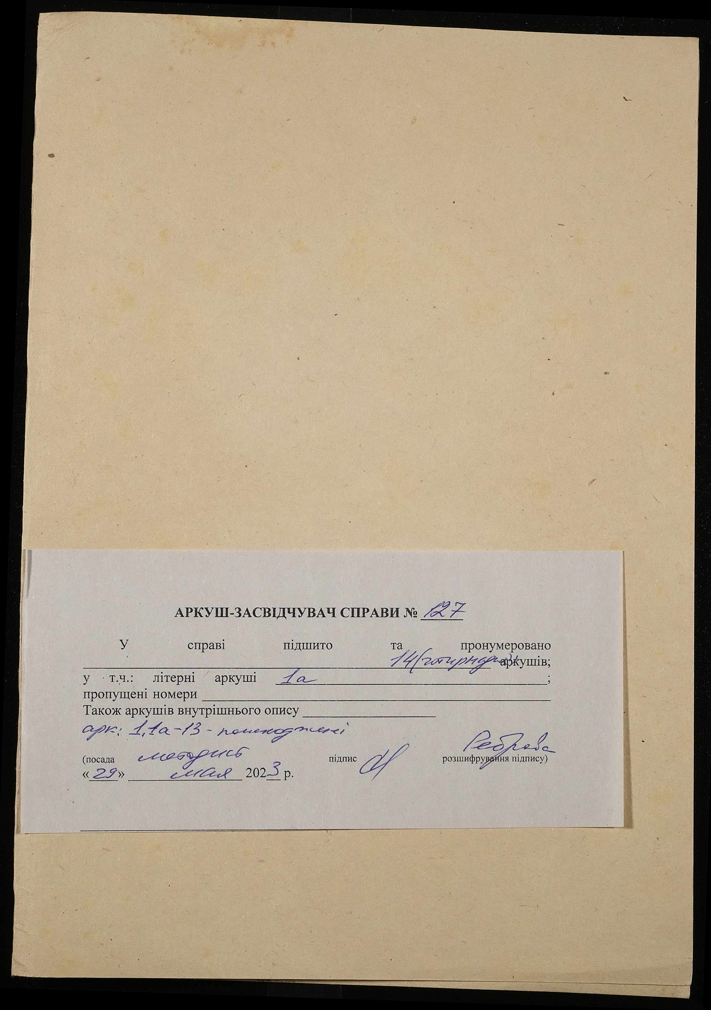 ◦ ◦ ◦ Опис № 1 справ постійного зберігання за 1879, 1883, 1903-1919, 1922, 1927 роки
