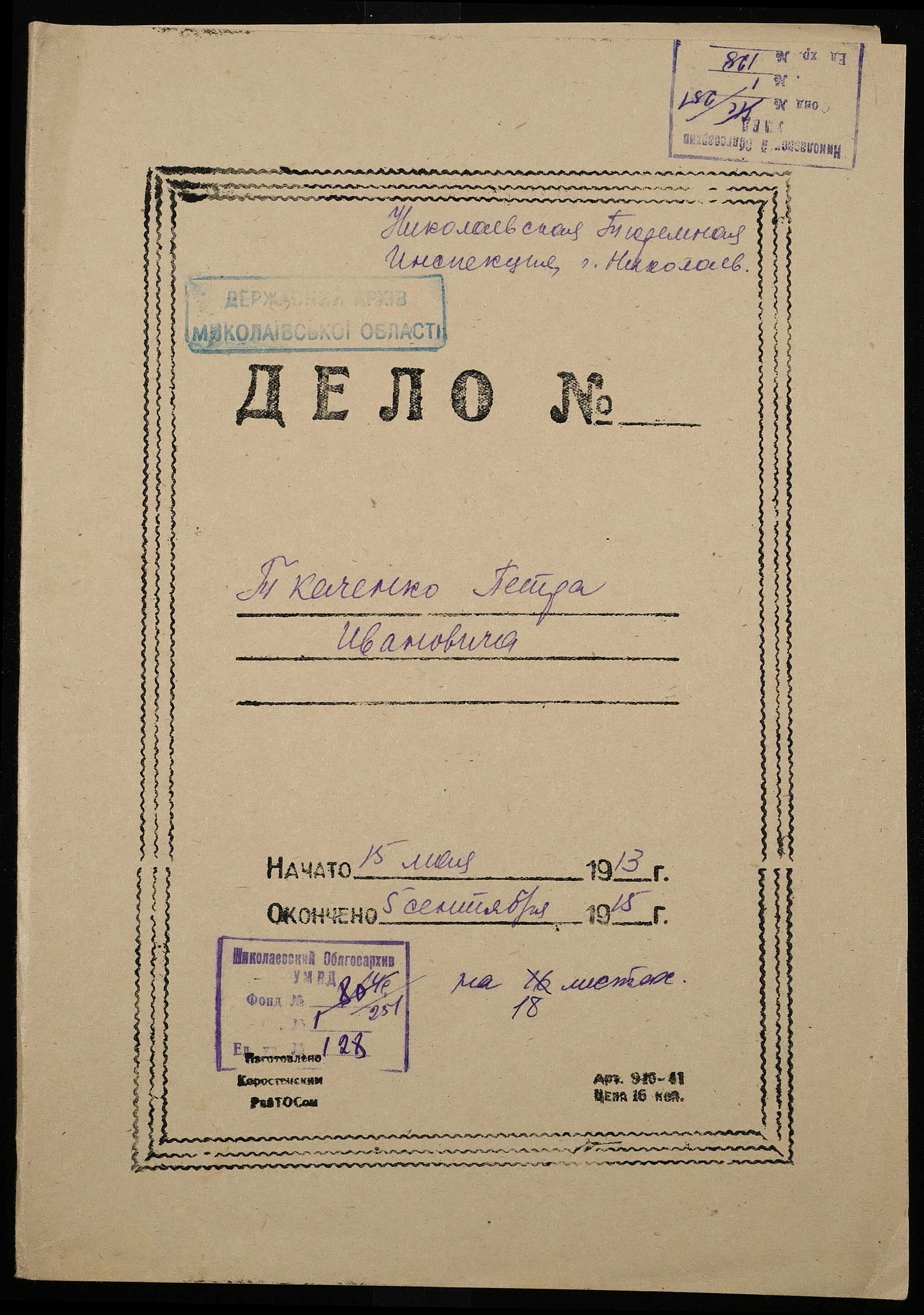 ◦ ◦ Фонд № 251 “Миколаївська тюремна інспекція”