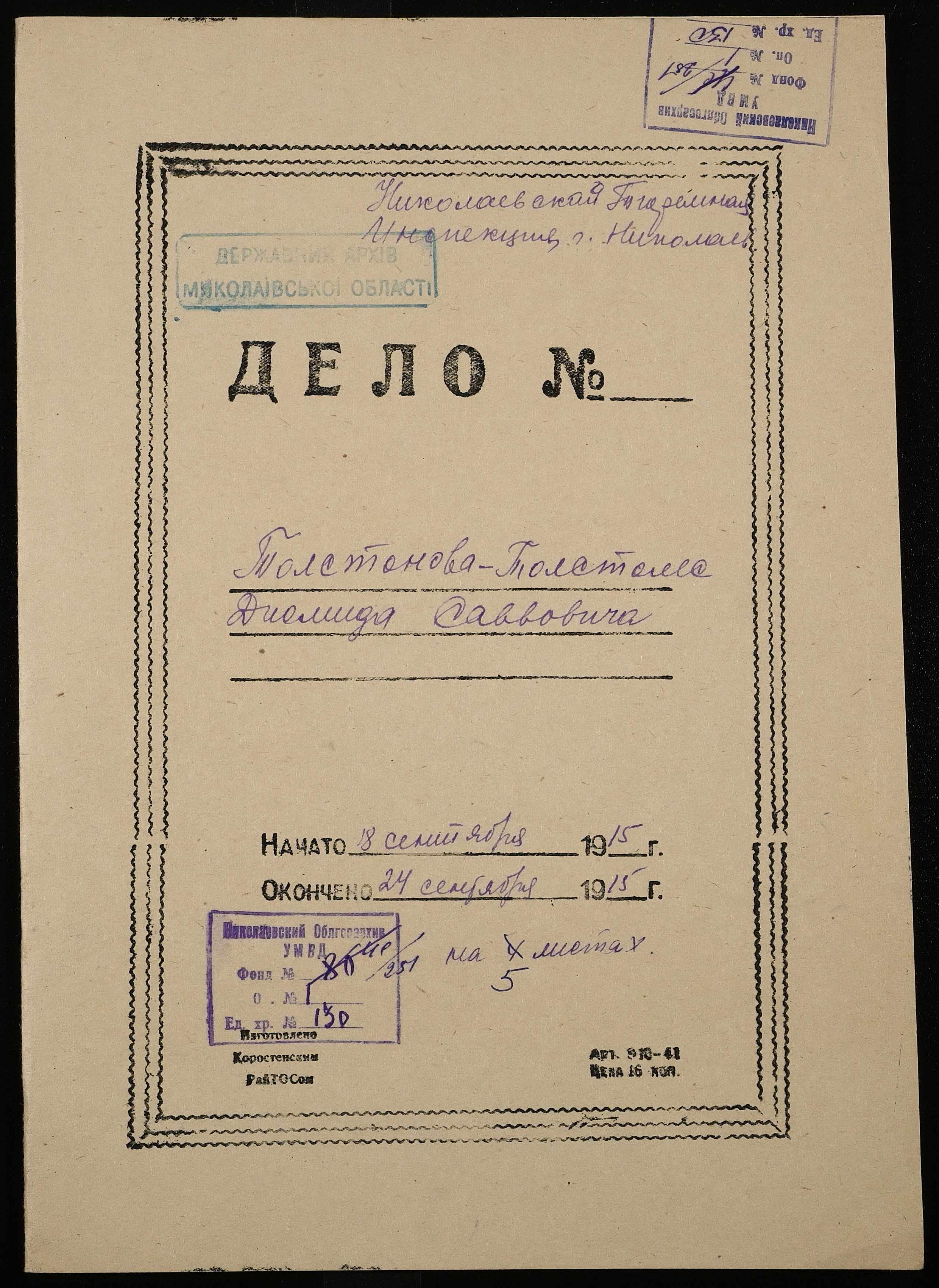 • • • • Справа № 130 Толстоносов (Толстонов, Товстонос, Толстонос) Д.С.