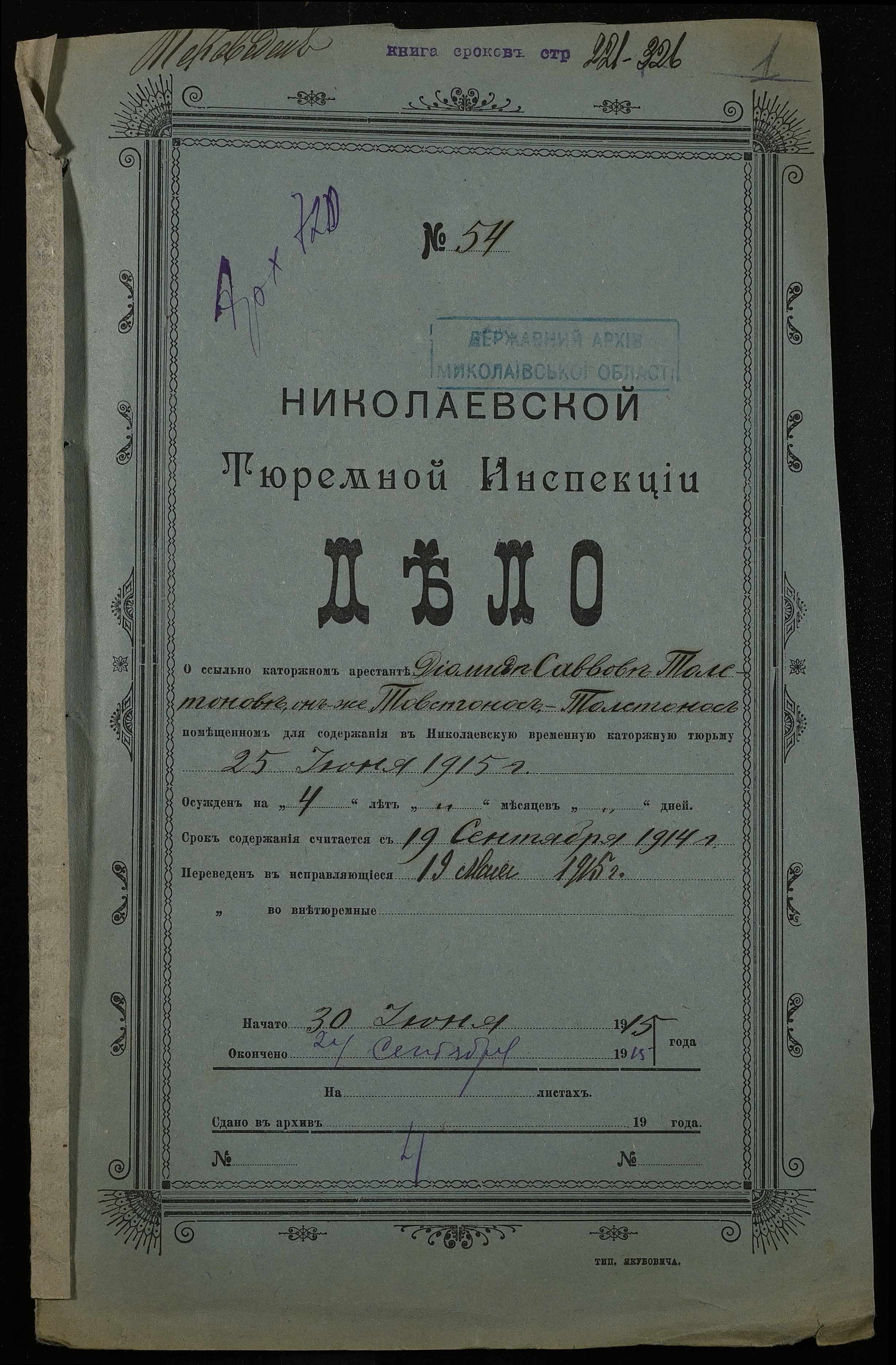 ◦ ◦ Фонд № 251 “Миколаївська тюремна інспекція”