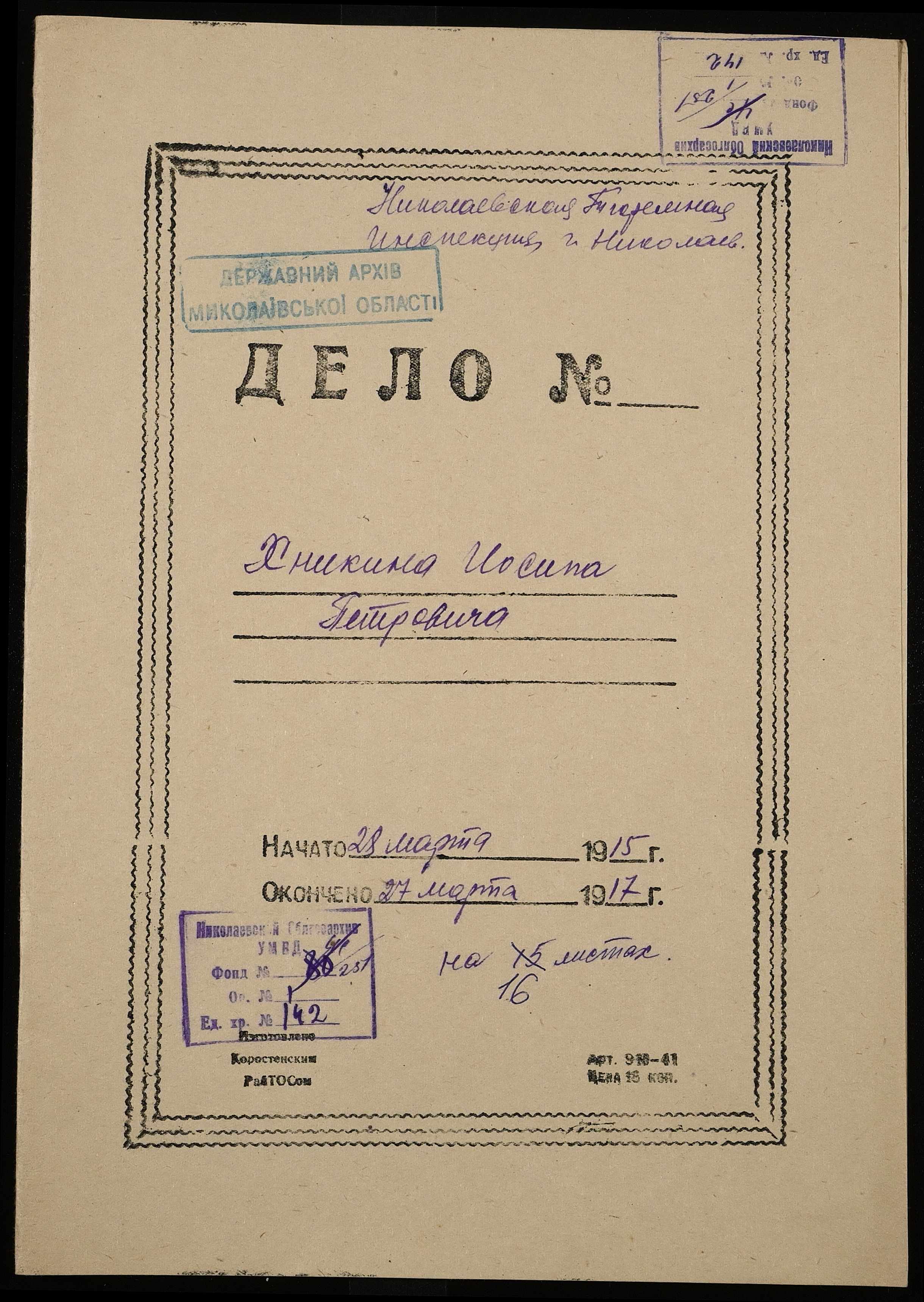 • • • • Справа № 142 Хнікін Й.П.