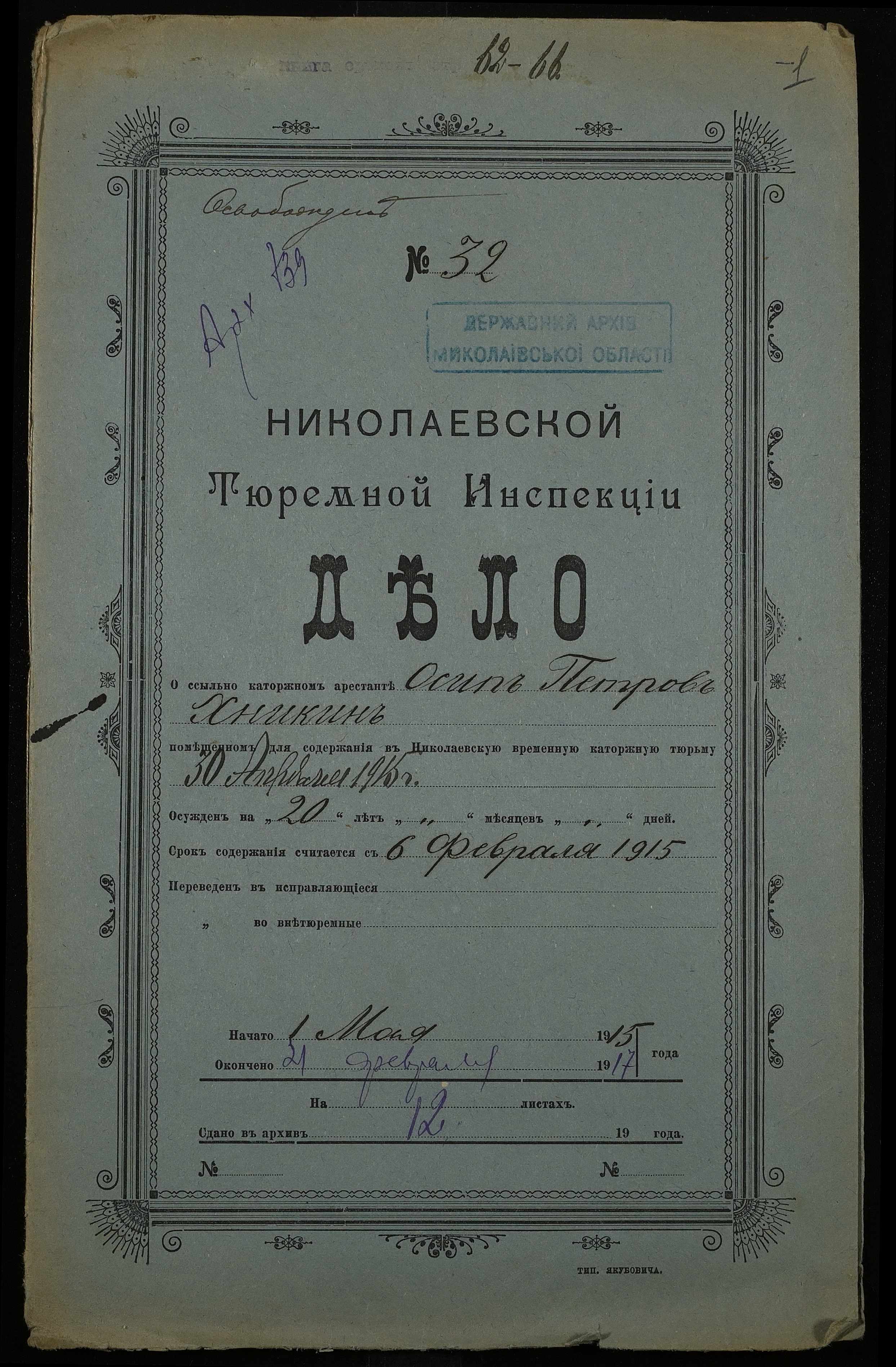 ◦ ◦ Фонд № 251 “Миколаївська тюремна інспекція”
