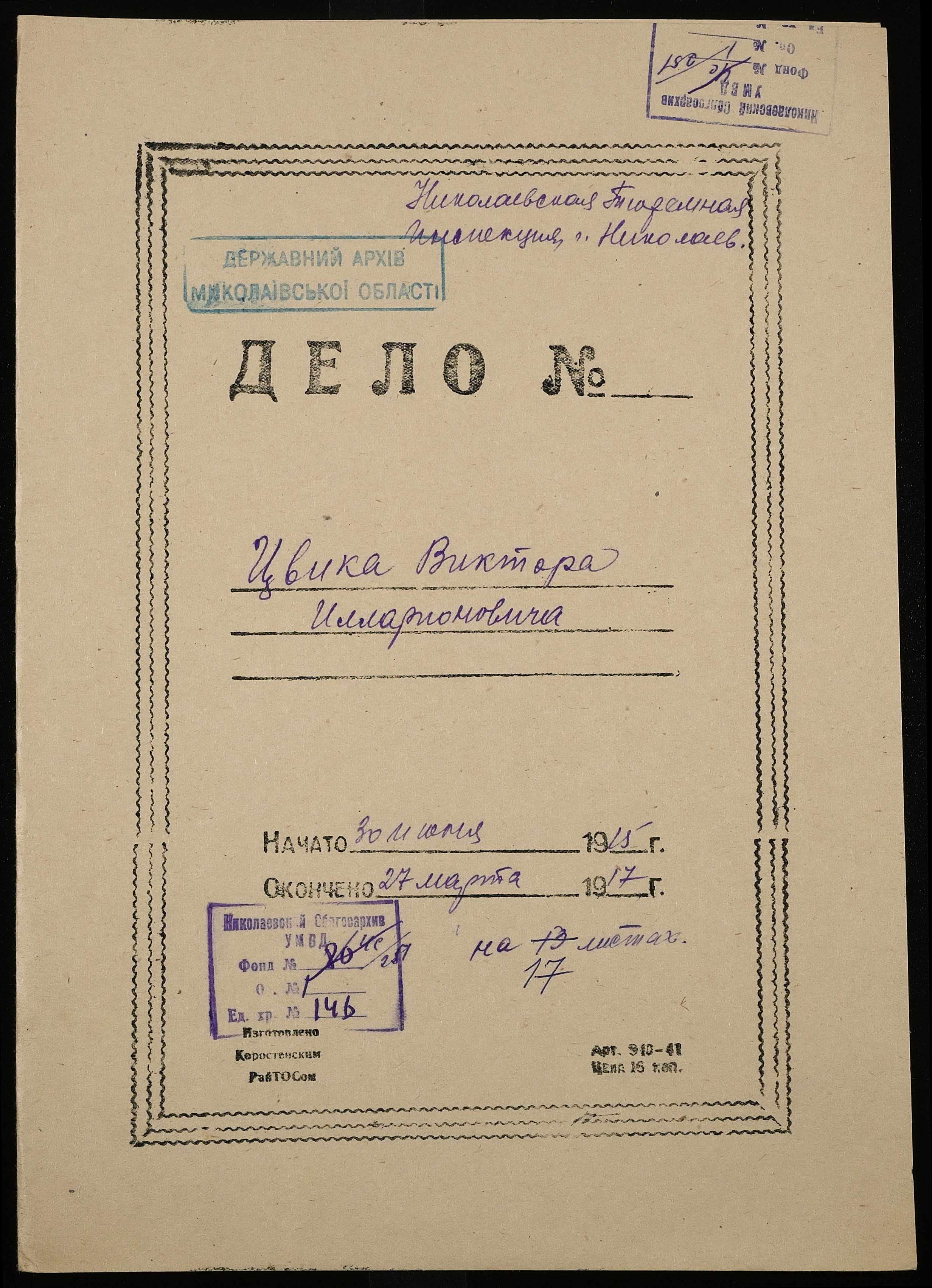 • • • • Справа № 146 Цвик В.І.