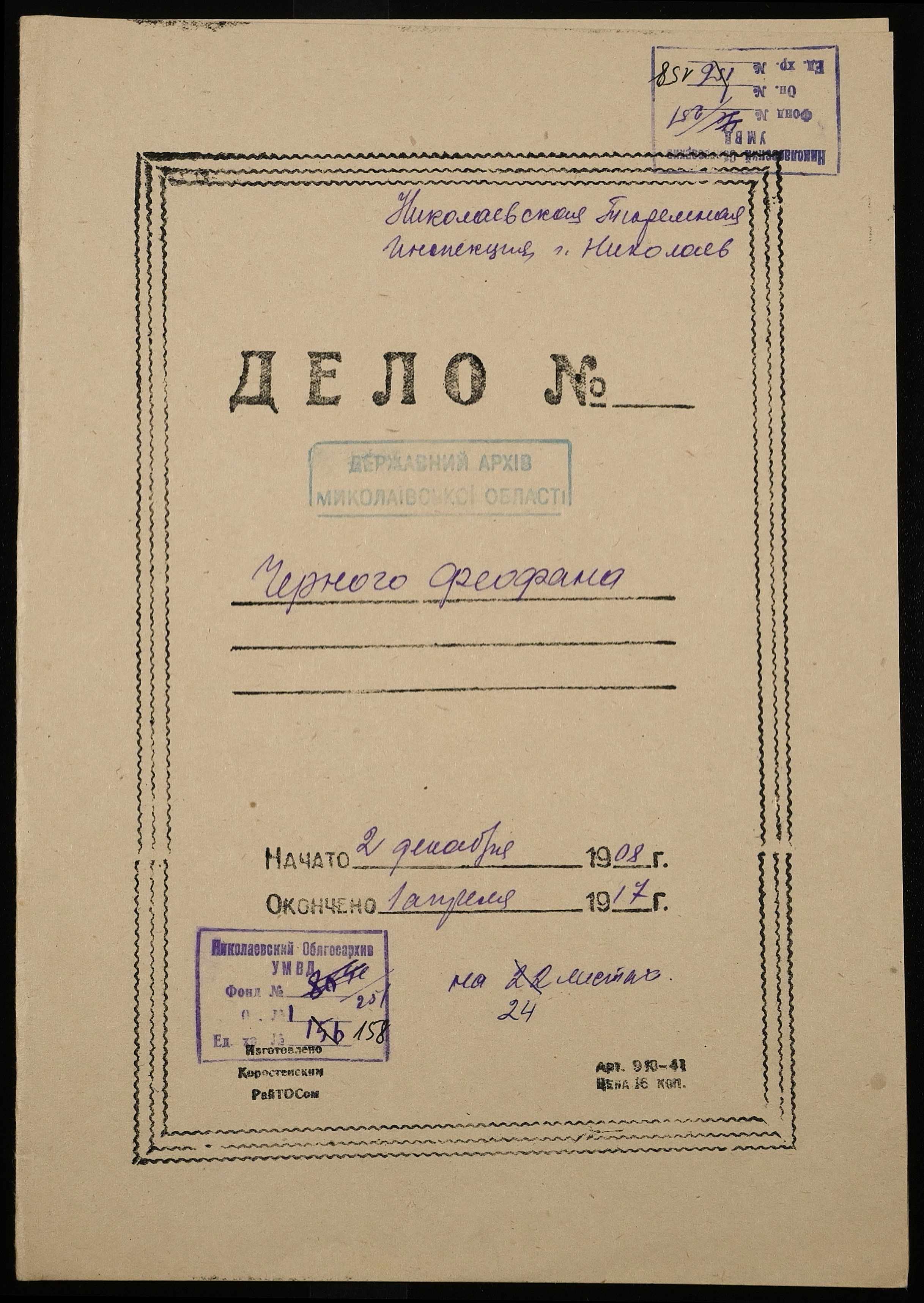 ◦ ◦ Фонд № 251 “Миколаївська тюремна інспекція”