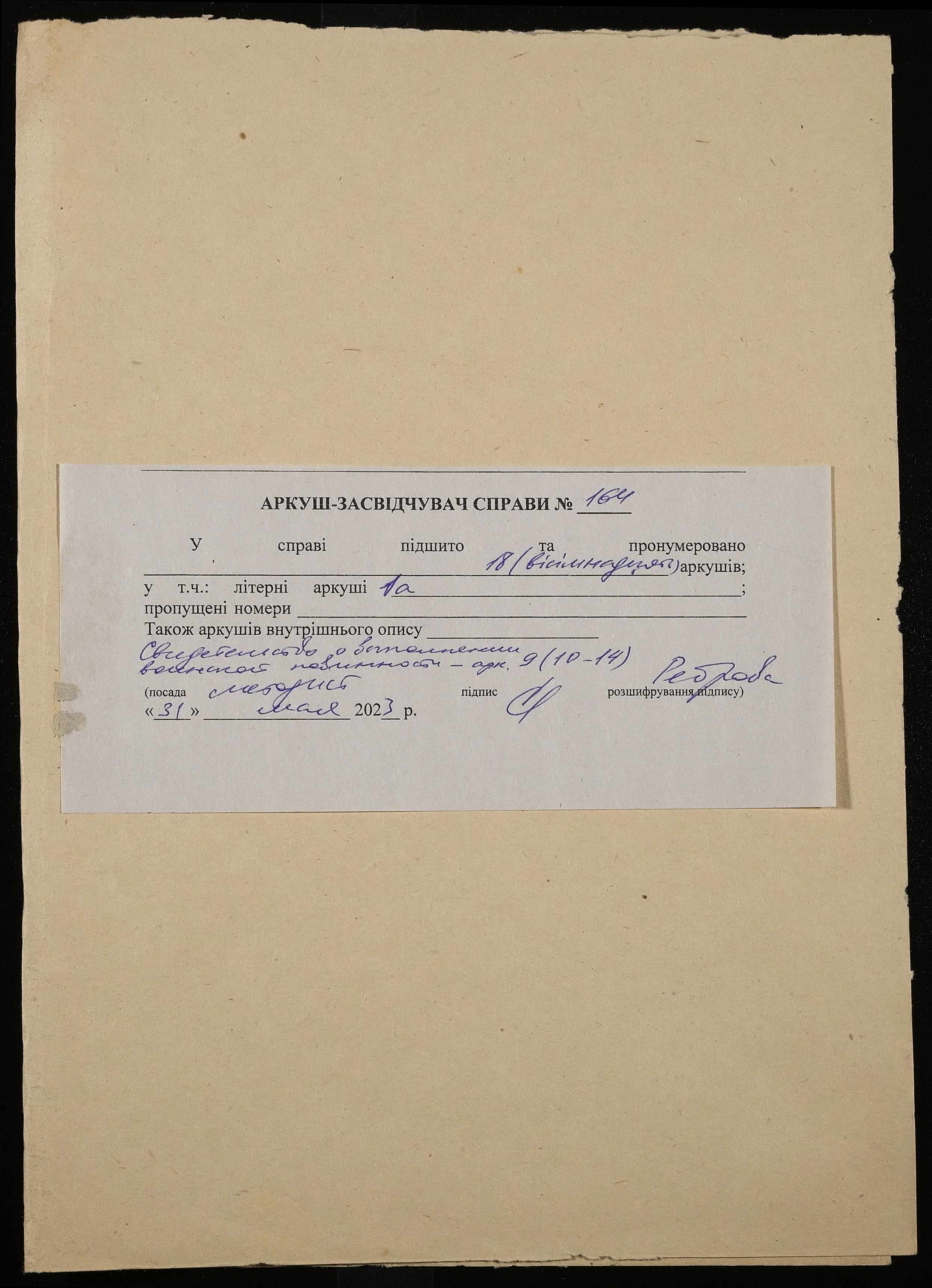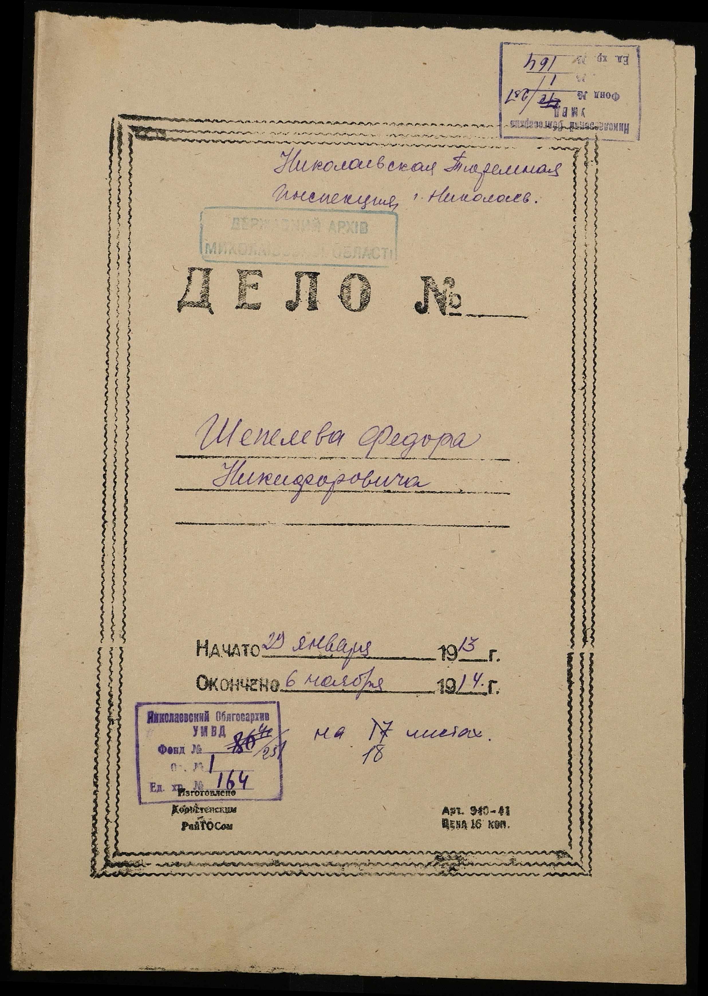 • • • • Справа № 164 Шепелєв Ф.Н.