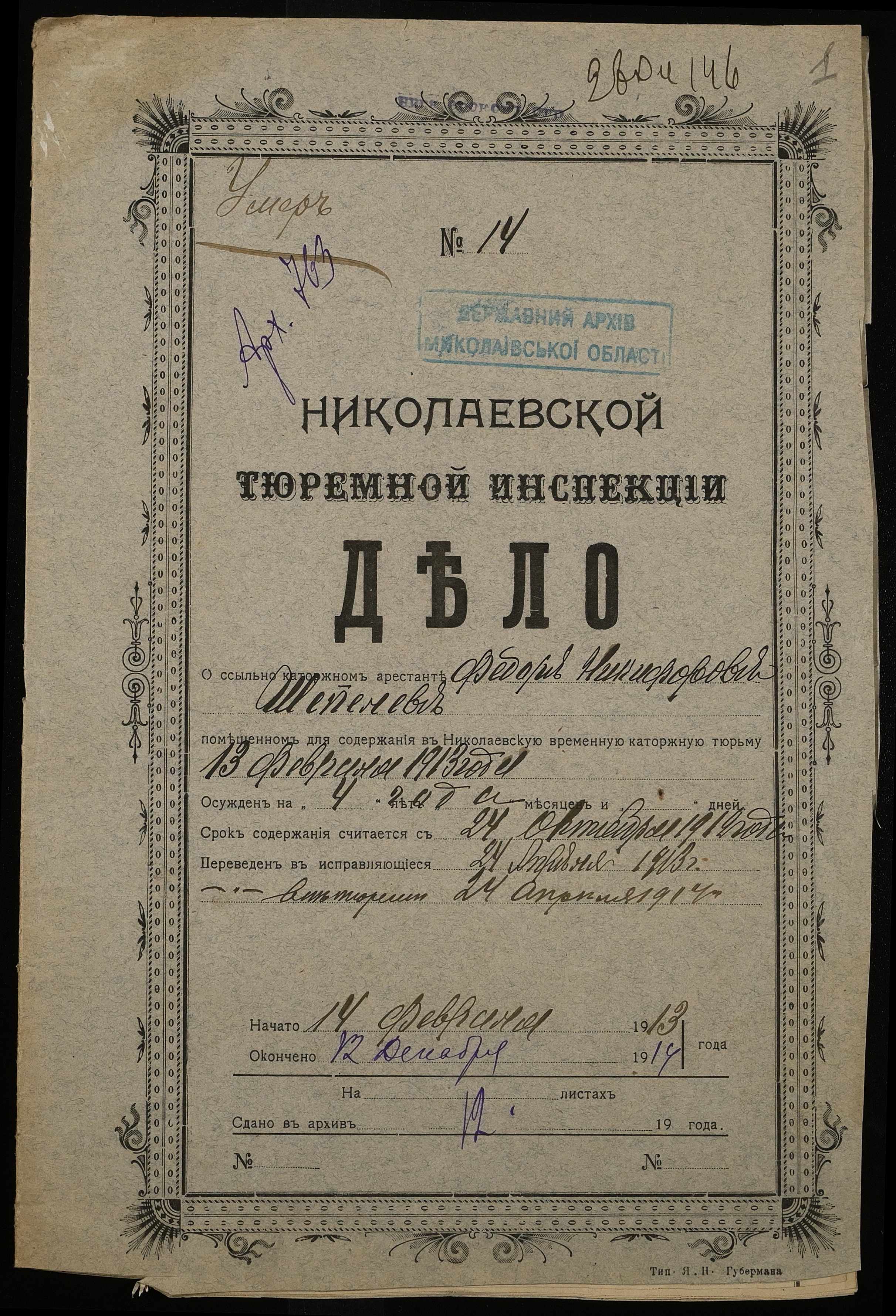 ◦ ◦ Фонд № 251 “Миколаївська тюремна інспекція”