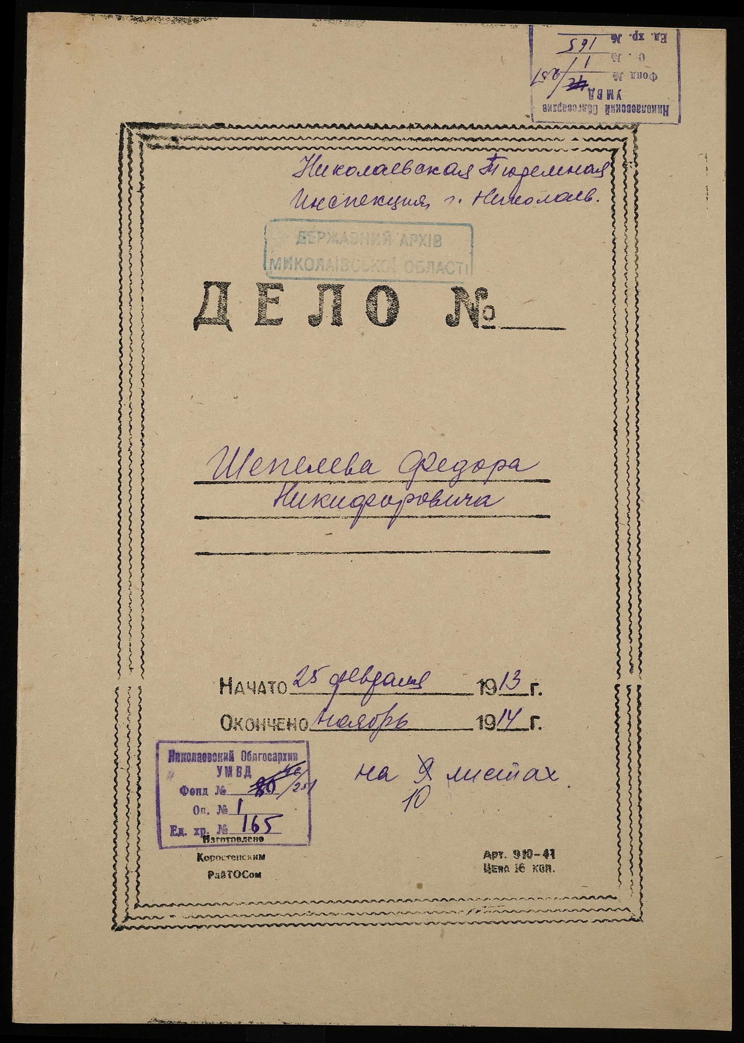• • • • Справа № 165 Шепелєв Ф.Н.