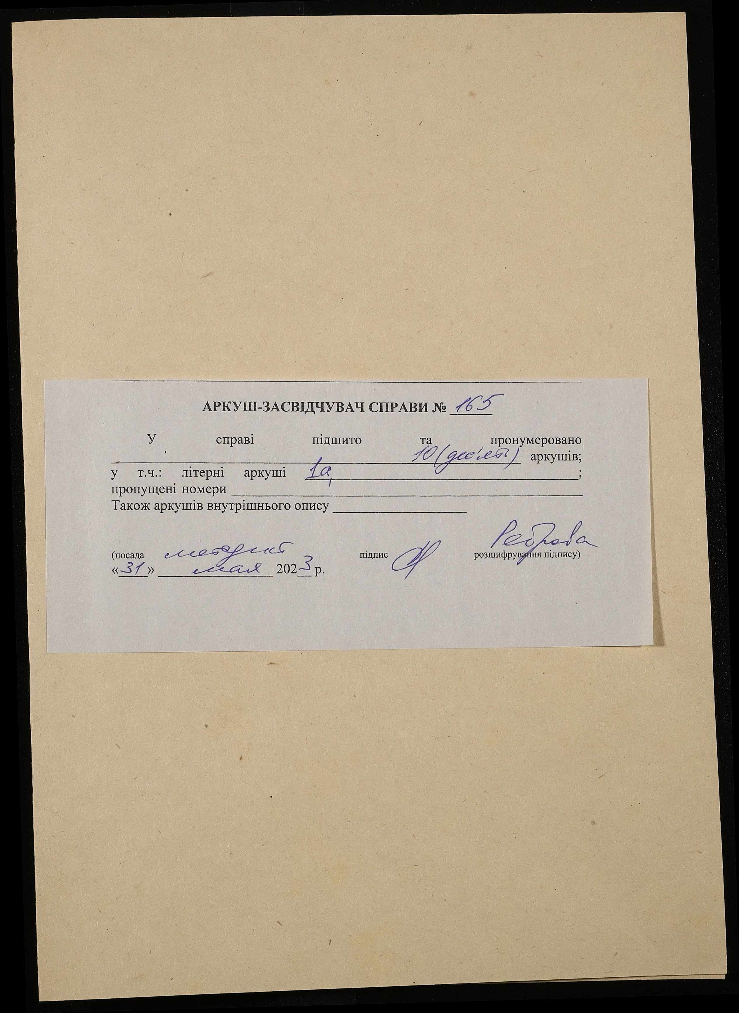 Фонд 251 / Опис 1 / Справа 165