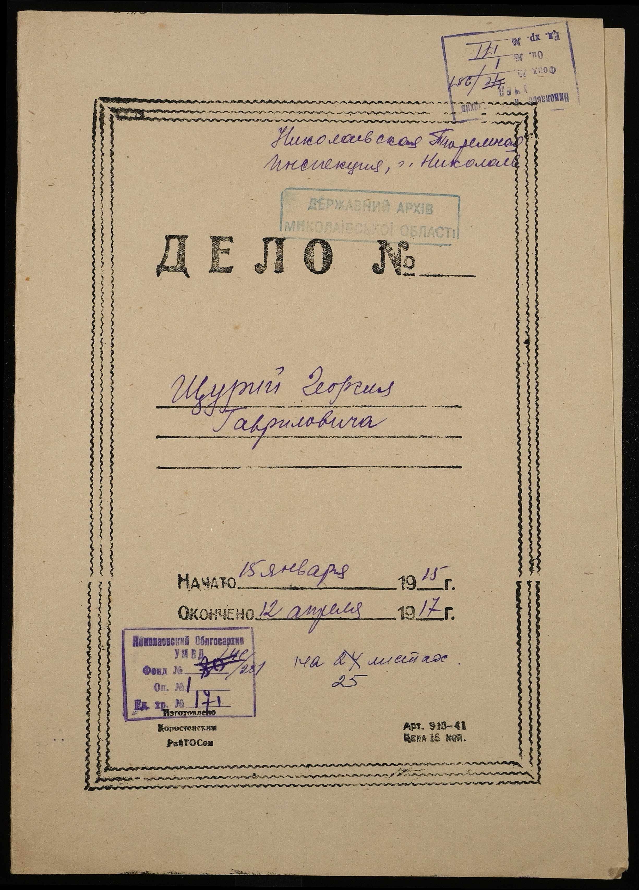 • • • • Справа № 171 Щурий Г.Г.
