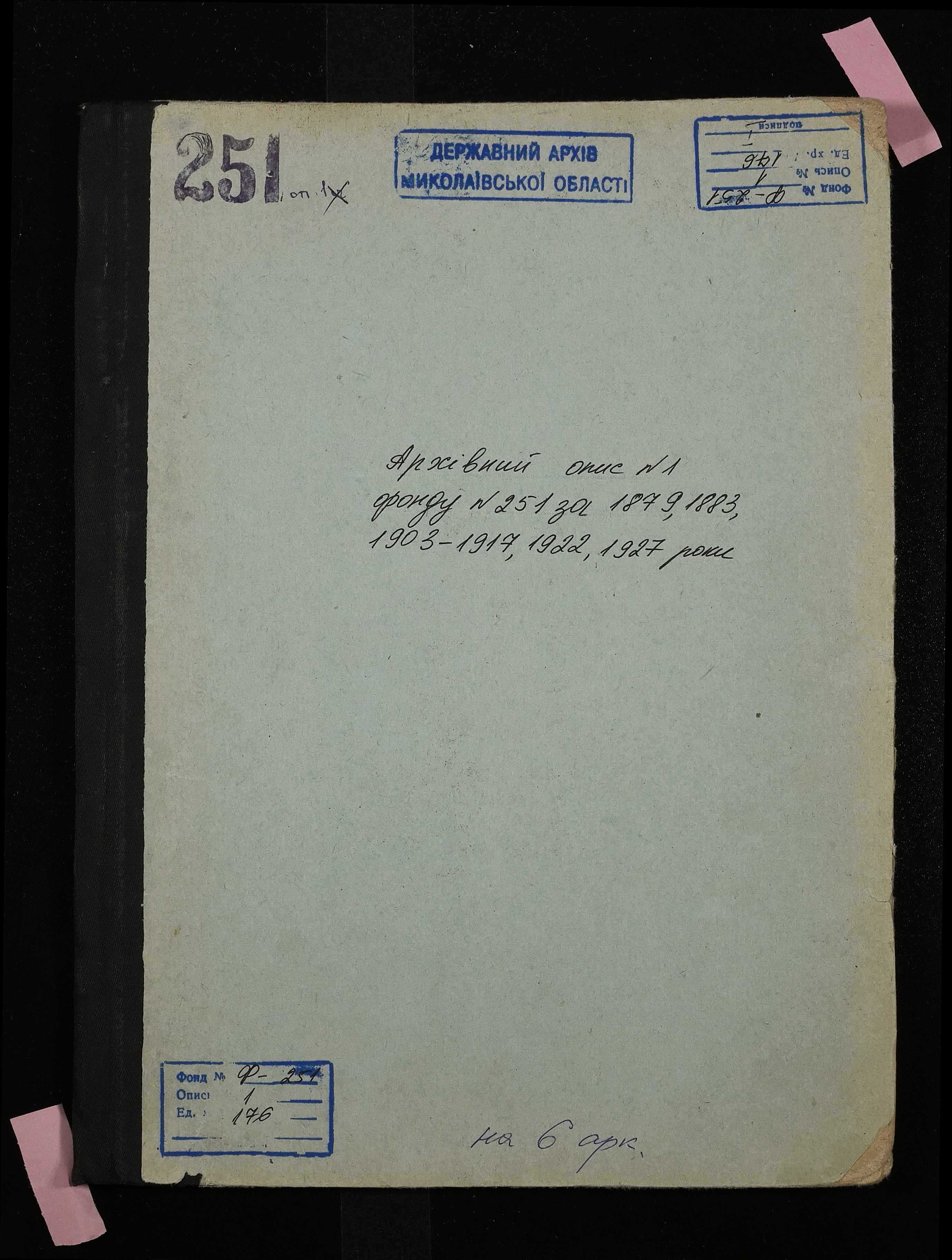 • • • • Справа № 171 Архівний опис № 1 фонду № 251 за 1879, 1883, 1903-1917, 1922, 1927 роки