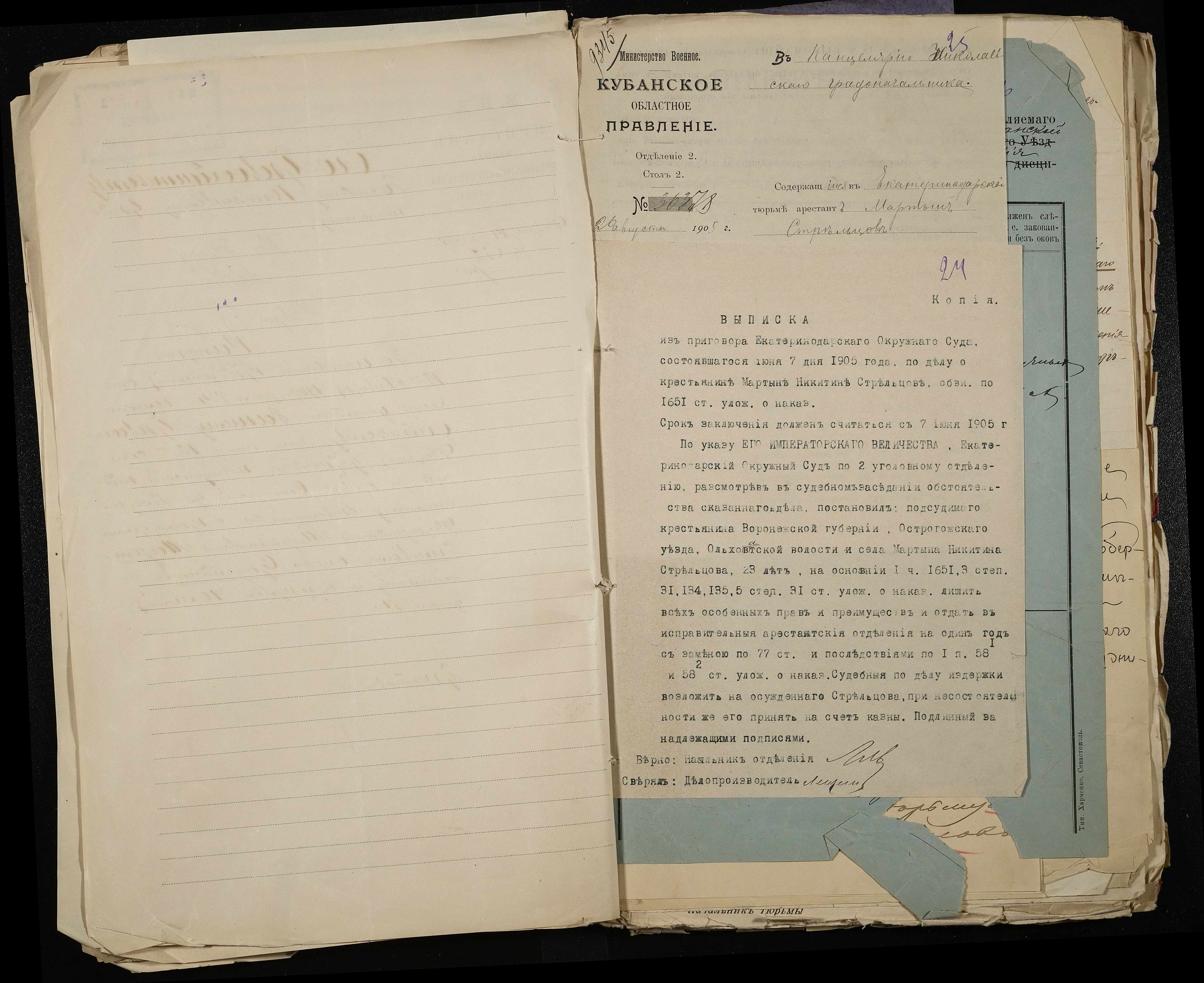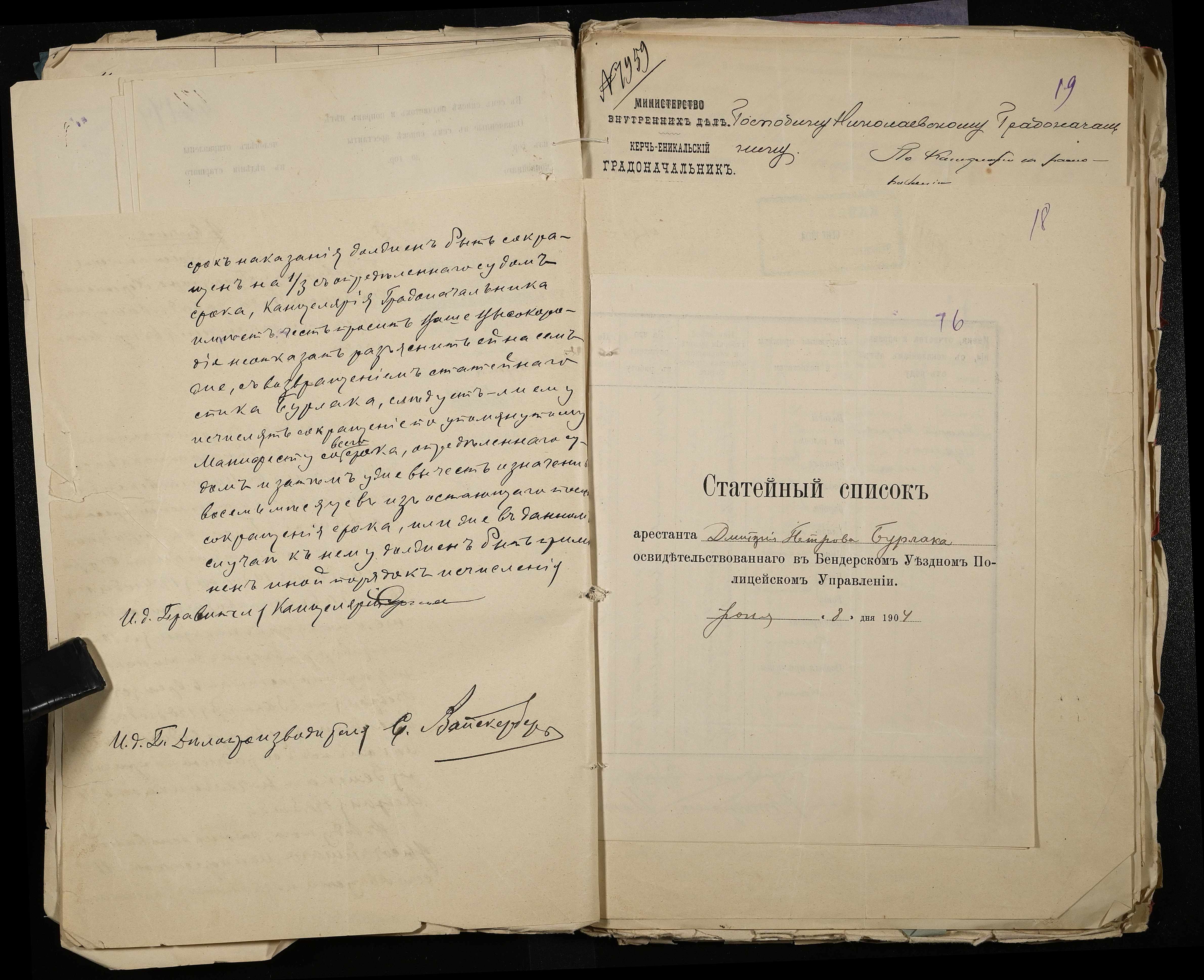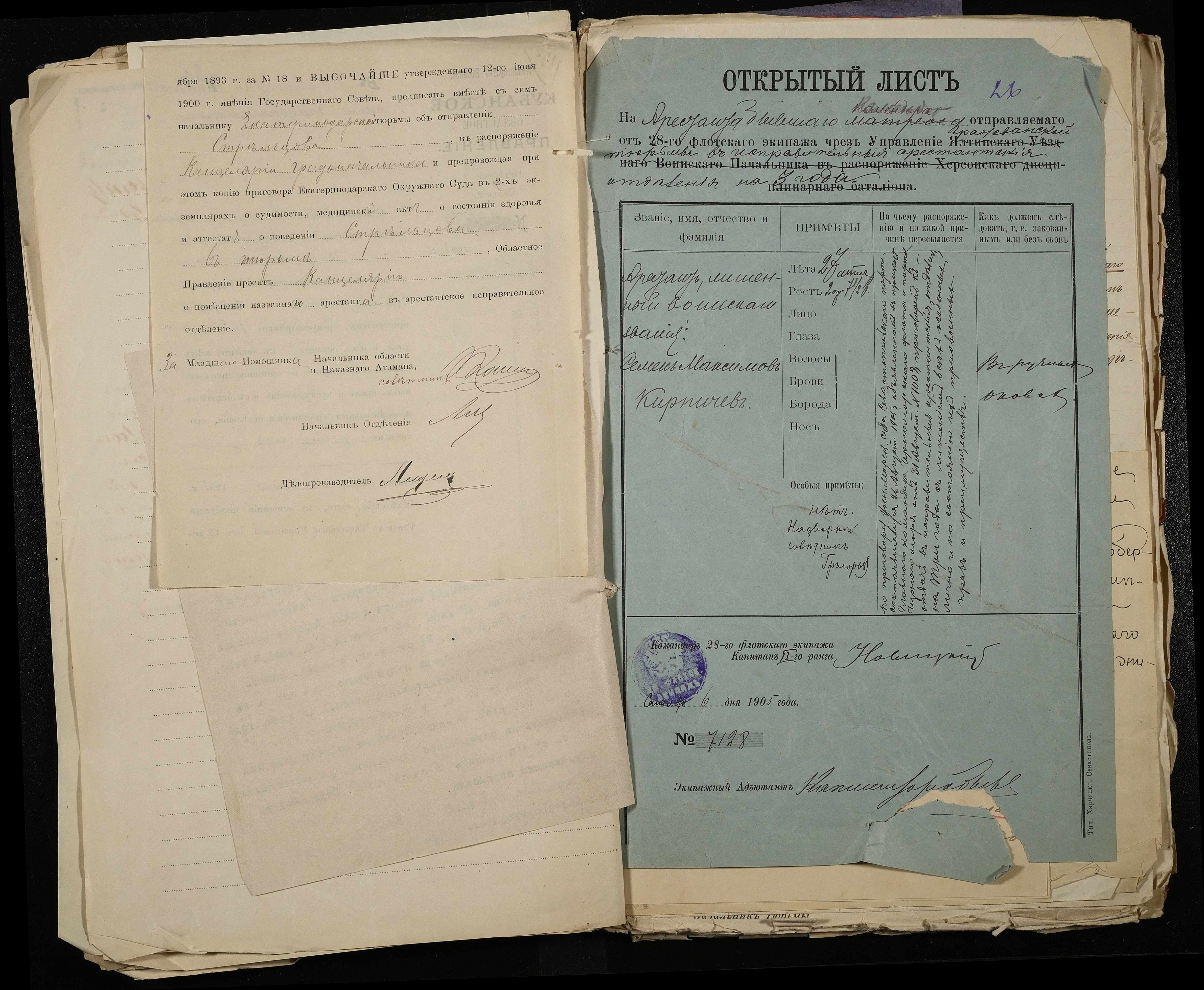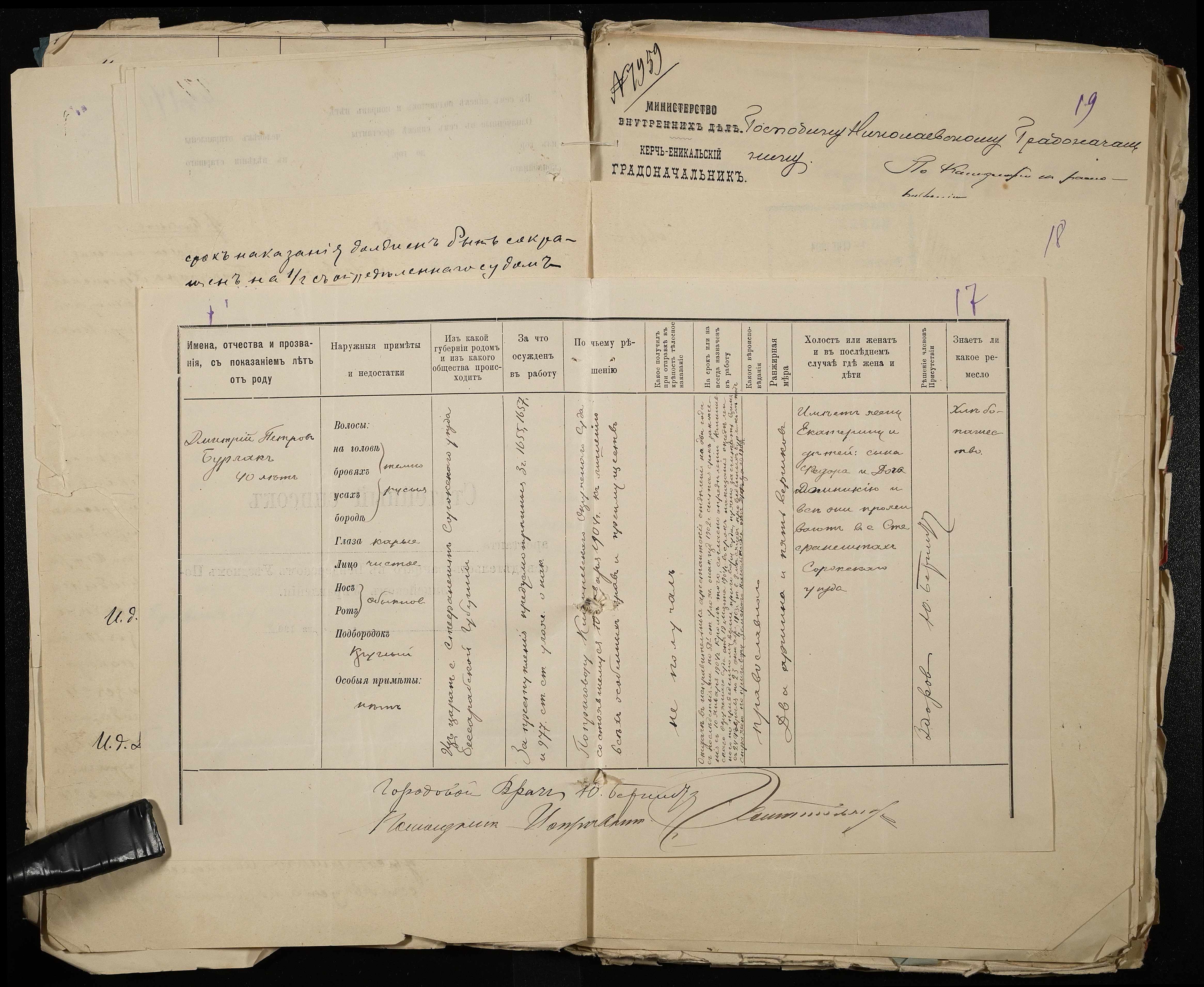 • • • • Справа № 1 “Документи на осіб, які відбували ув’язнення в миколаївських виправних закладах (відомості, листи приблизного розрахунку строку каторжних робіт, відкриті та статистичні листи, іменні списки, витяги із вироків, рапорти, постанови, листування)”