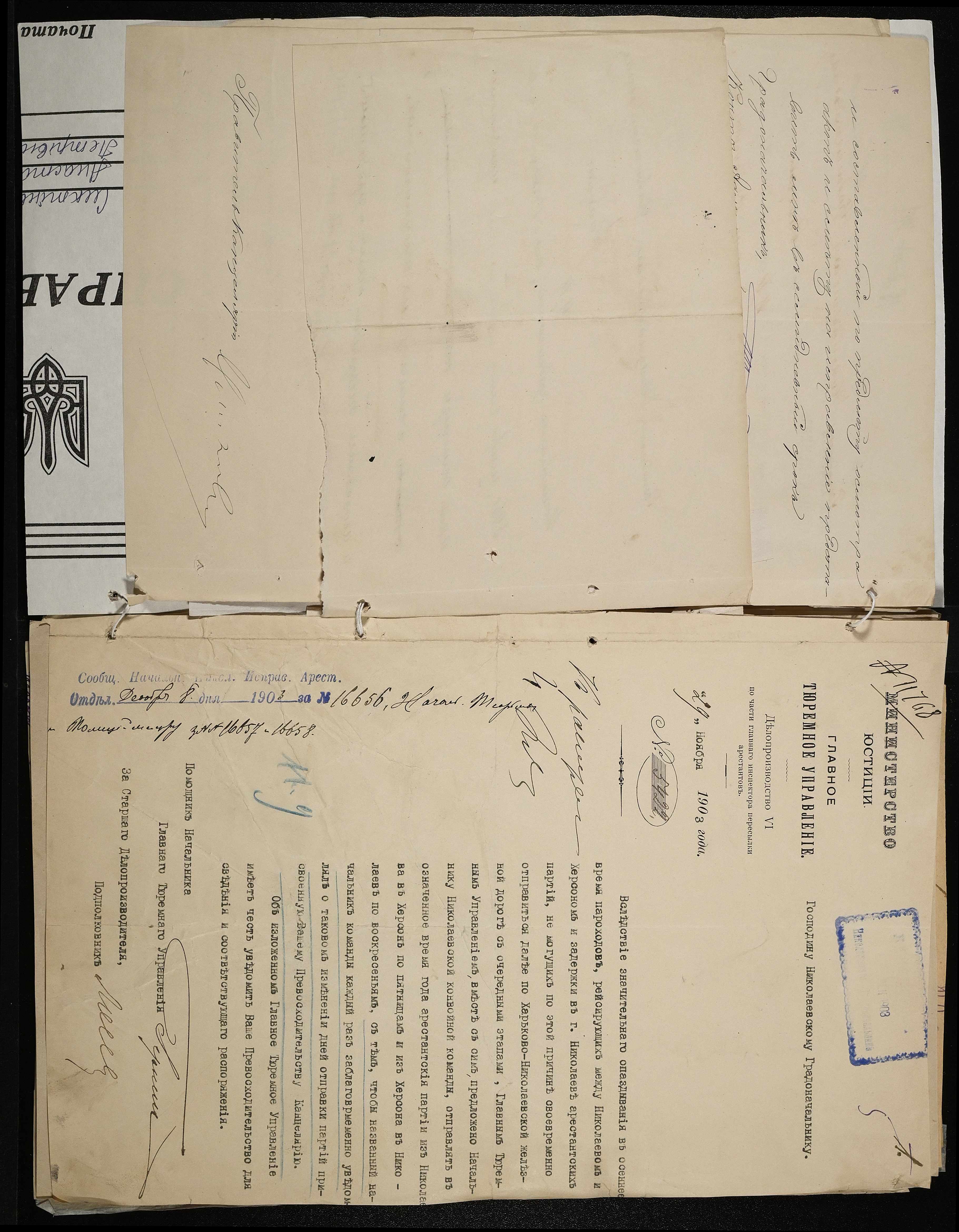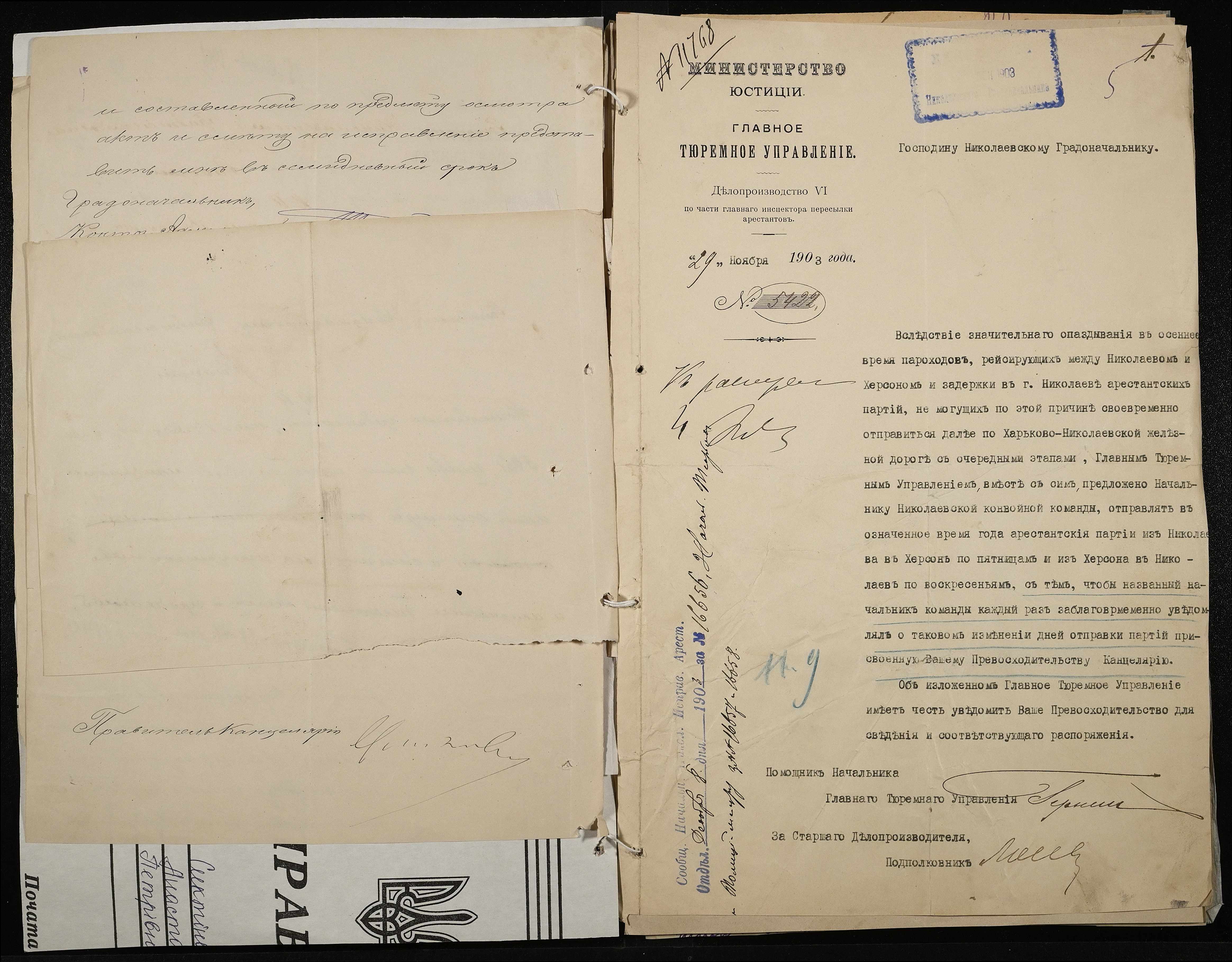 • • • • Справа № 5 Листування з Головним тюремним управлінням, Миколаївським градоначальником, начальниками миколаївських виправних закладів про порядок утримання політичних в’язнів в губернських, повітових і пересильних тюрмах, запобіжні заходи щодо затримки пересилки партій в’язнів, відпуск коштів на утримання хворих арештантів, порядок надання звітності та інш.