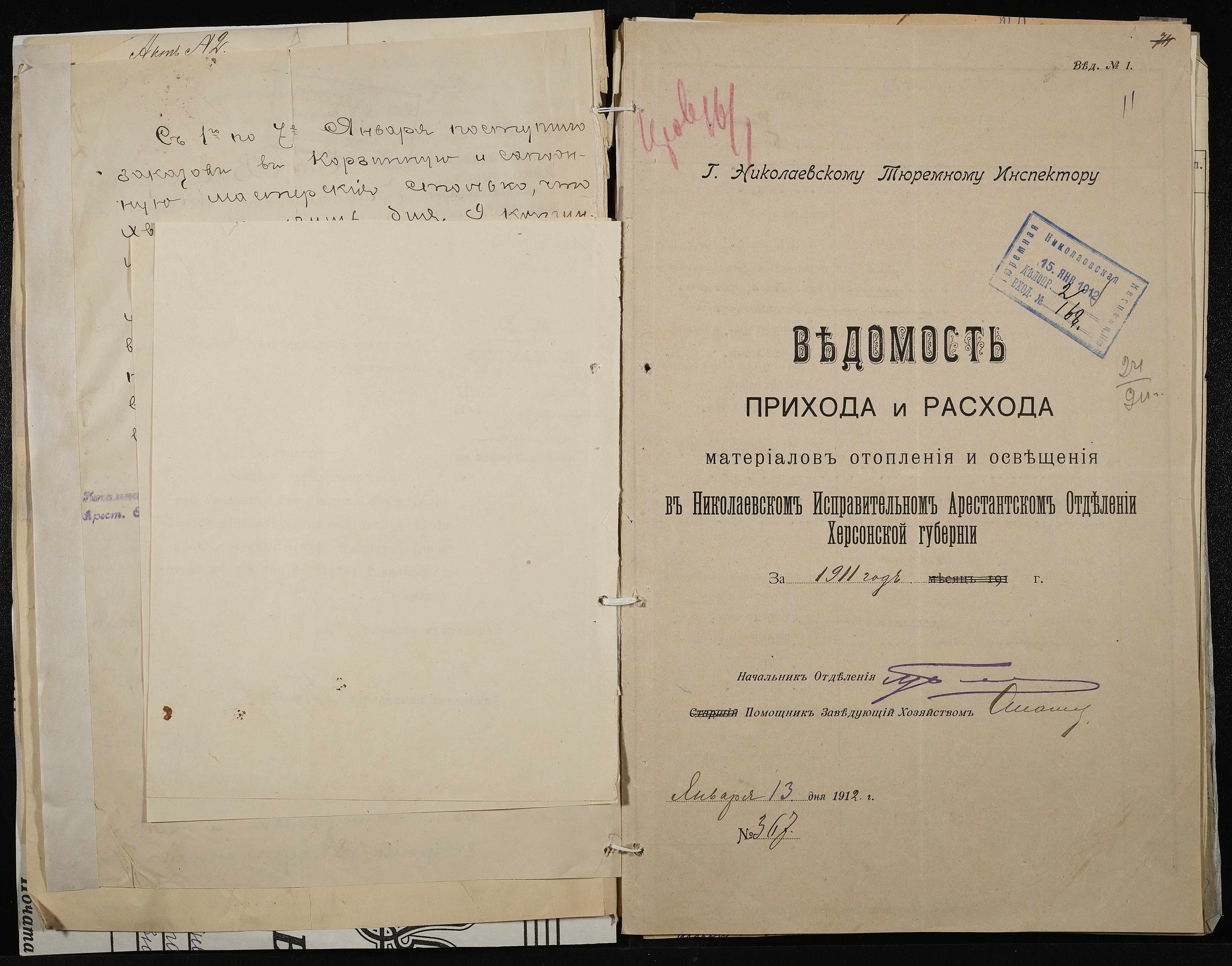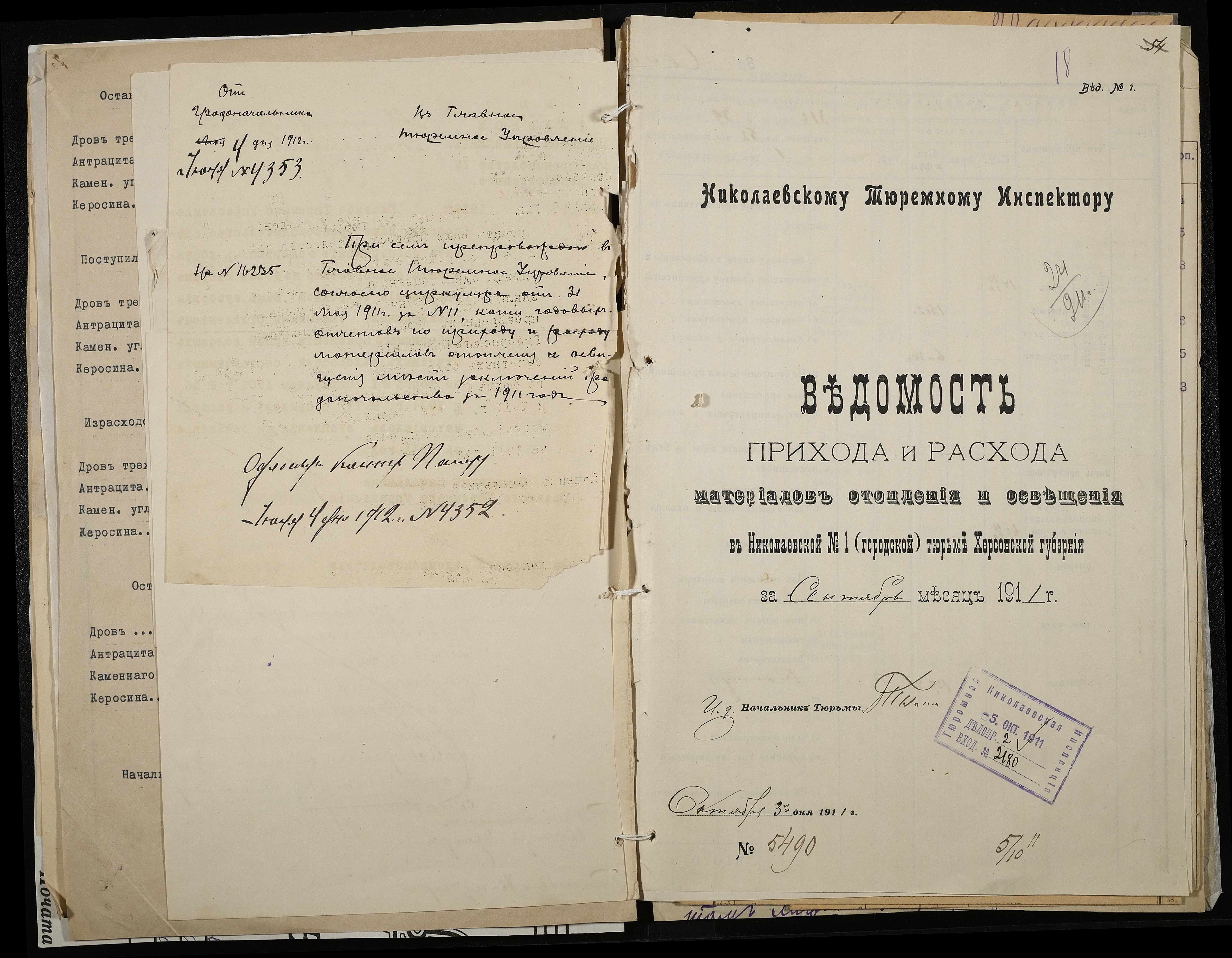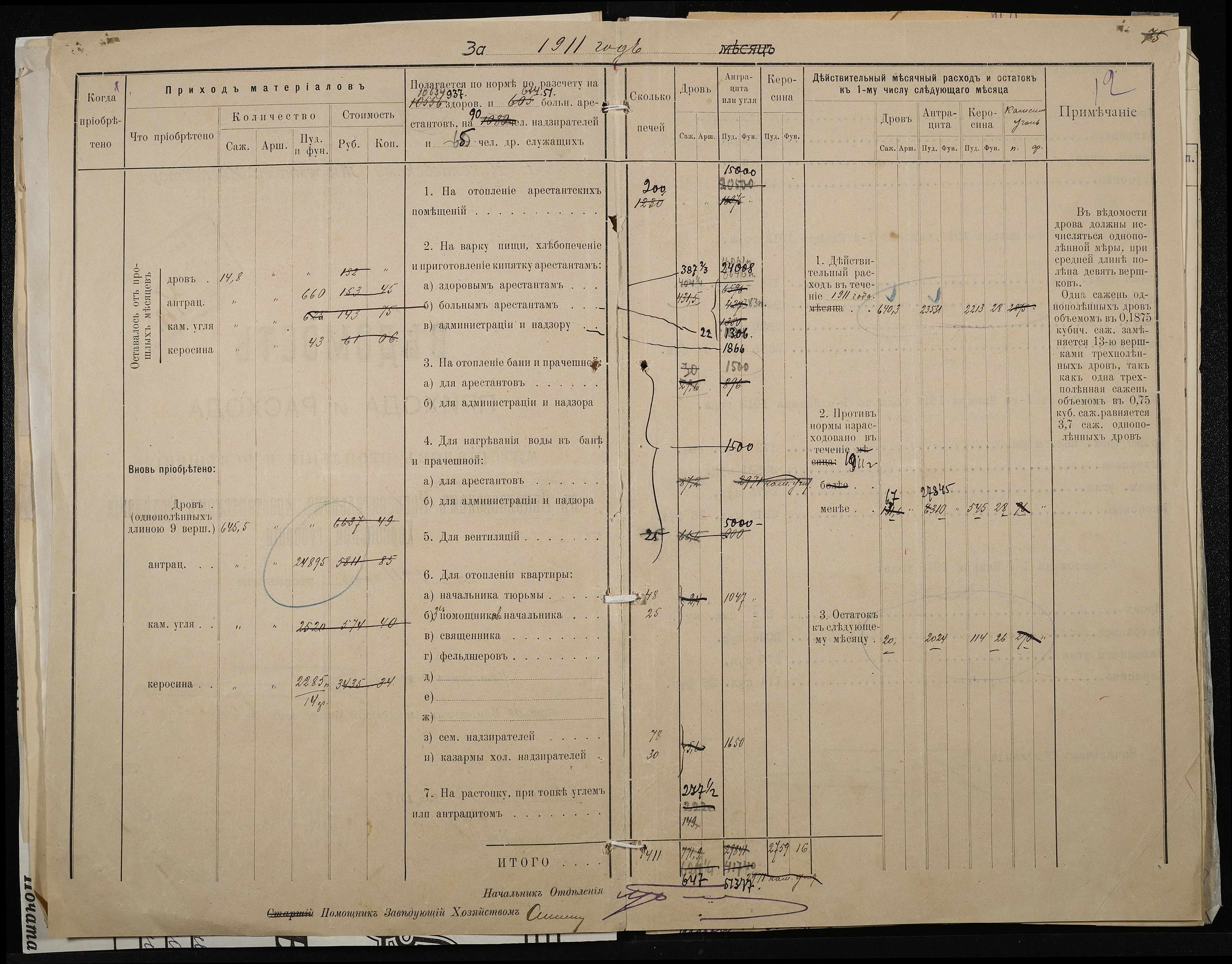 Відомості про витрати на опалення і освітлення місць ув’язнення за 1911 рік