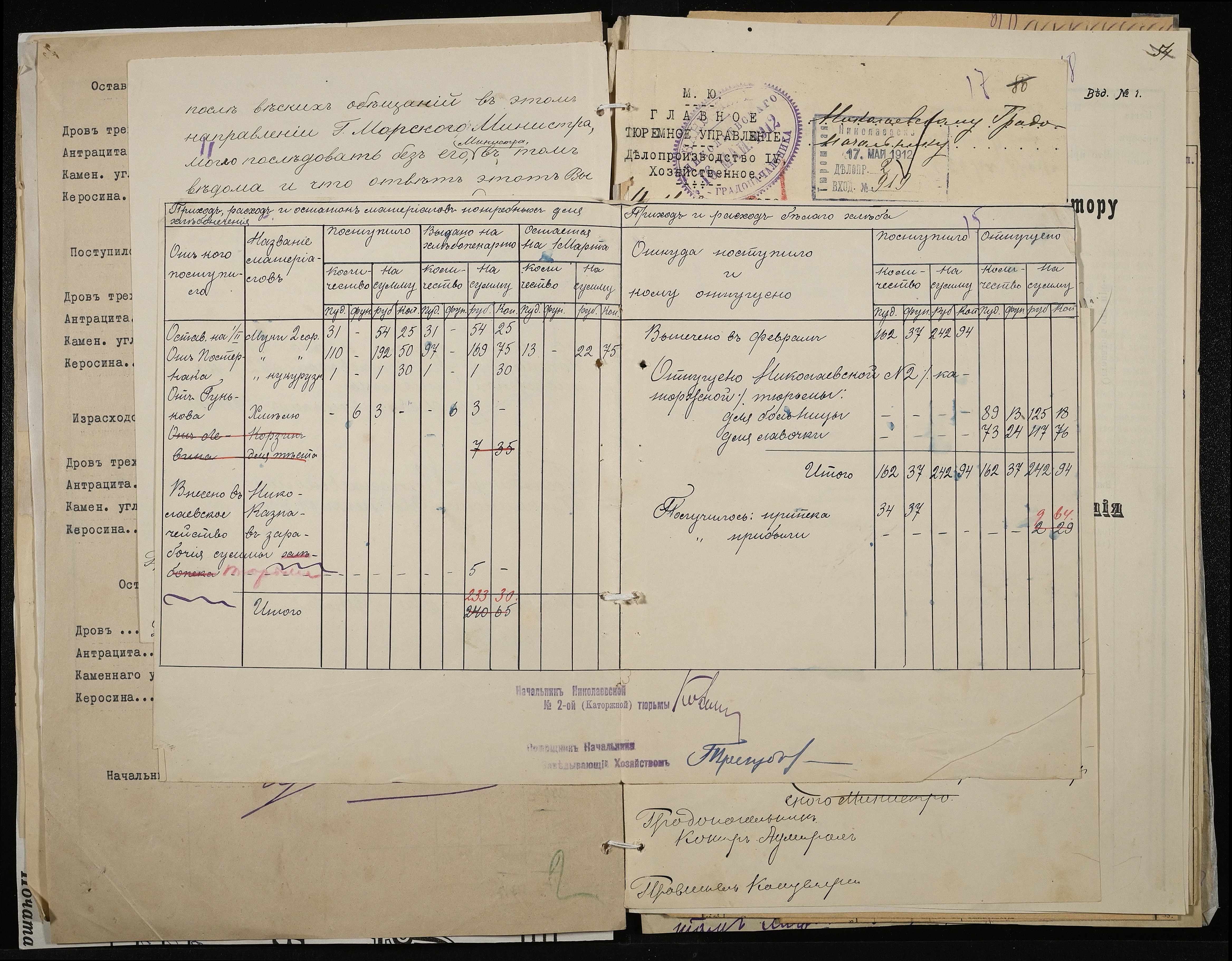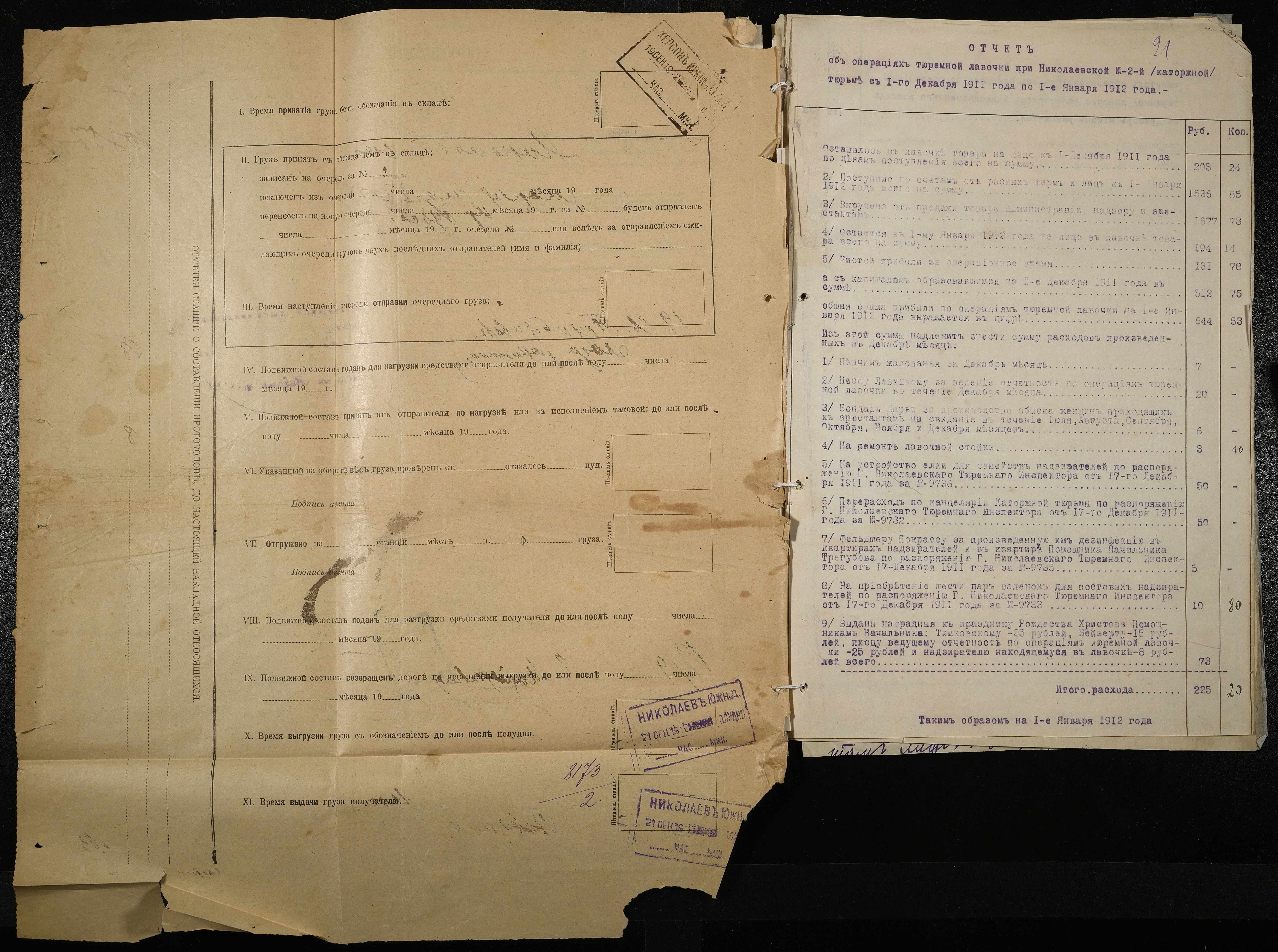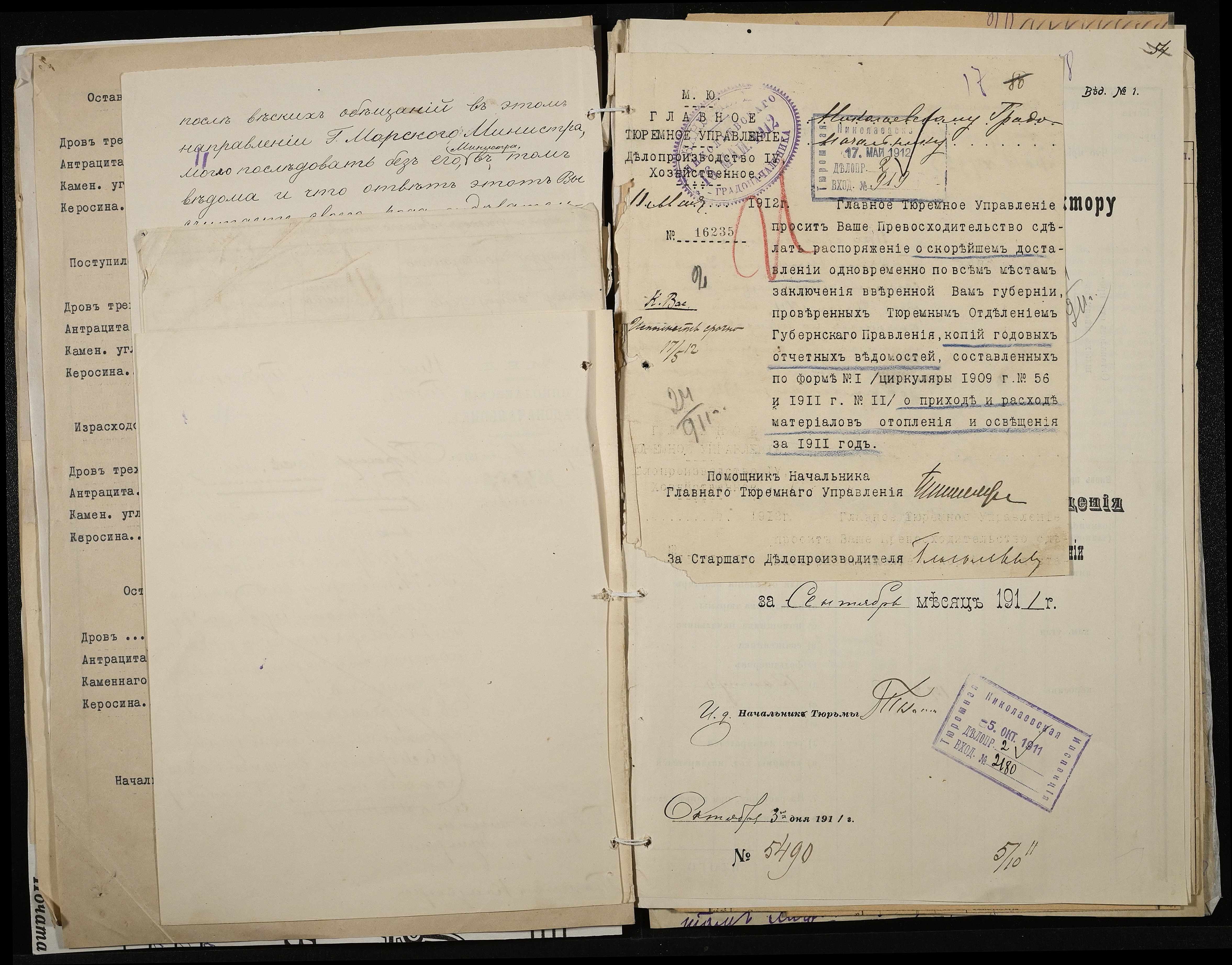 Відомості про витрати на опалення і освітлення місць ув’язнення за 1911 рік