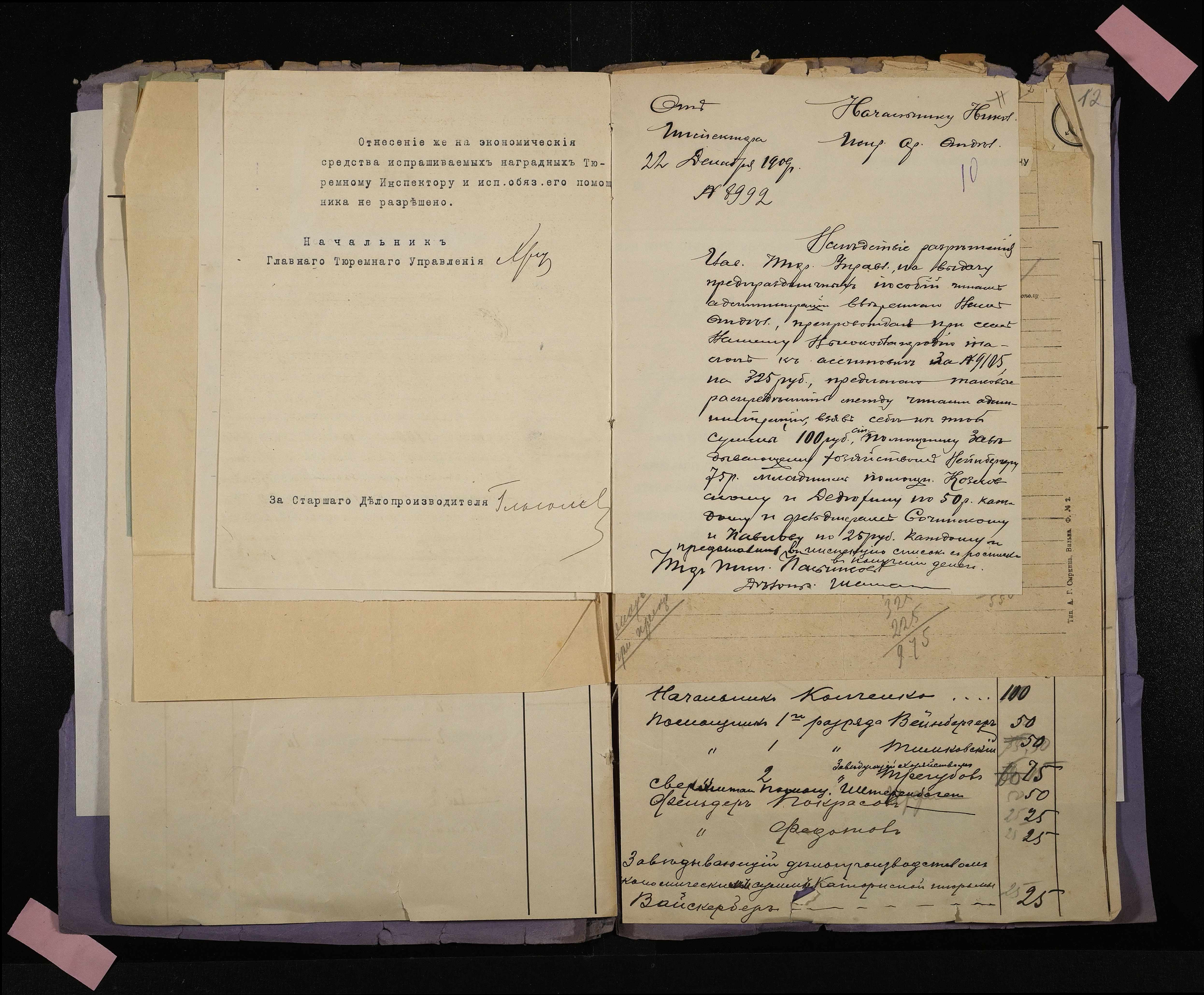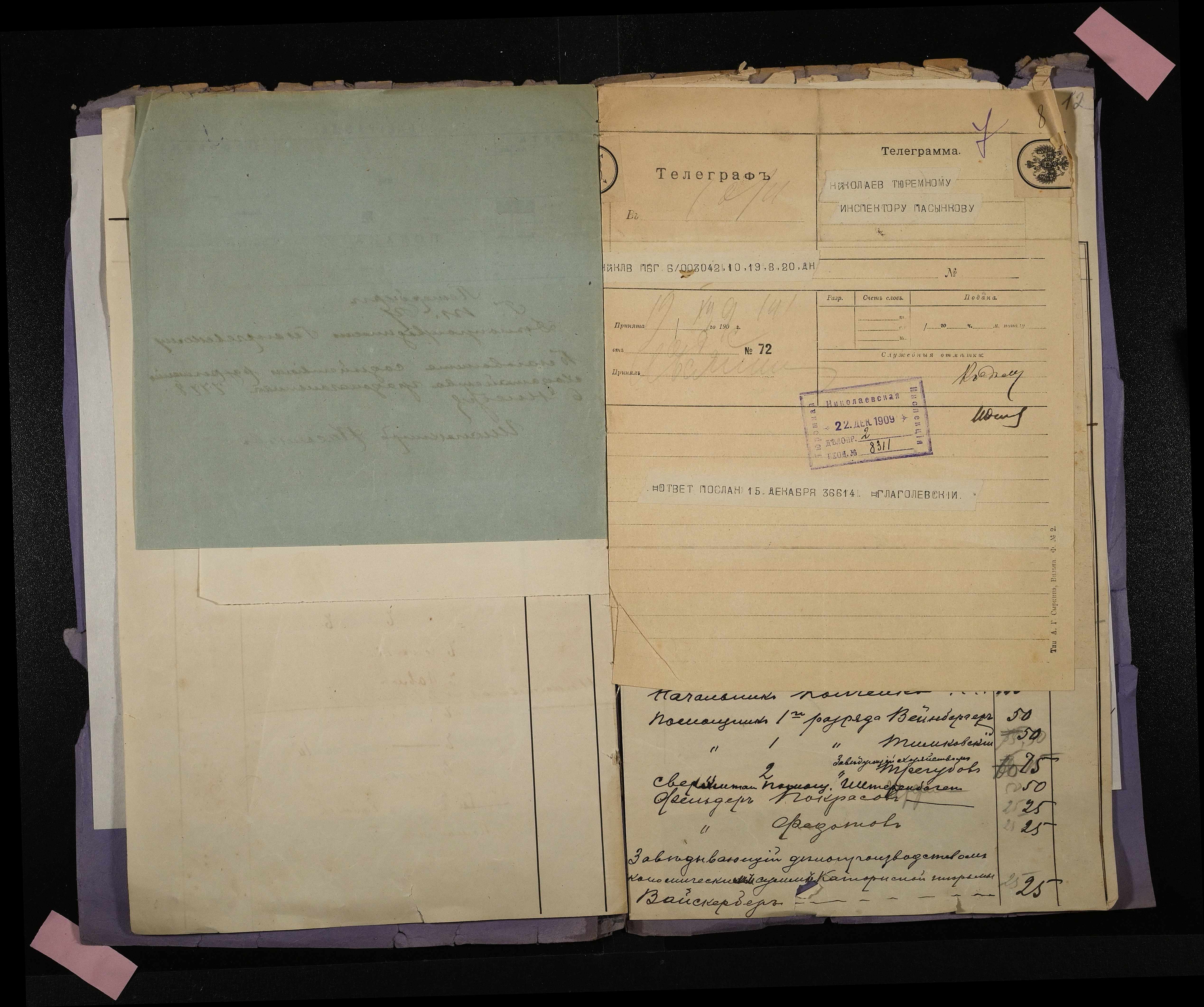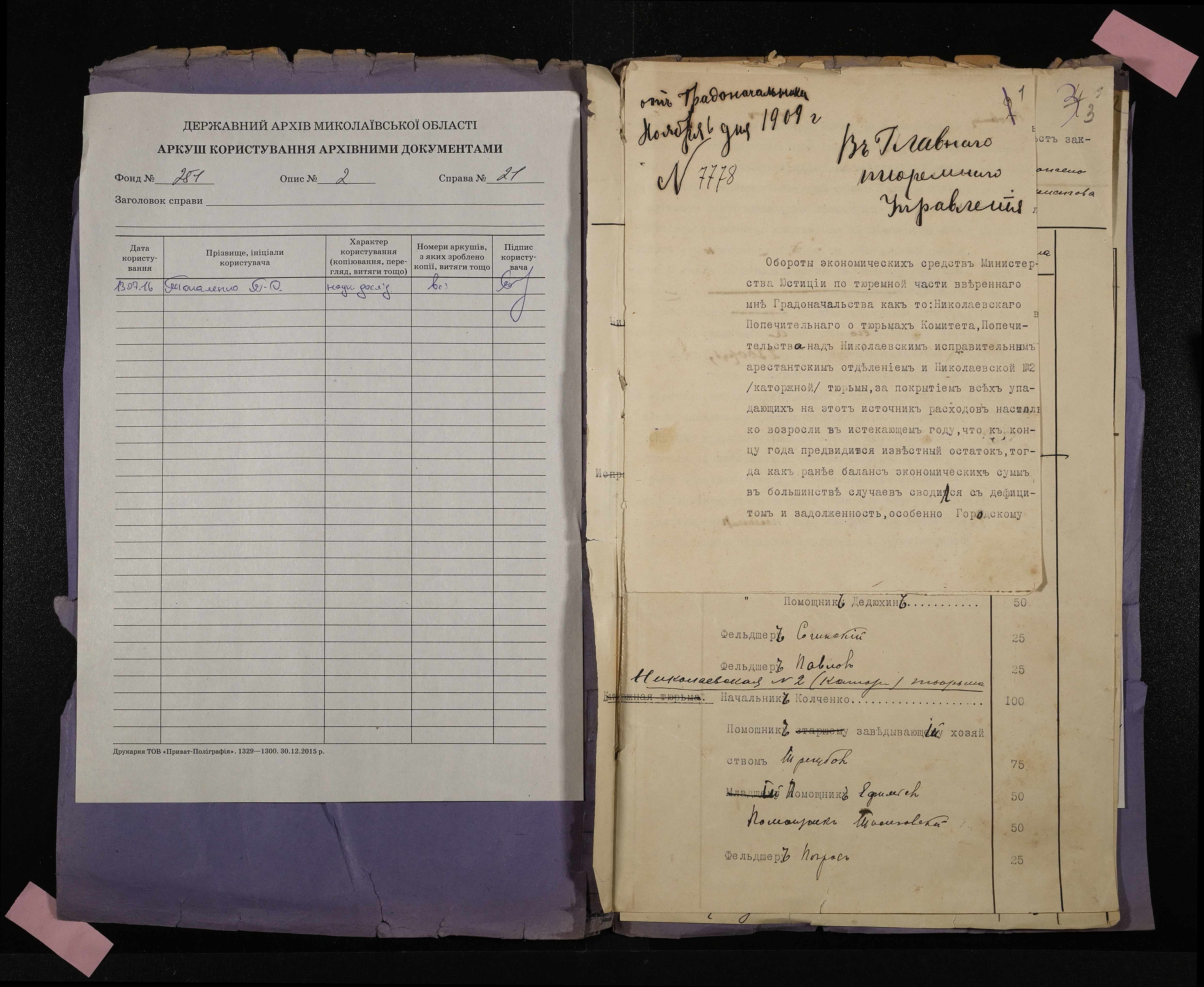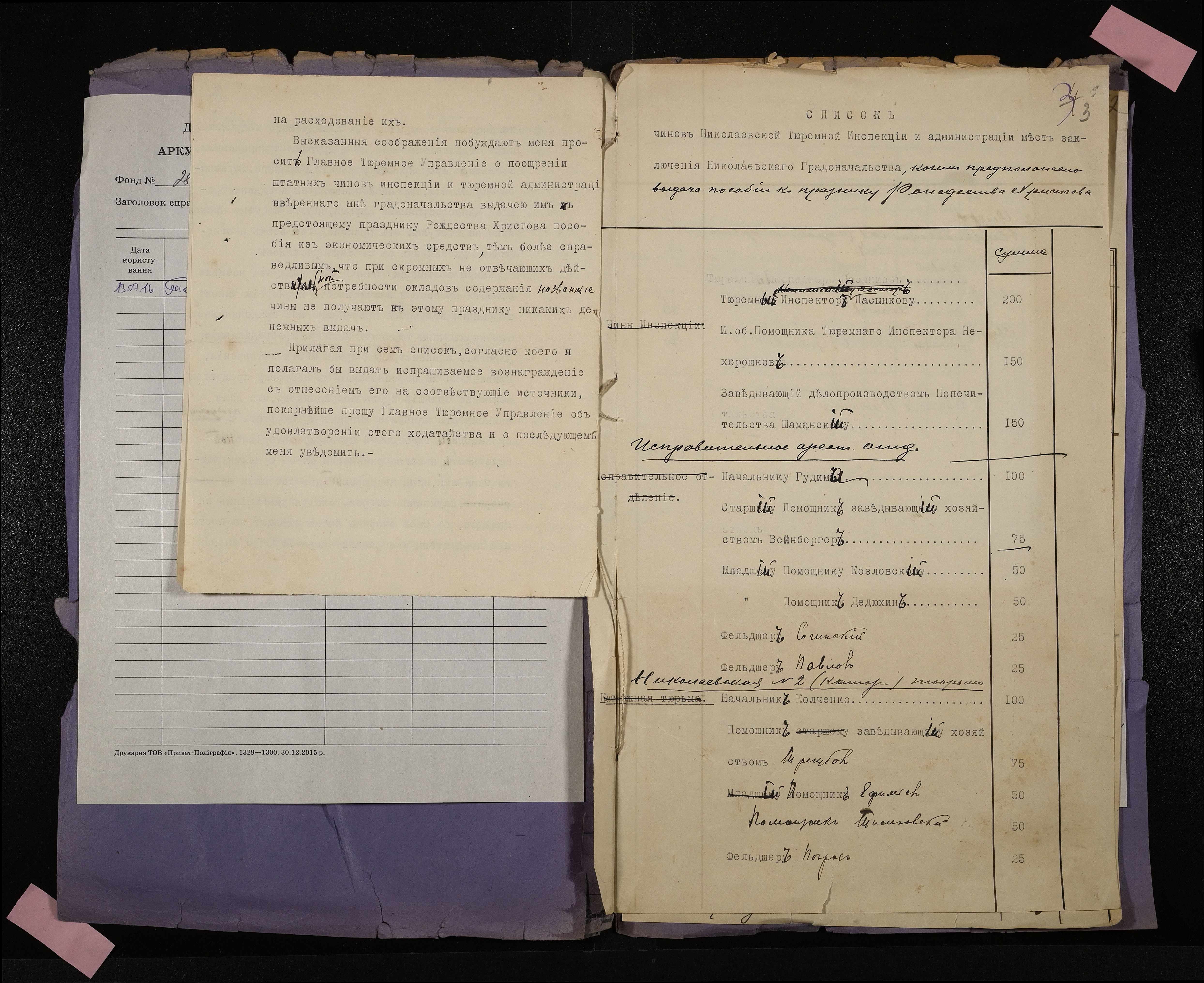 • • • • Справа № 21 Документи про надання службовцям Миколаївської тюремної інспекції і адміністрації місць ув’язнення допомоги до свята Різдва Христова (відомості, списки, телеграми, листування)