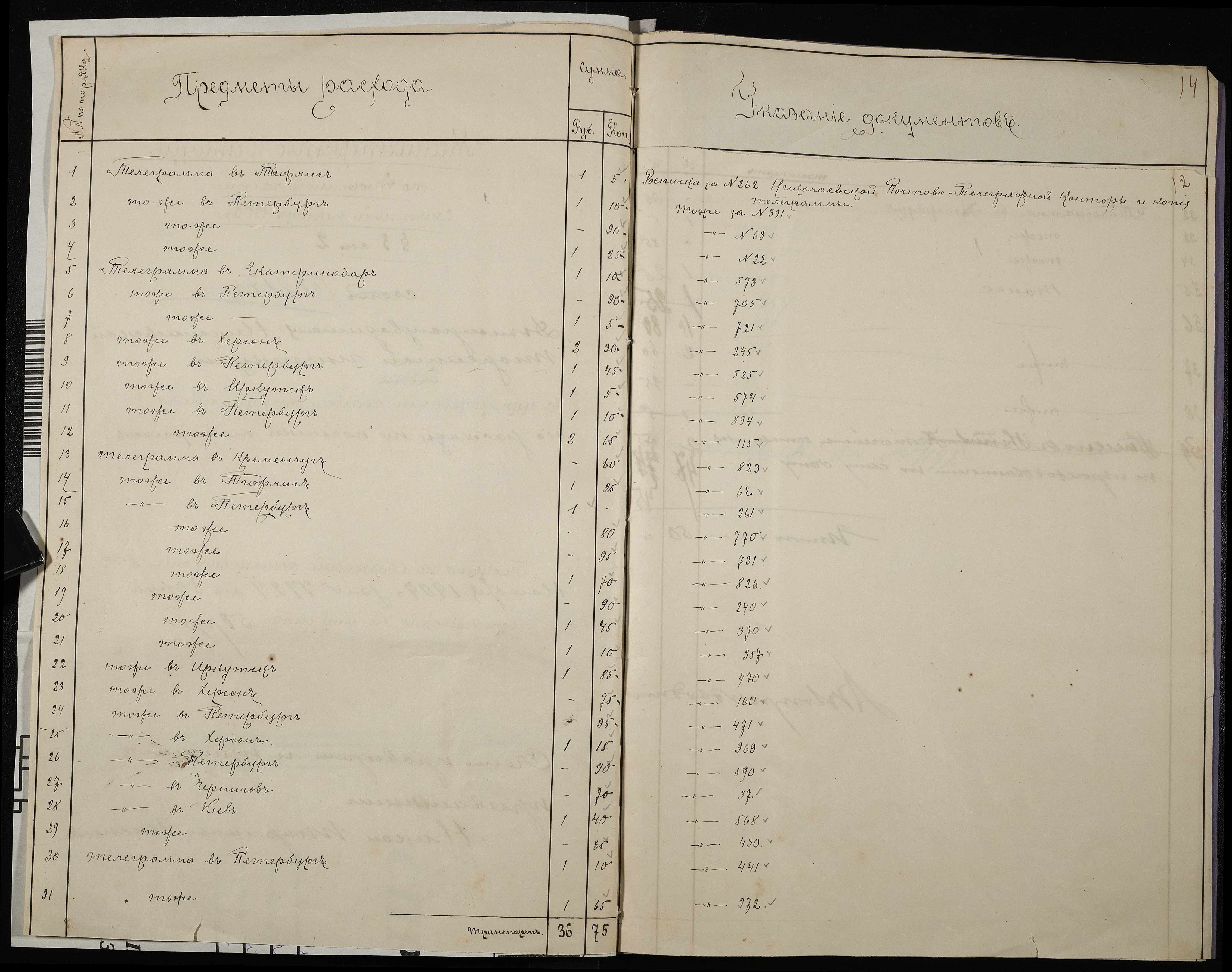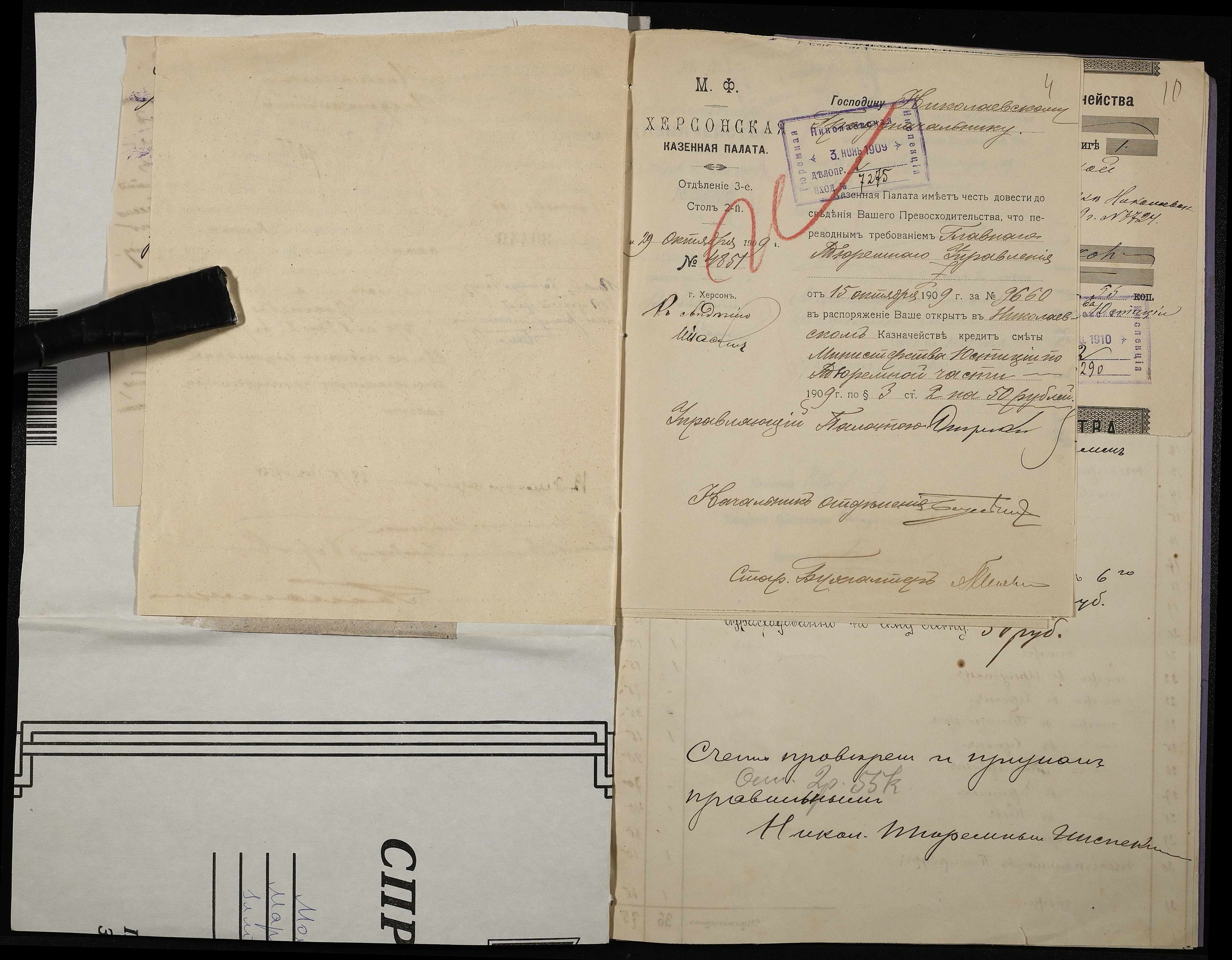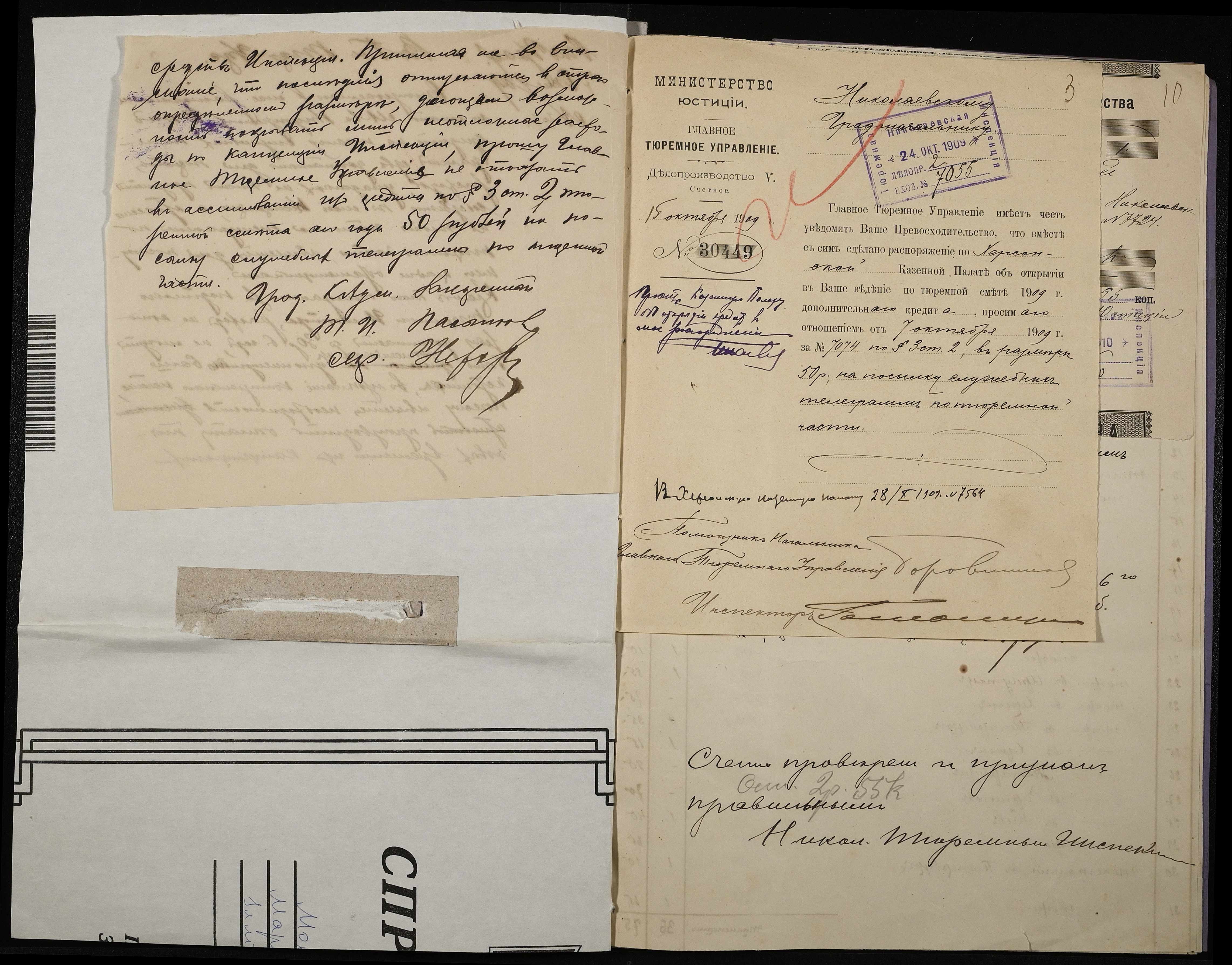 • • • • Справа № 25 Листування з Головним тюремним управлінням, Херсонською казенною палатою, Миколаївським казначейством про витрати на телеграми; рахунки та квитанції