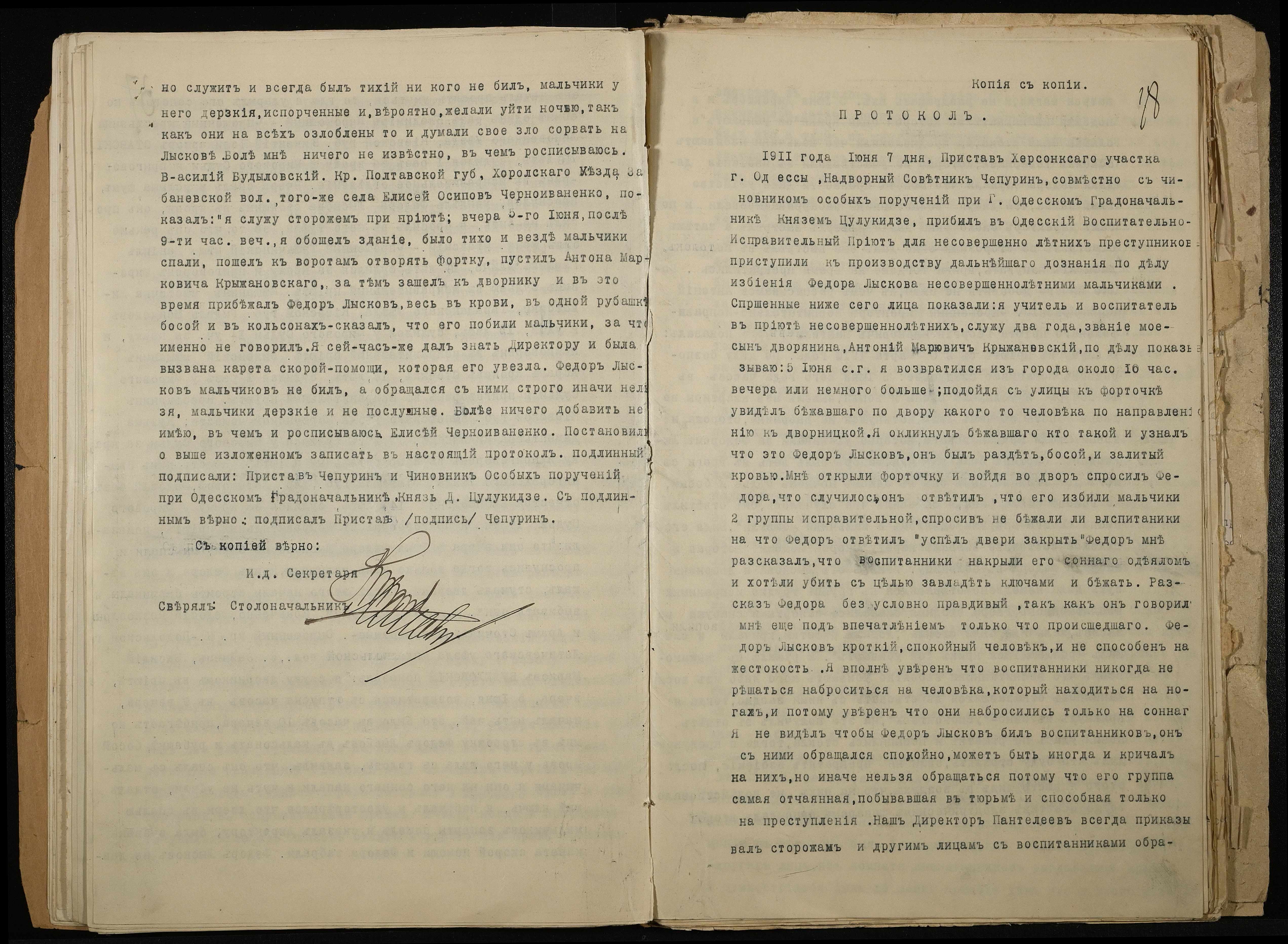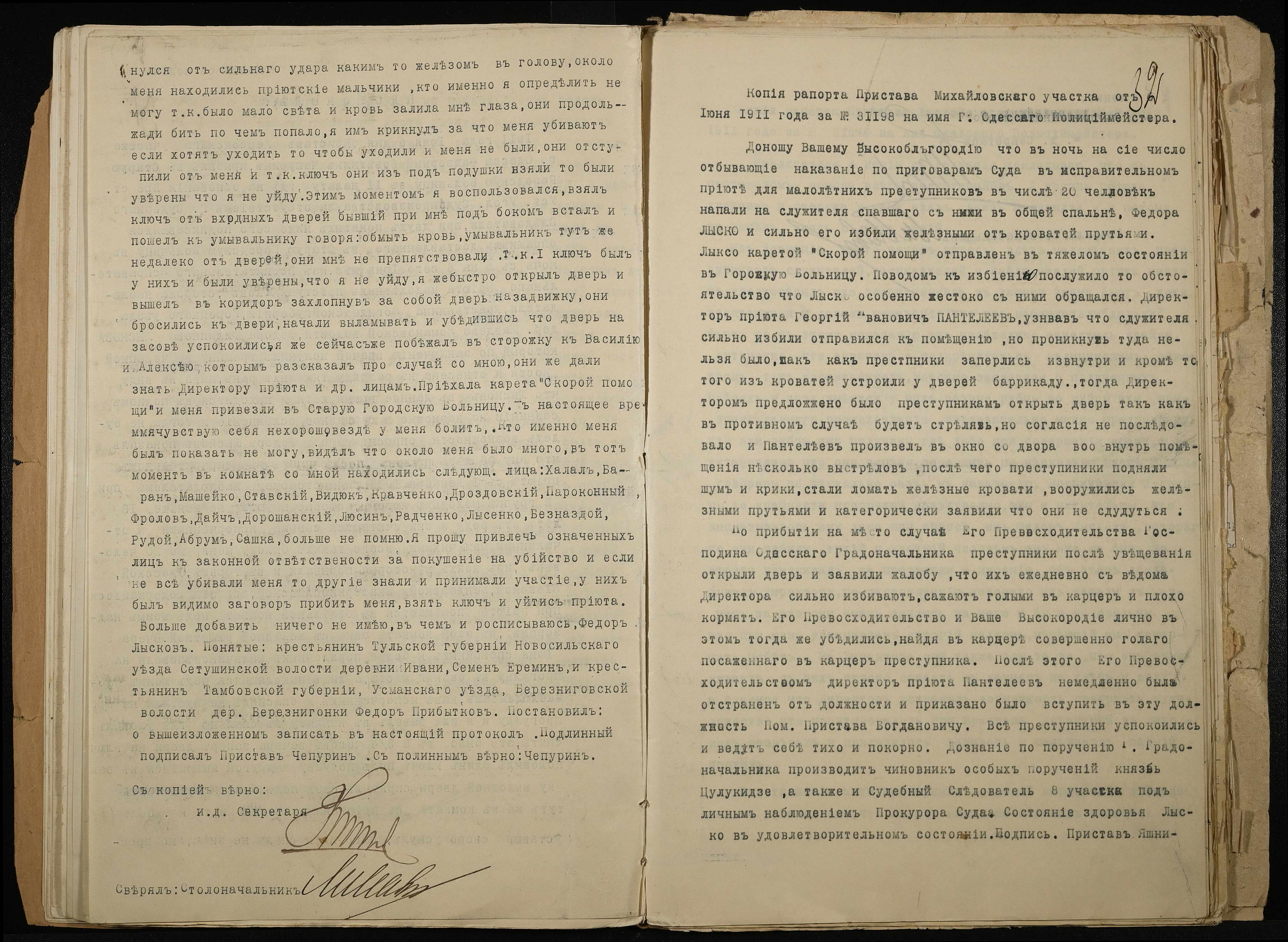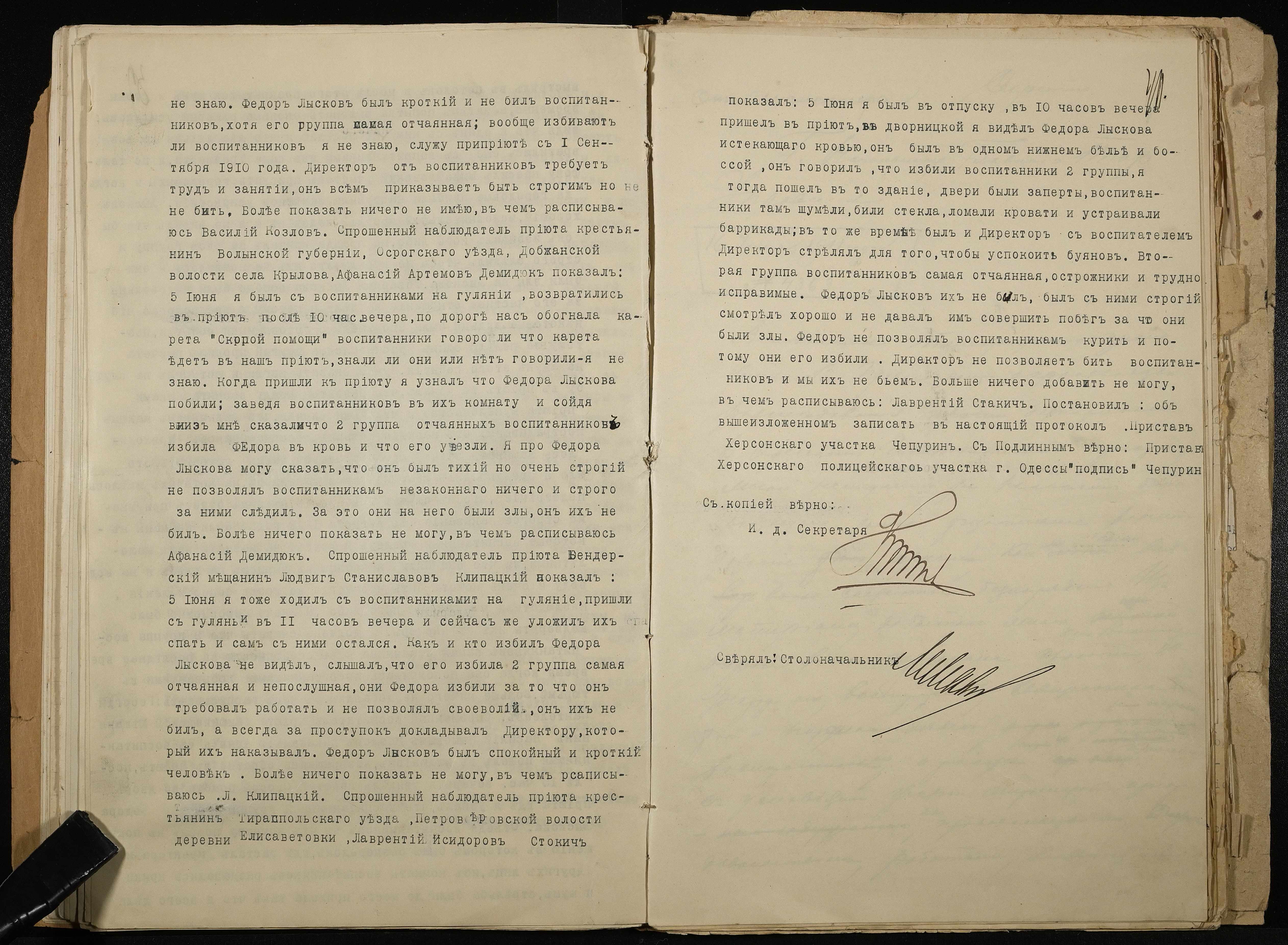 • • • • Справа № 42 Документи про розслідування причин порушення дисципліни та безладу в Одеському виховально-виправному притулку для підлітків (протоколи, рапорти, акти, телеграми, листування)