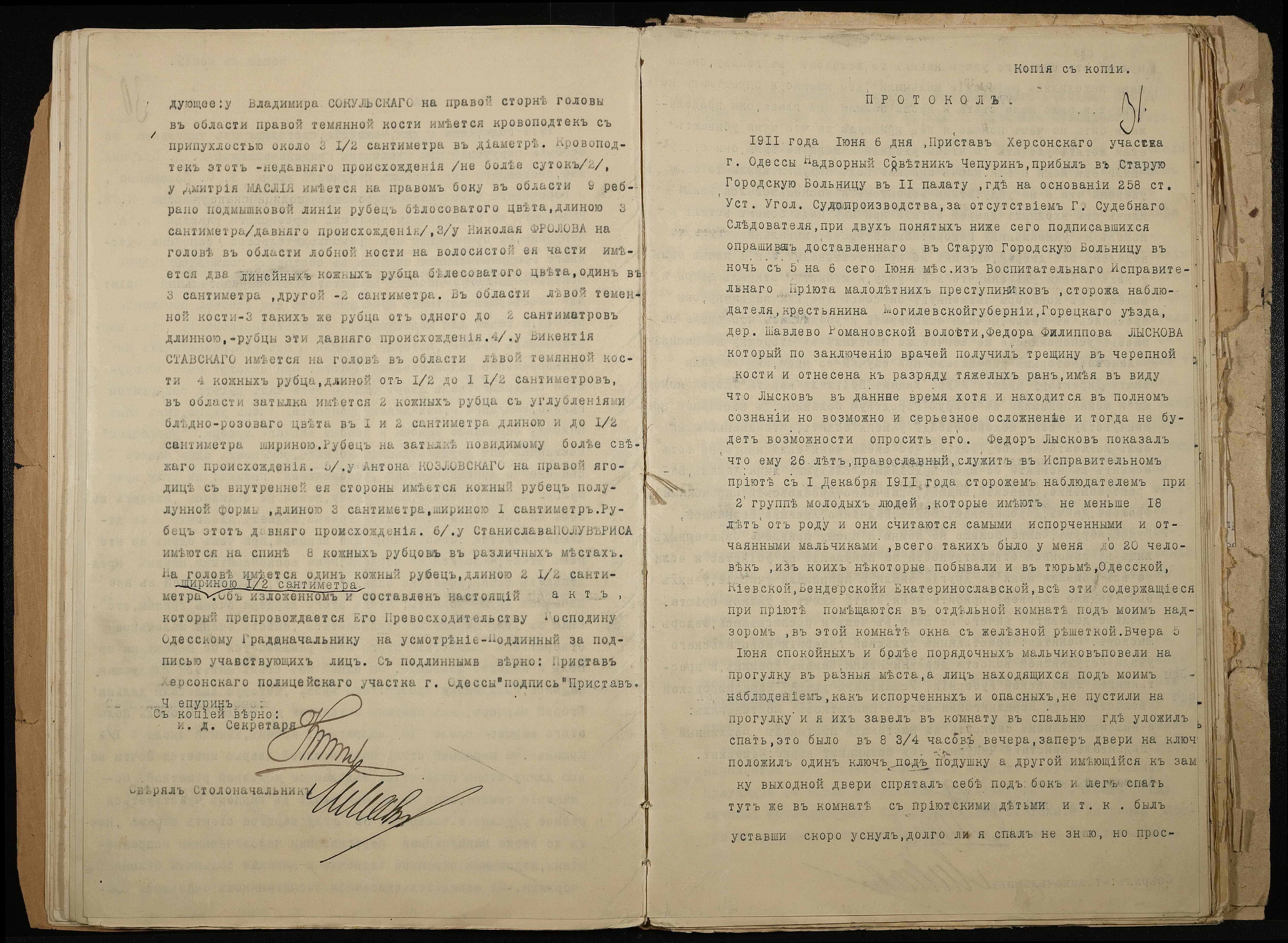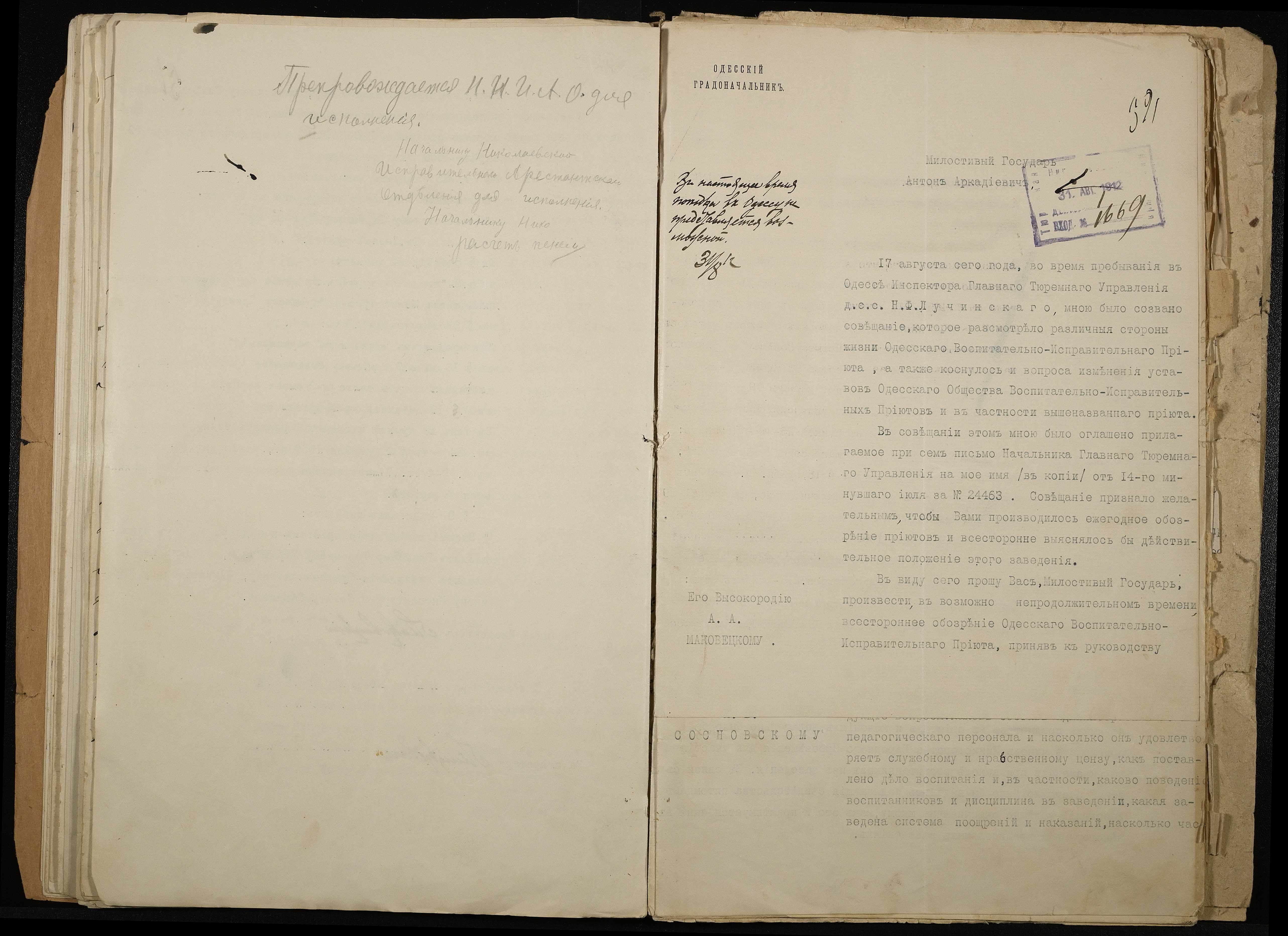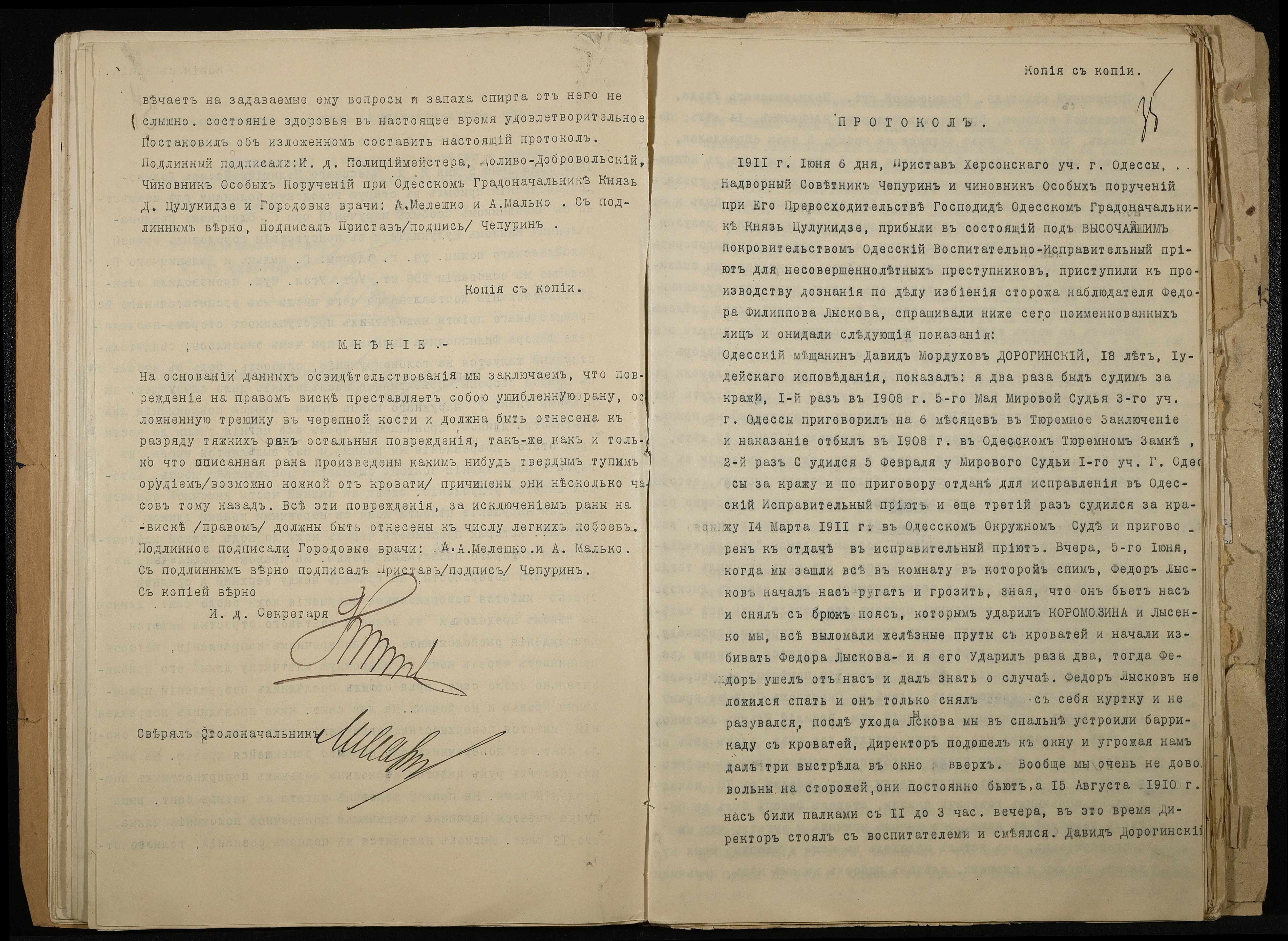 • • • • Справа № 42 Документи про розслідування причин порушення дисципліни та безладу в Одеському виховально-виправному притулку для підлітків (протоколи, рапорти, акти, телеграми, листування)