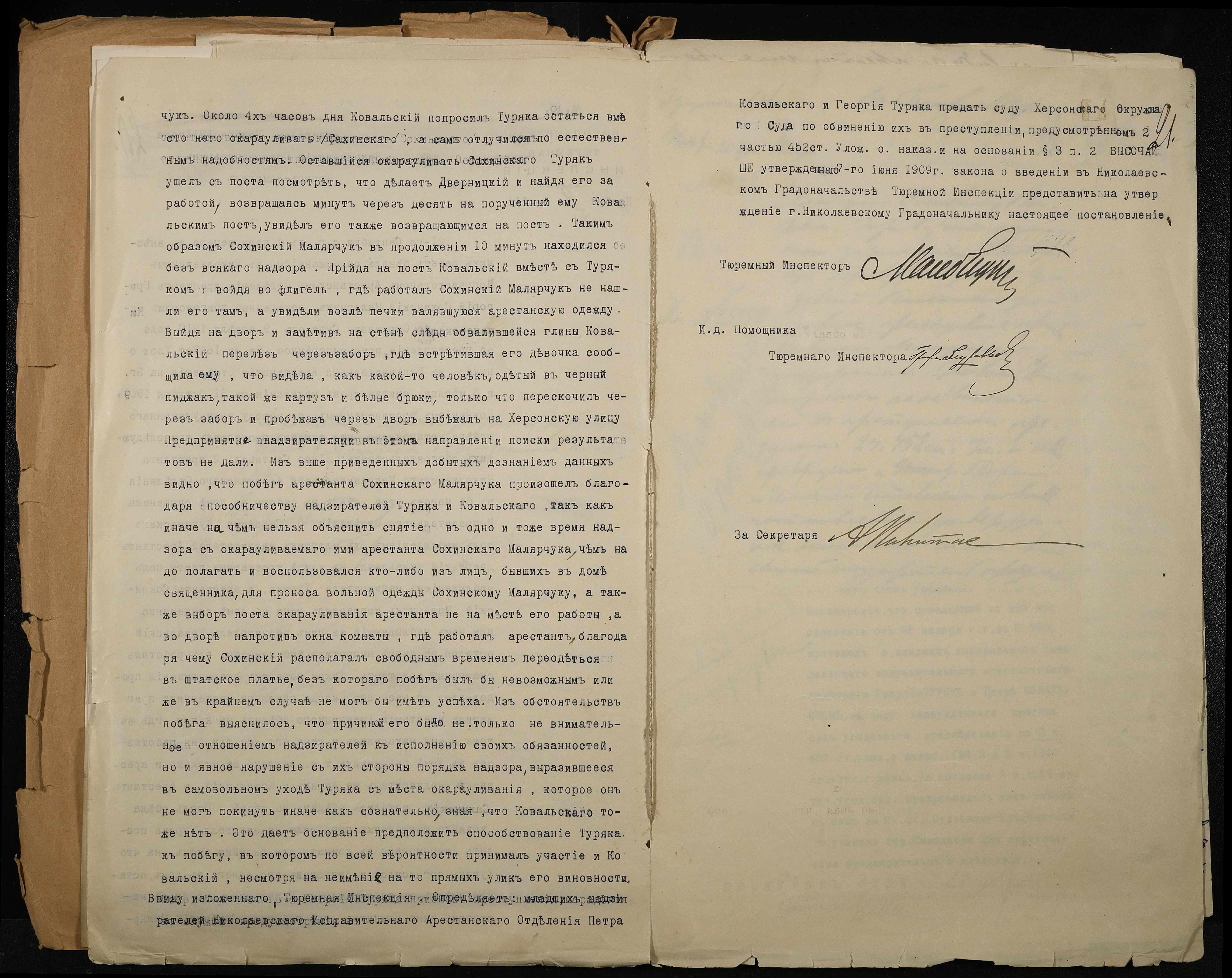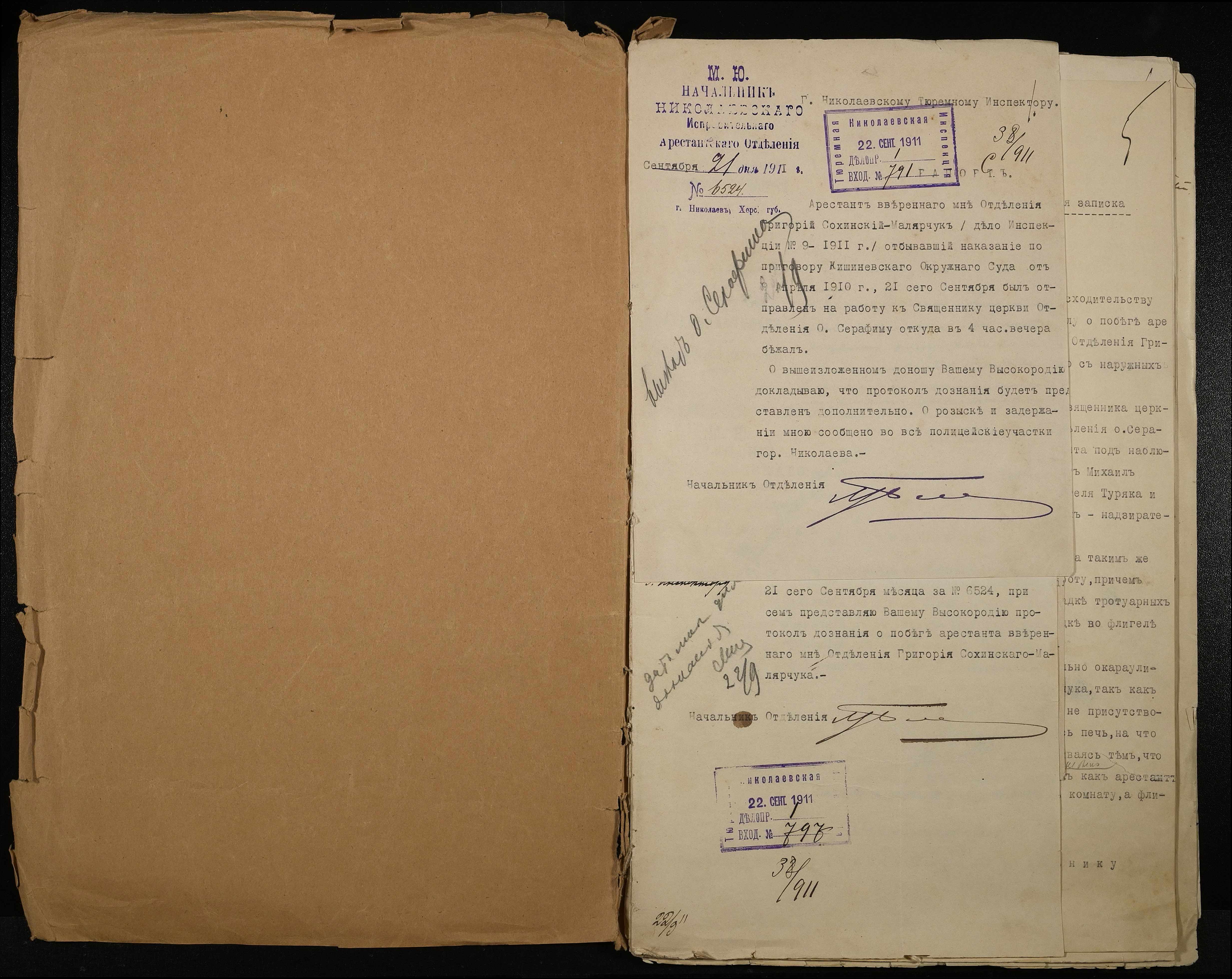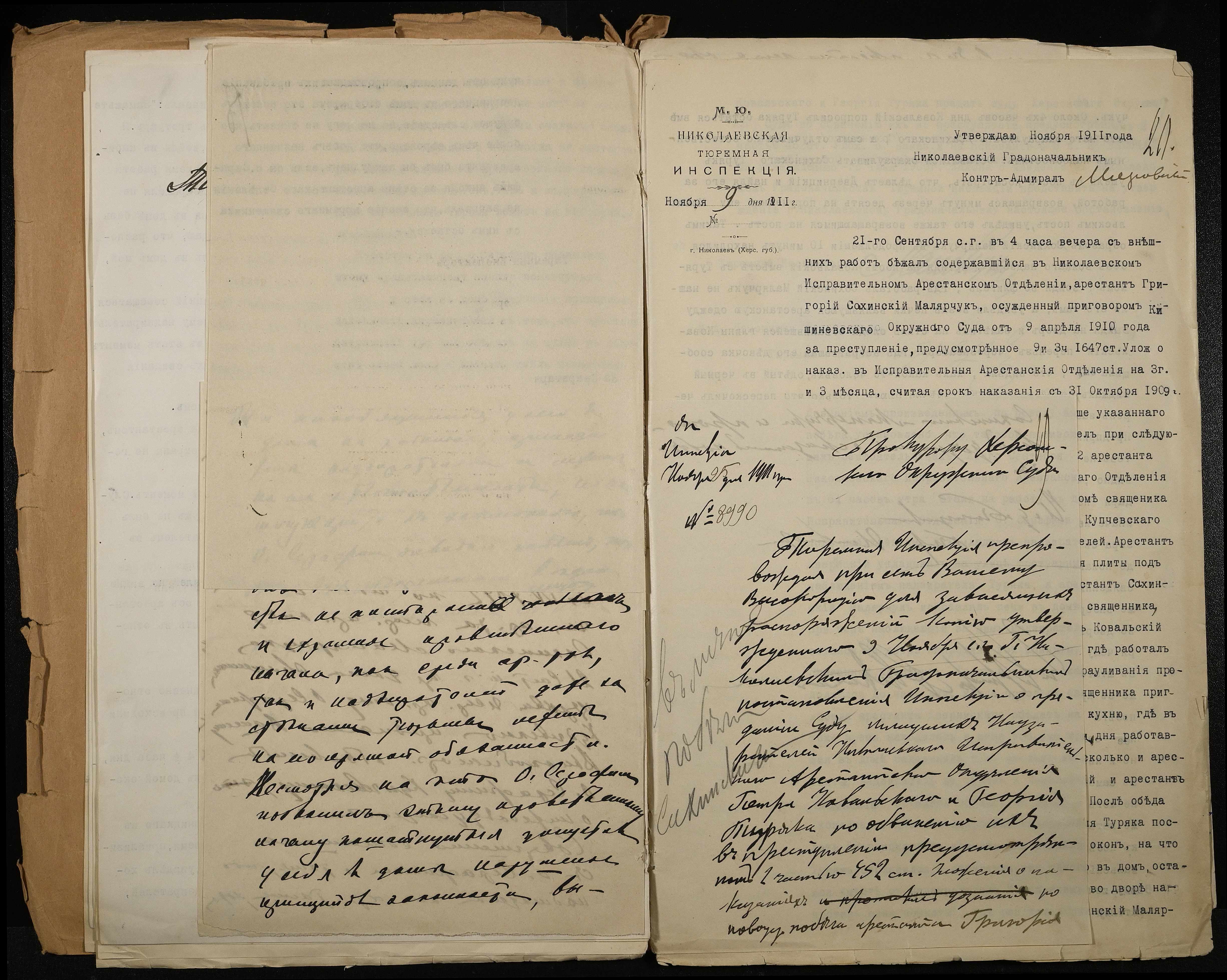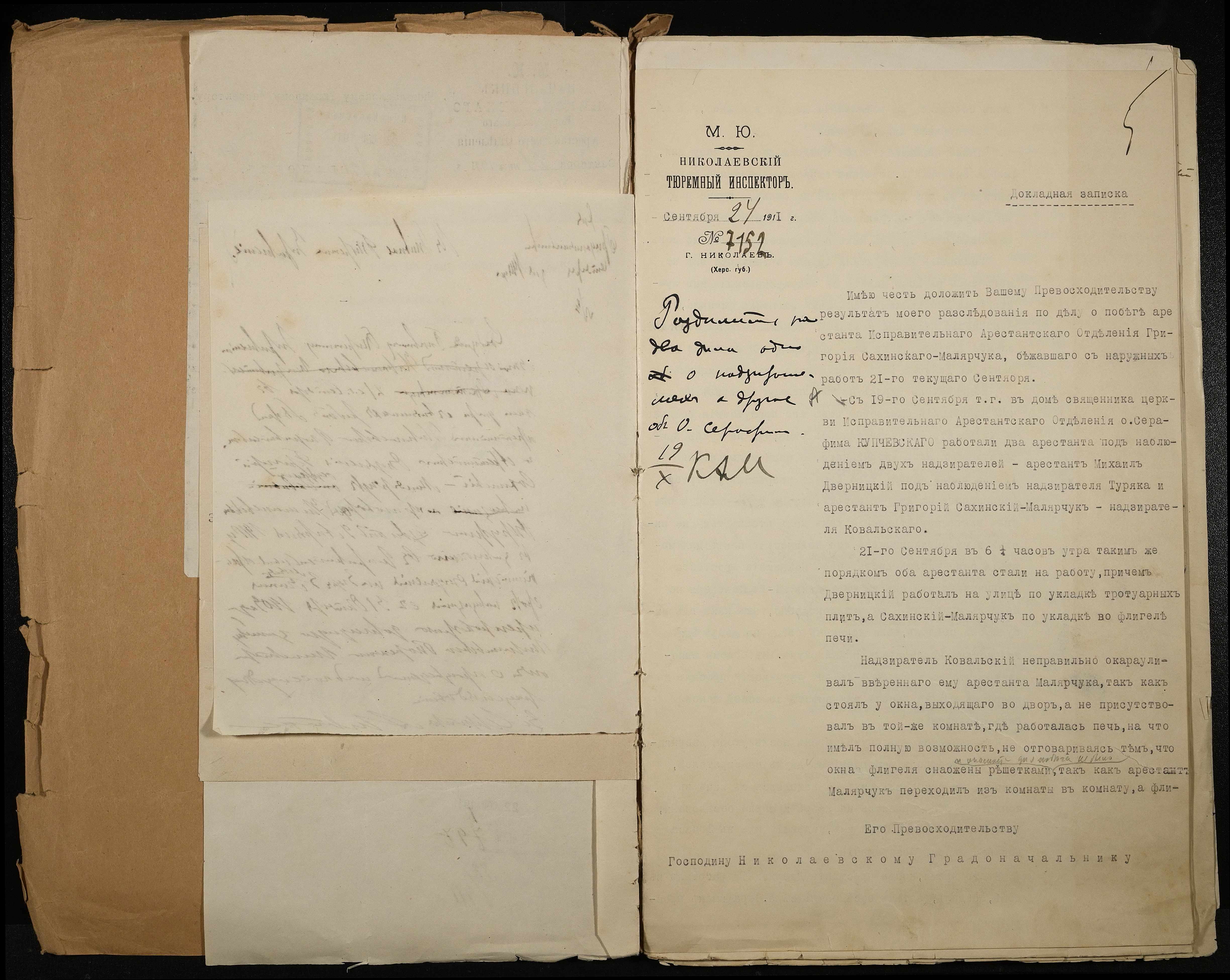 • • • • Справа № 58 Документи про утечу із Миколаївського виправного арештантського відділення арештанта Сохінського-Малярчука Григорія (рапорти, доповідні записки, опитування, листування)