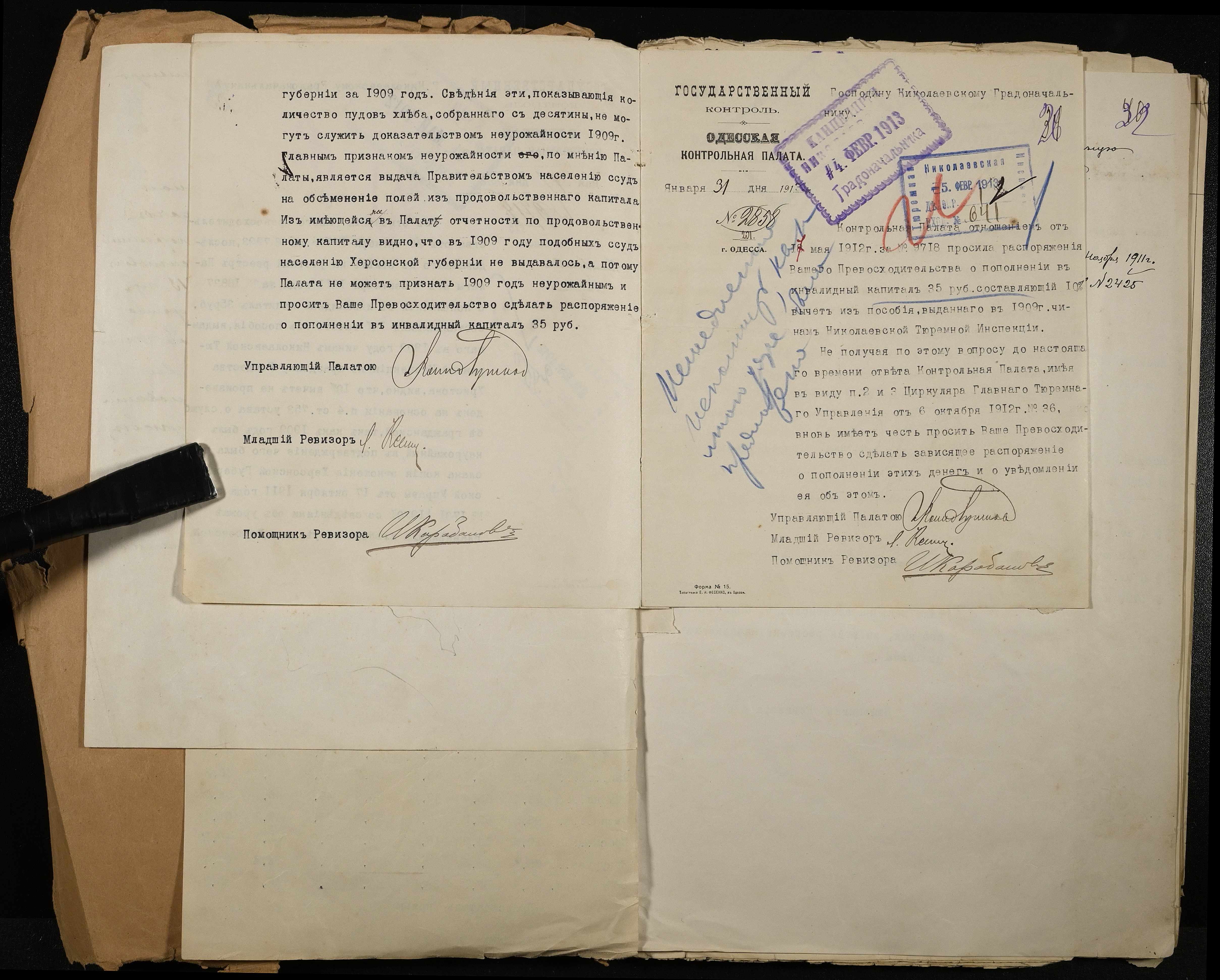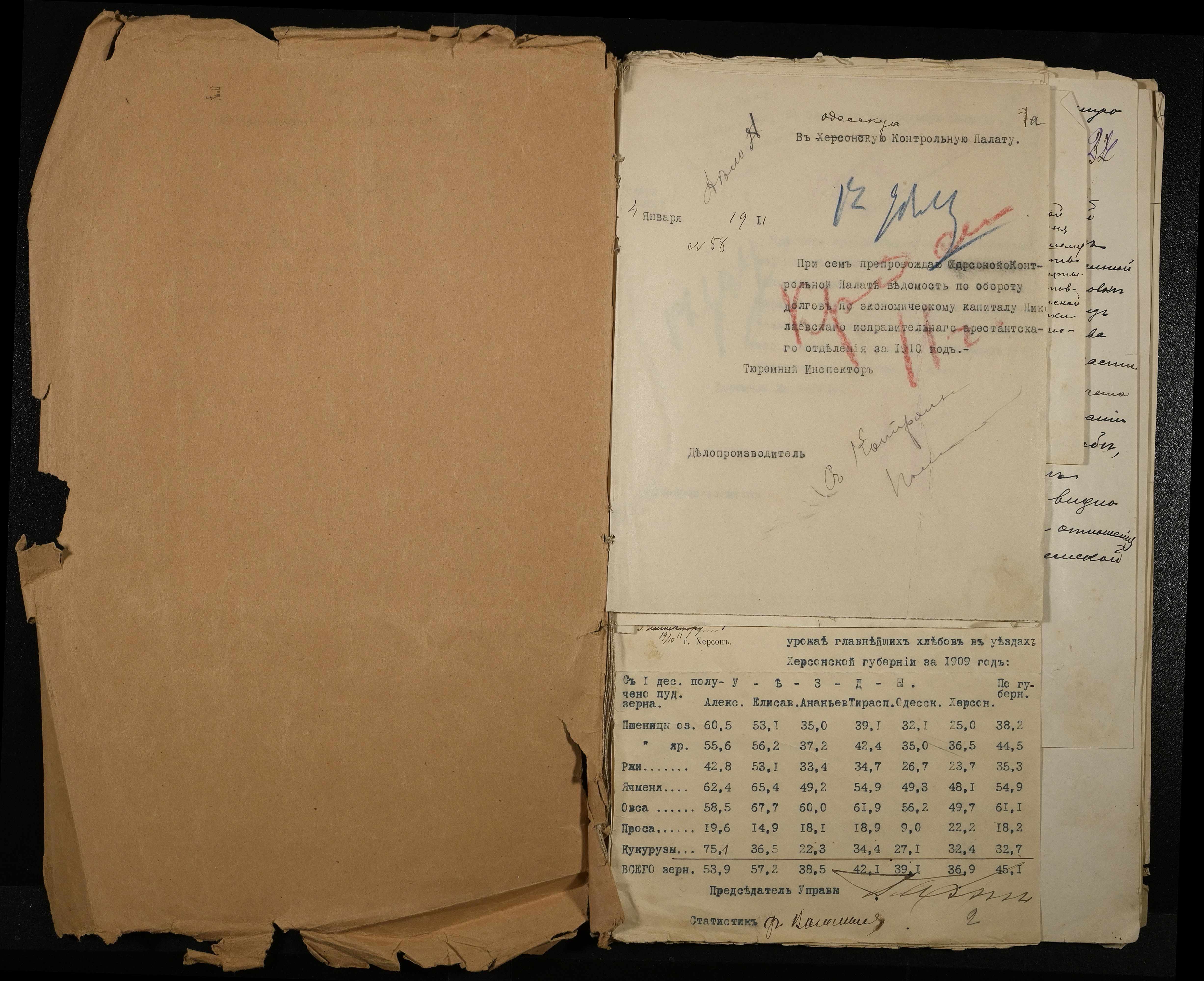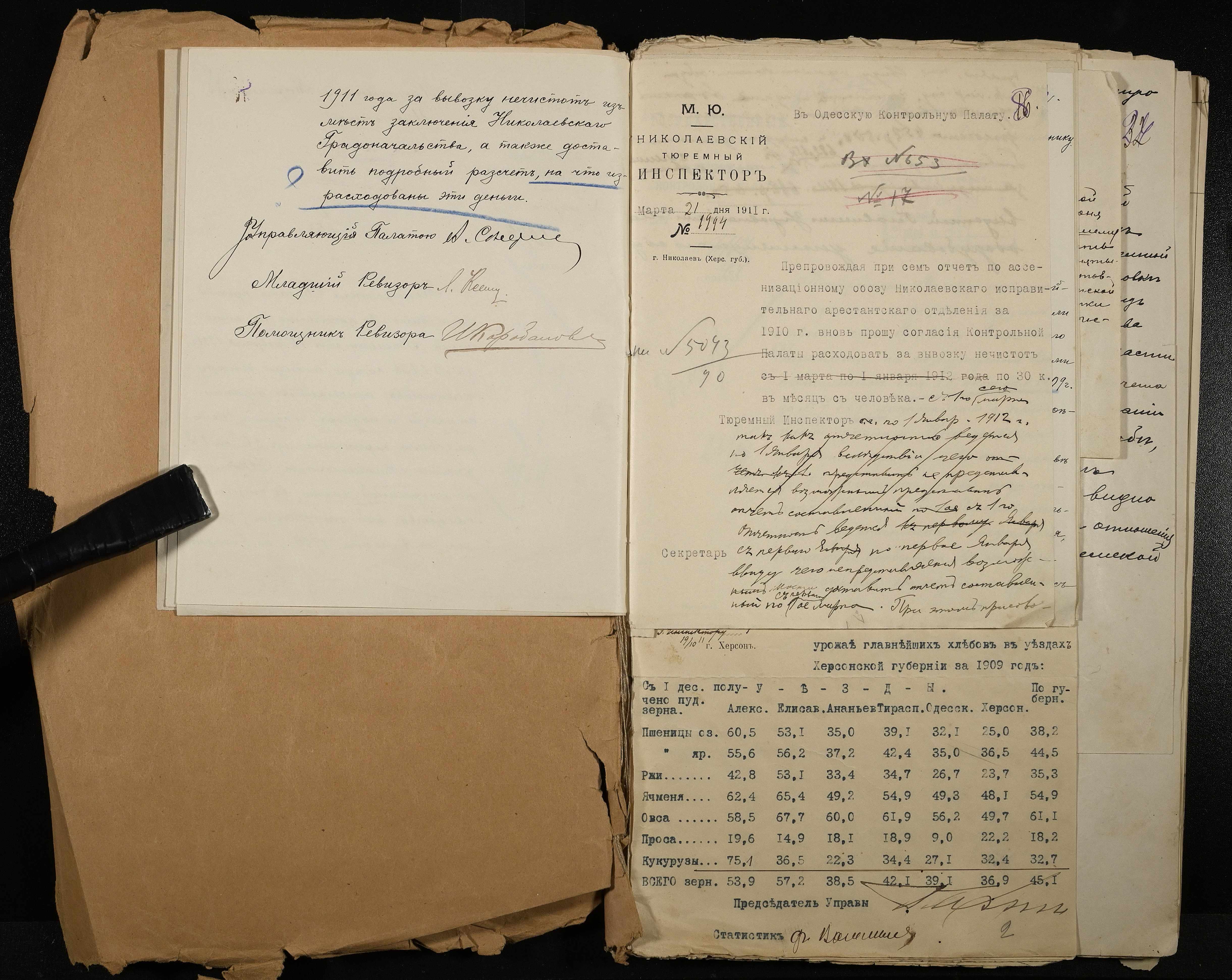 • • • • Справа № 61 Листування з Одеською контрольною палатою, Миколаївським градоначальником про кількість арештантів, адміністрації і наглядачів виправних закладів міста Миколаєва, відповідність їх штатному розпису і кошторису Міністерства юстиції, суми коштів, надісланих на його рахунки та докладний звіт про витрати цих коштів, надання відомостей щодо призначень, звільнень та змін в посадових окладах тюремних наглядачів, поповнення інвалідного капіталу для надання допомоги службовцям тюремної інспекції та ін.