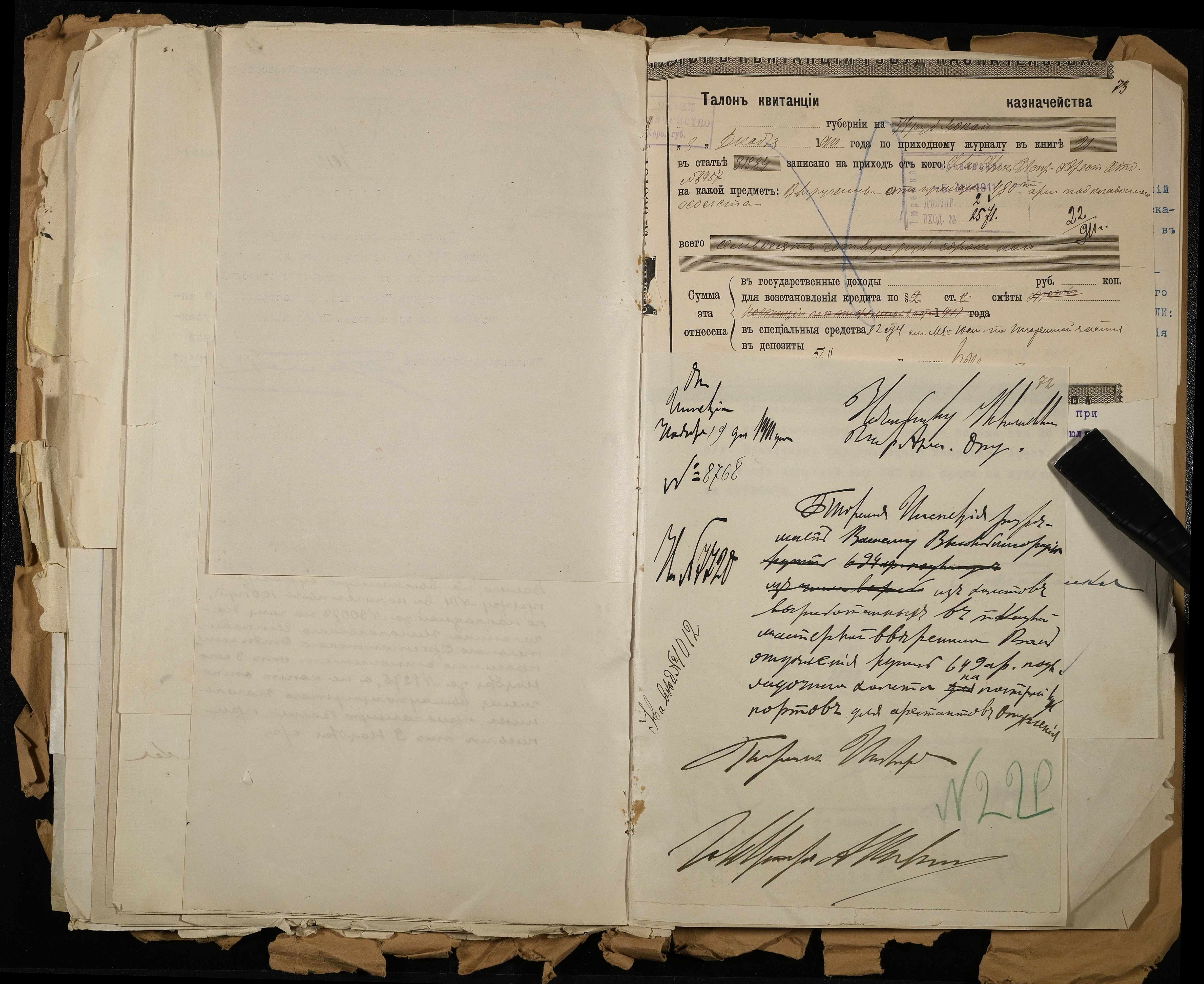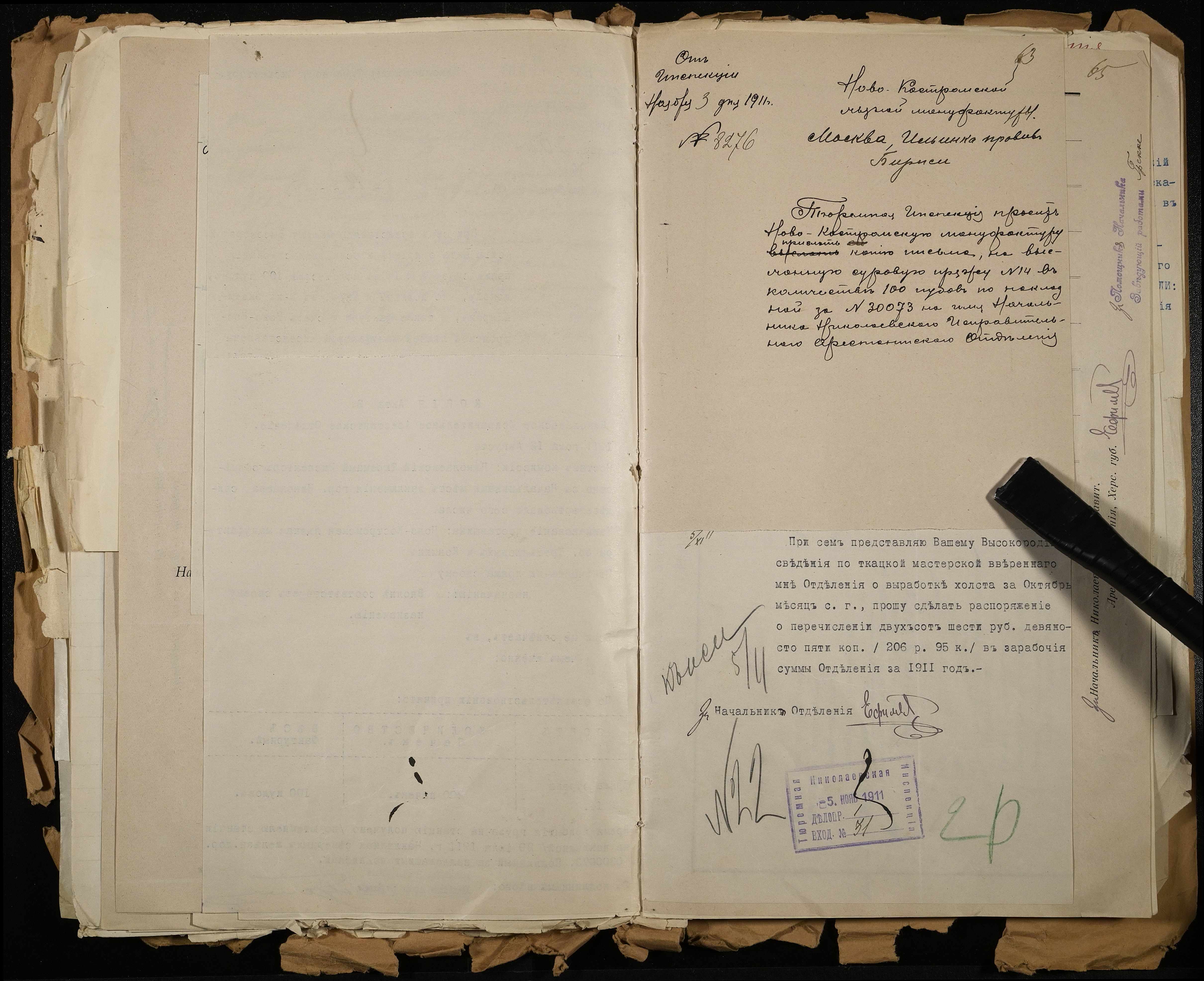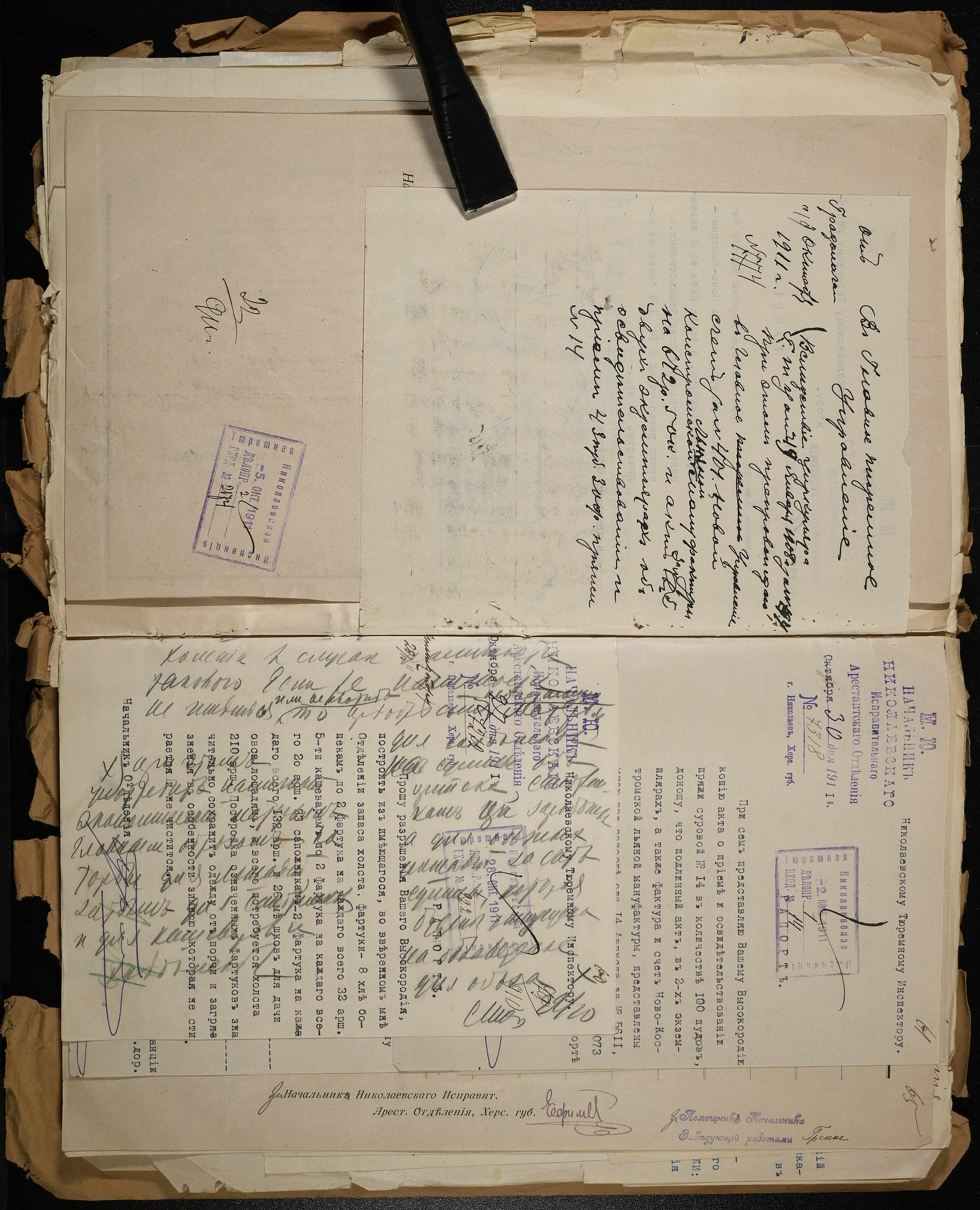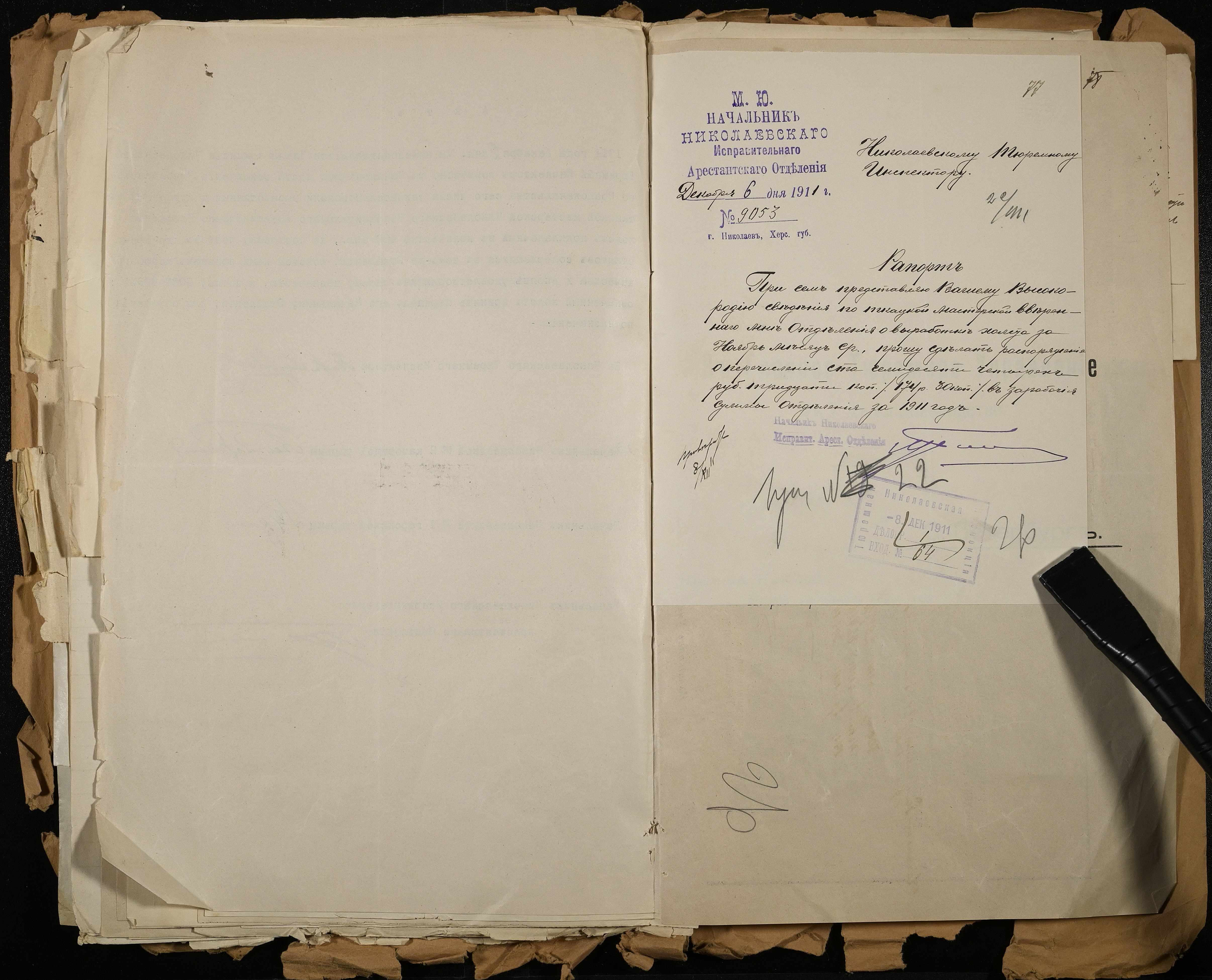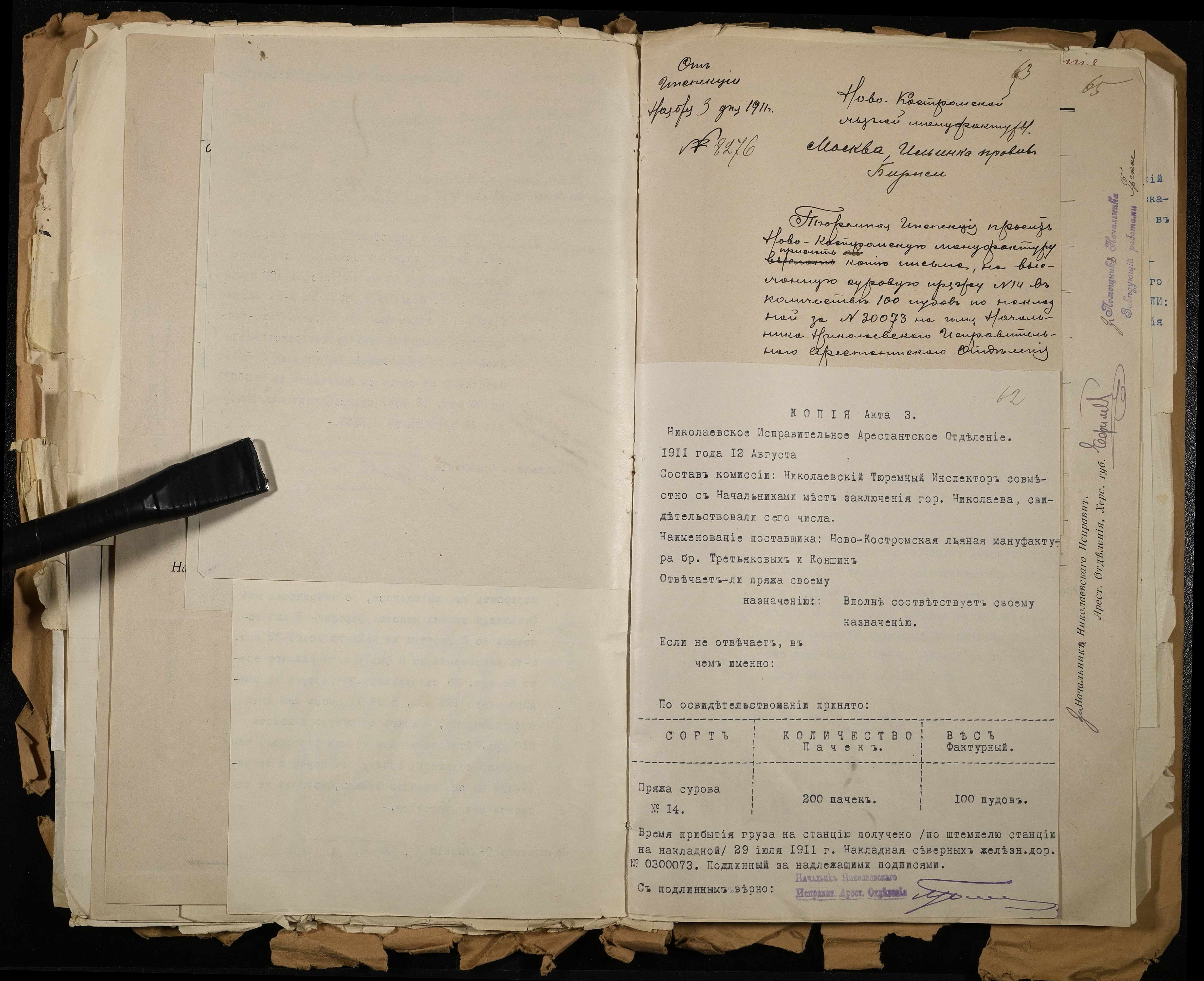 • • • • Справа № 62 Листування з Головним тюремним управлінням, Херсонською казенною палатою, начальником Миколаївского виправного арештантського відділення про порядок постачання пряжі для тюремних ткацьких майстерень та розрахунків за виконані роботи, надання відомостей щодо виробництва полотна та його якість, порядок надання звітності та ін.