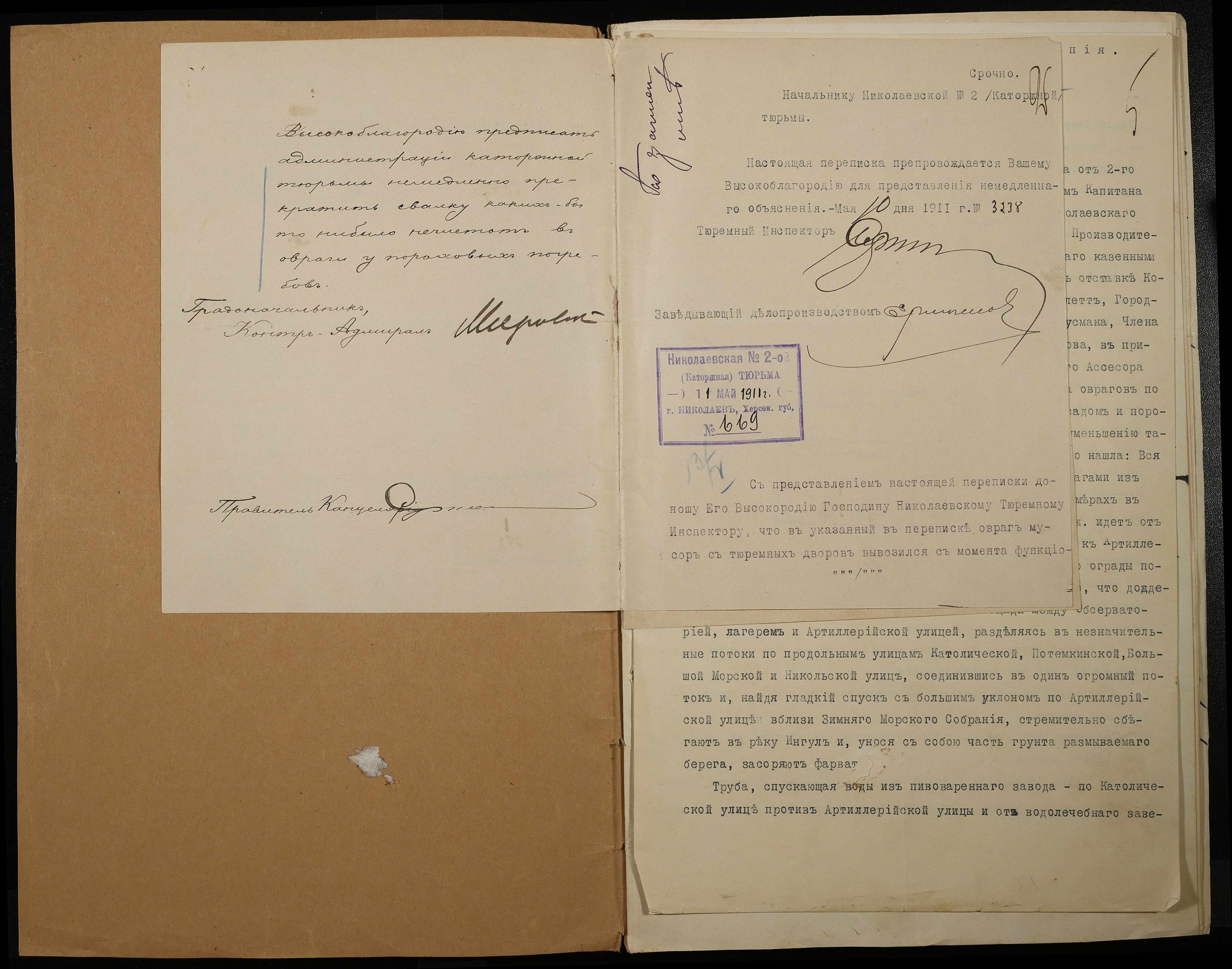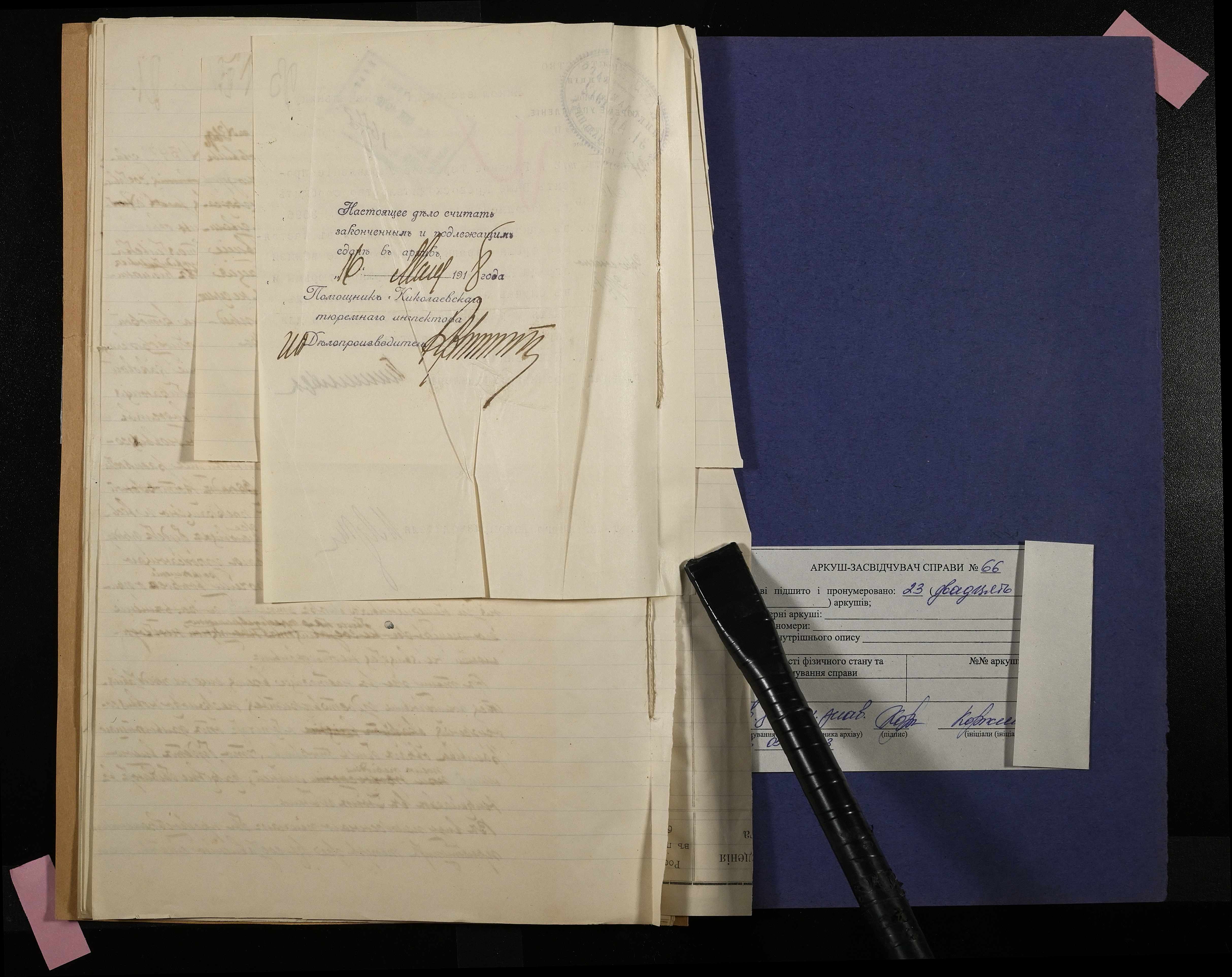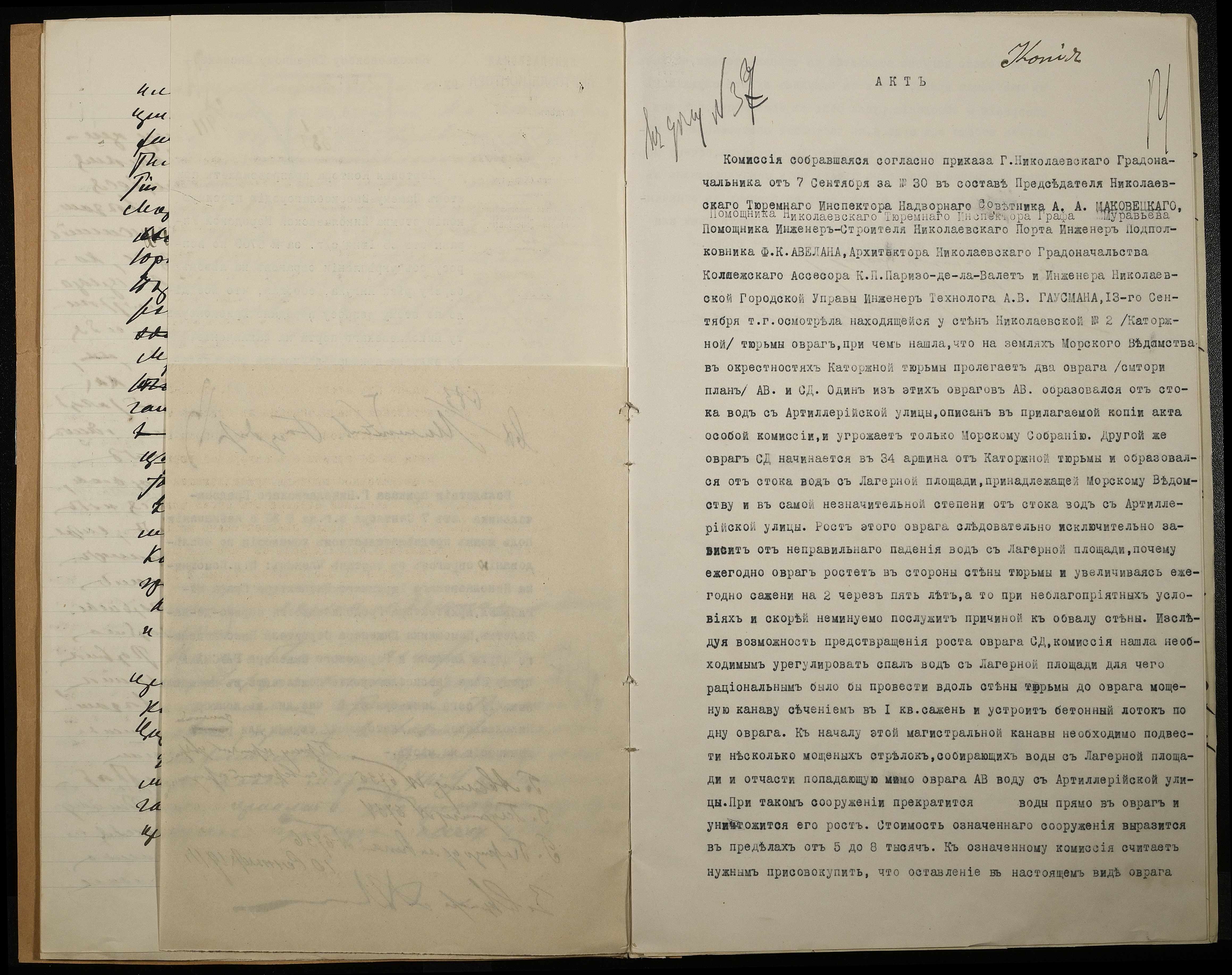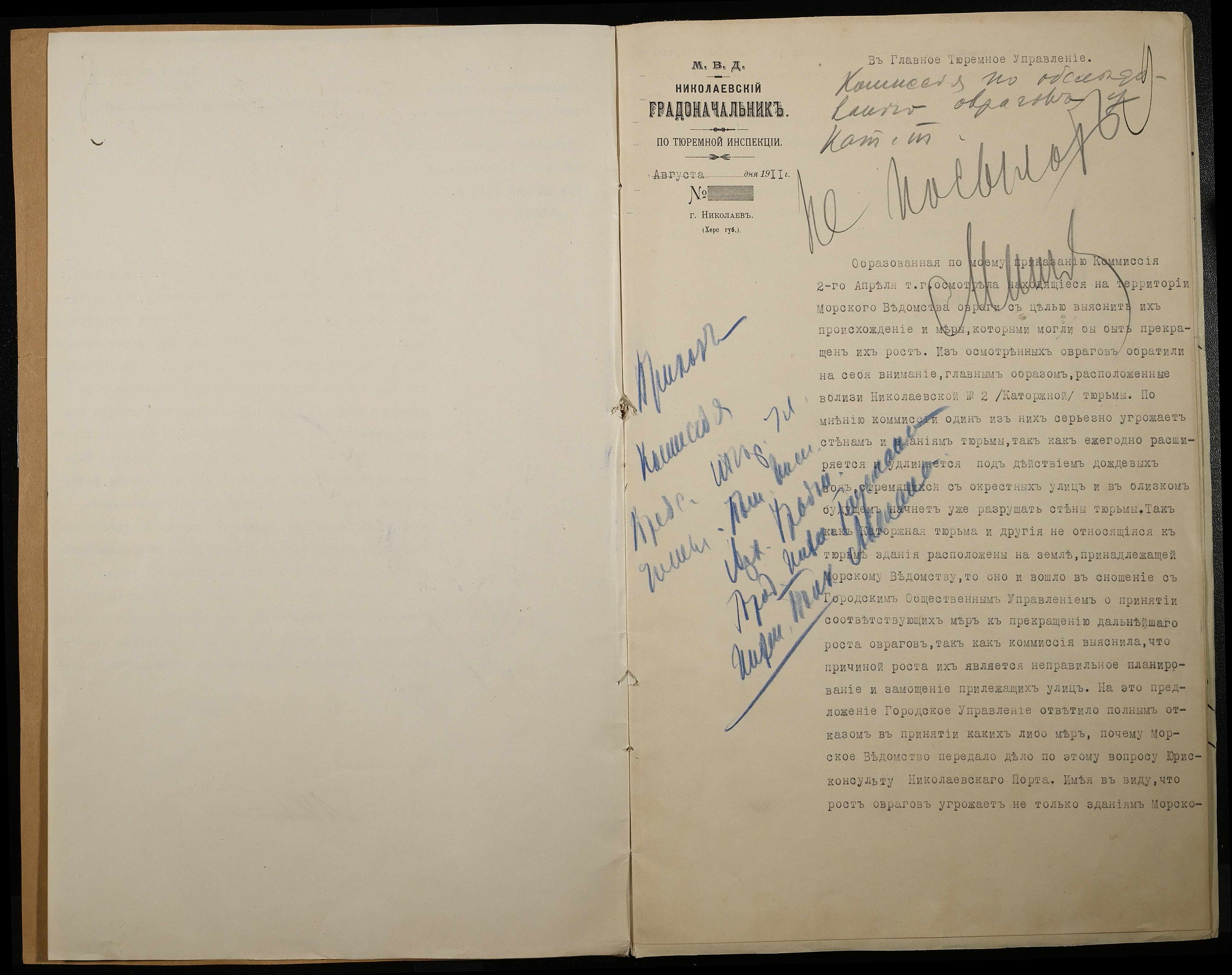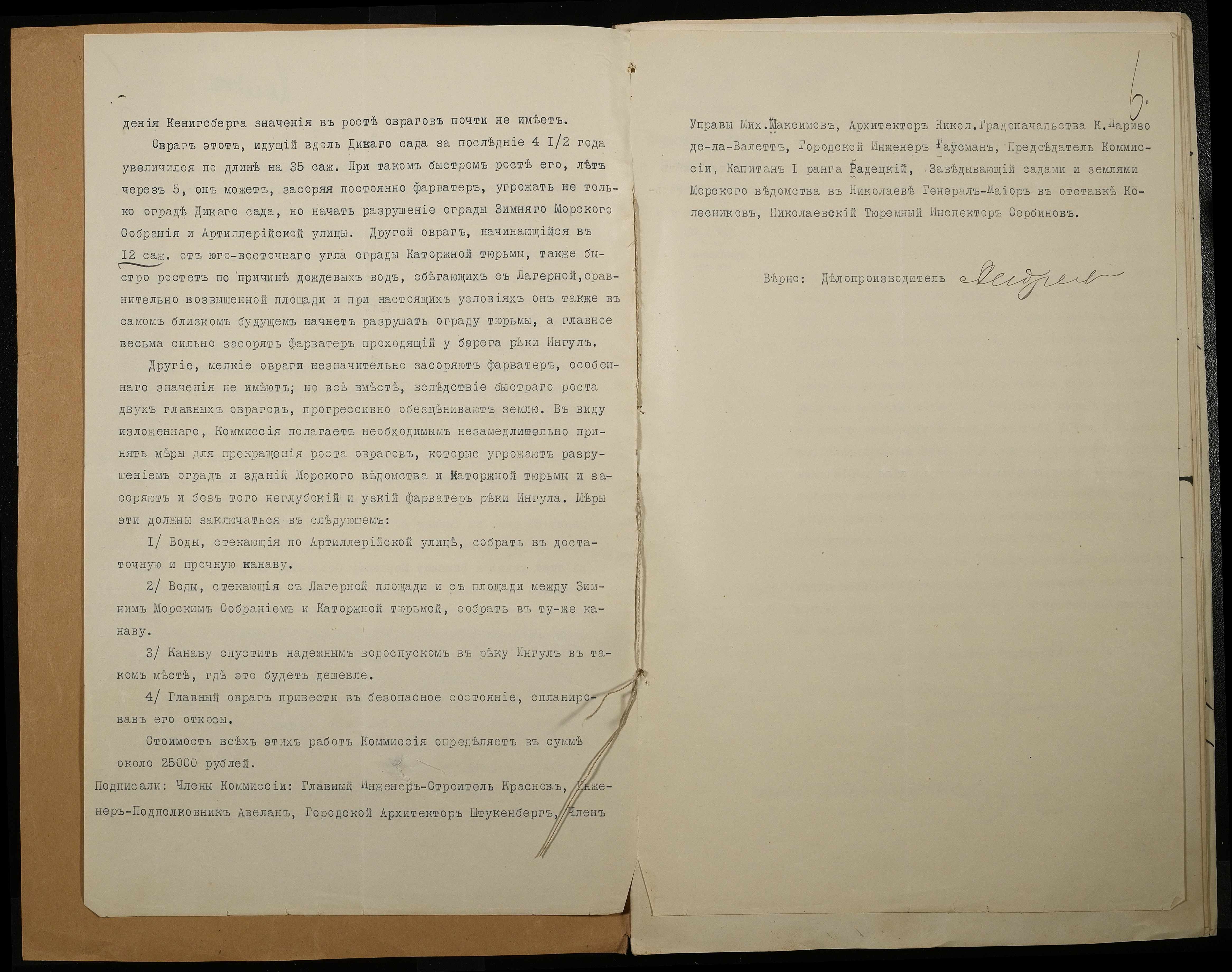 • • • • Справа № 66 Листування з Головним тюремним управлінням, Миколаївським градоначальником, міською управою, Миколаївською портовою конторою про загрозу руйнування огорожі і будівель Миколаївської 2-ої каторжної тюрми через збільшення яру поряд з нею та про заходи по укріпленню яру